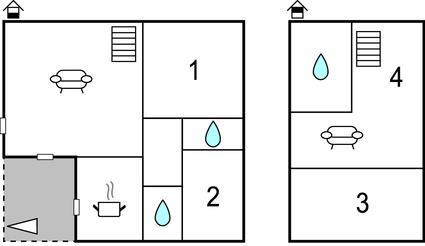 Badezimmer (nr. 1) - WC. Warmes und kaltes Wasser. Dusche