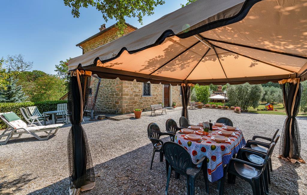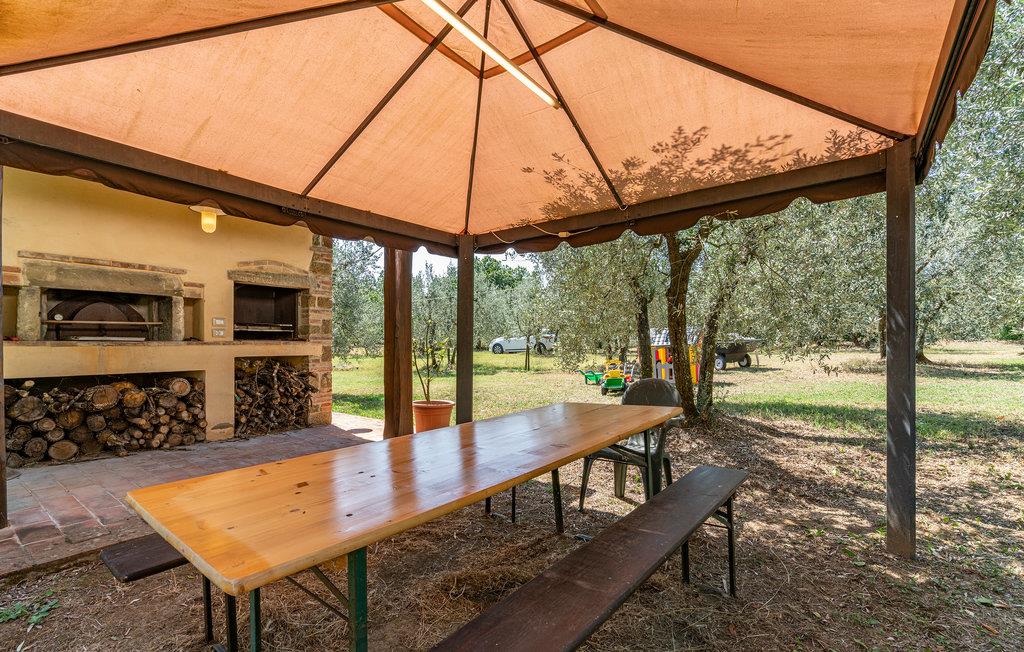 Im Val di Chiana liegt dieses herrliche Ferienhaus in unmittelbarer Nähe des Monte San Savino, in einer ruhigen Gegend, ideal für diejenigen, die einen erholsamen Urlaub verbringen möchten. Das Haus ist auf mehreren Ebenen angeordnet und durch Innentreppen verbunden. Es bietet große, gut eingerichtete Räume, die mit jeglichem Komfort ausgestattet sind. Das Grundstück rund um das Haus, das für Grillabende oder Aperitifs unter freiem Himmel ausgestattet ist, eignet sich perfekt für die Verkostung lokaler Spezialitäten und ermöglicht Ihren Kindern mit ihrem vierbeinigen Freund frei zu spielen und zu laufen. Nicht zu versäumen ist in nur 22 km Entfernung die charmante Stadt Arezzo, reich an Geschichte (Arezzo war eine der ersten etruskischen Städte), Architektur (es gibt viele Basiliken und Kirchen zu besuchen) und wertvolle Kunstwerke von Künstlern der Renaissance (einschließlich Cimabue und Piero della Francesca). Die Stadt ist auch für traditionelle Feste und historische Aufführungen bekannt, insbesondere für die Giostra del Saracino im Juni und September: Die Ritter der Stadtteile fordern sich gegenseitig heraus, indem sie mit dem Speer auf eine Holzstatue schlagen. Cortona, das wichtigste kulturelle und touristische Zentrum des Val di Chiana, liegt 30 km und der Trasimenische See nur 40 km entfernt. Verpassen Sie nicht einen Besuch mit der Fähre zu den Inseln Polvese und Maggiore. Die Gegend rund um den See ist auch voller Trekking- oder Radwege.