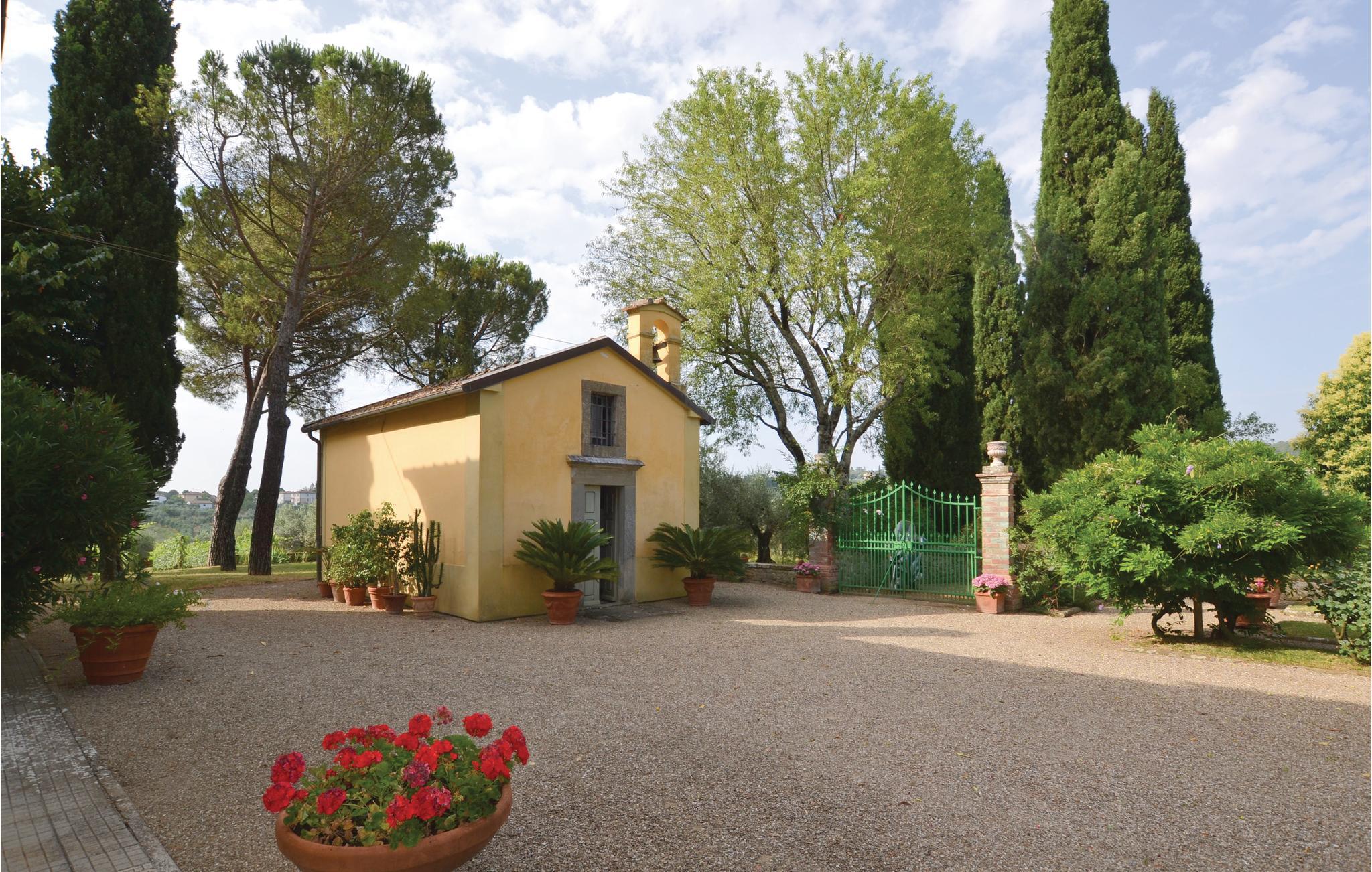 Etwas außerhalb von Monte San Savino (1,5 km) liegt dieses freundliche Ferienhaus in leichter Hügellage. Das Haus ist ein Nebengebäude einer historischen Villa, umgeben von einem parkähnlichen Grundstück mit Pool (gemeinsam mit ITA902). Man betritt den großen hellen Wohnraum über eine private Terrasse; im Wohnzimmer gibt es einen offenen Kamin und die angrenzende kleine Küche, eine Wendeltreppe führt ins 1. Stockwerk (das außerdem über eine bequeme Außentreppe zu erreichen ist). Die funktionale Küchenecke hat ebenfalls einen Ausgang zum Garten. Im 1. Stock befinden sich die Schlafzimmer mit Bad. Kinderbett auf Anfrage. Verschiedene Gartensitzplätze sind auf dem Grundstück verteilt, so können Sie den Espresso unter einer rosenbedeckten Pergola und ein Gläschen Wein im Schatten hoher Bäume genießen. Auch zu Fuß erreichen Sie bequem das nette Städtchen Monte San Savino, wo Sie verschiedene Bars, gute Restaurants und Eisdielen finden – für leidenschaftliche Städtebummler bieten sich zudem Arezzo (20 km, auch mit der Bahn), Cortona 30 km, Siena 50 km und Florenz 80 km. – Monte San Savino hat im Sommer ein reiches Angebot an kulturellen Veranstaltungen, vor allem Konzerte im Rosengarten; Mittwochs gibt es buntes Leben auf dem Markt. Tischfußbal im Gemeinschaftsbereich vorhanden. Der Eigentümer stellt Olivenöl und Wein von ausgezeichneter Qualität nach nichtindustriellen Methoden und unter Beachtung traditioneller Techniken und Methoden her. Der Wein wird aus Trauben von lokalen Sorten wie Sangiovese hergestellt und das erste Pressöl wird von lokalen Sorten (Moraiolo und Morelli) gegeben. Die Gäste können die Produkte probieren und den Weinkeller besuchen und in den letzten September-Tagen an der Ernte teilnehmen.