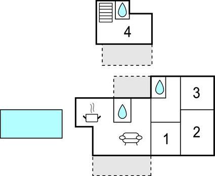 Schlafzimmer (nr. 4) - 1 Schlafmöglichkeit. (Einzelbett(en)). 2 Schlafmöglichkeiten. (Doppelbett(en)).