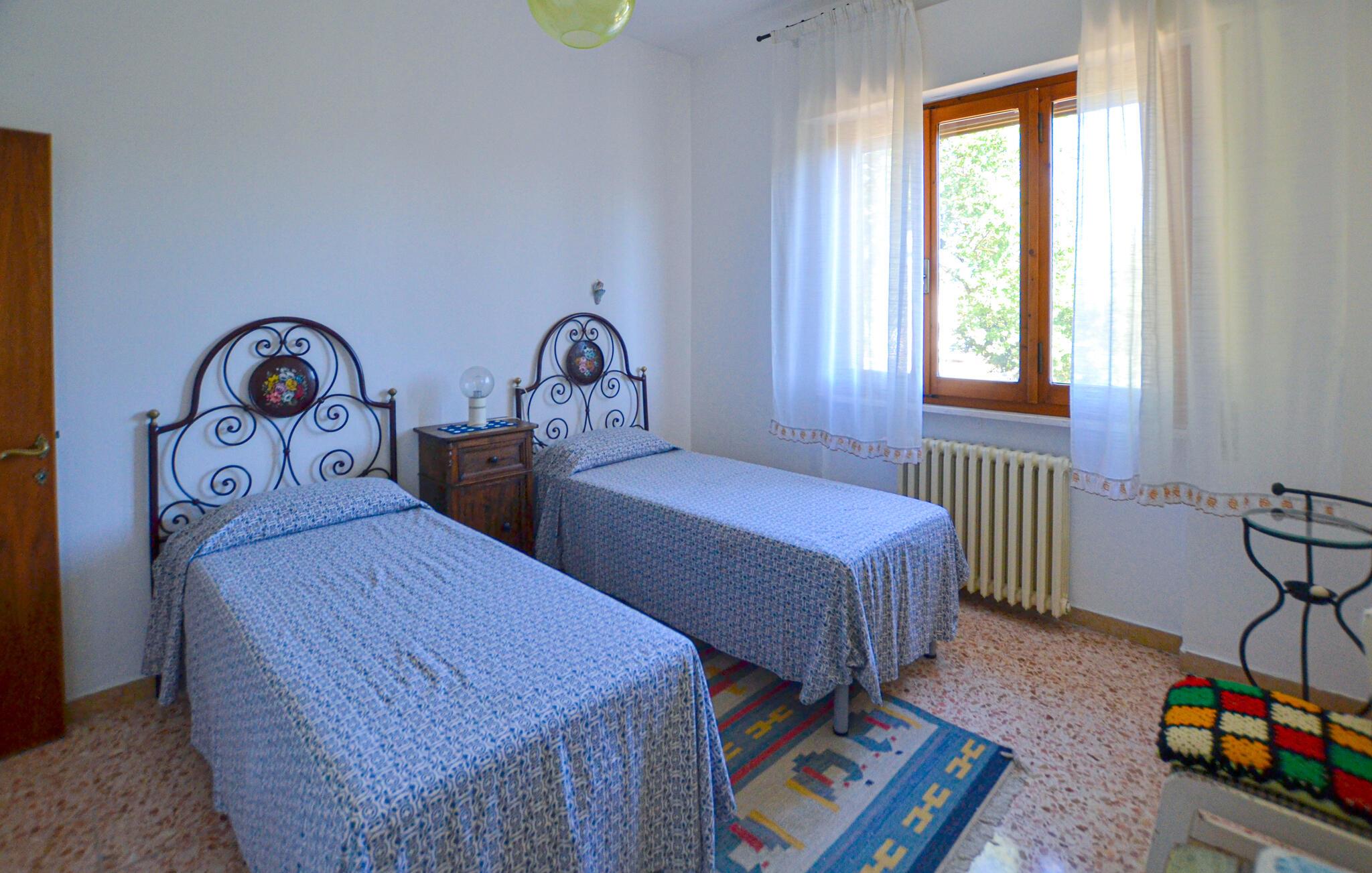 Eingebettet in einen großen Garten begrüßt Sie dieses großzügige Ferienhaus, in dem Sie gesellige Tage mit Freunden oder der Familie erleben können. Zaubern Sie leckere Pastagerichte und planen Sie Ihre Unternehmungen bei fröhlichen Mahlzeiten. Veranstalten Sie gemütliche Spieleabende im behaglichen Wohnzimmer.