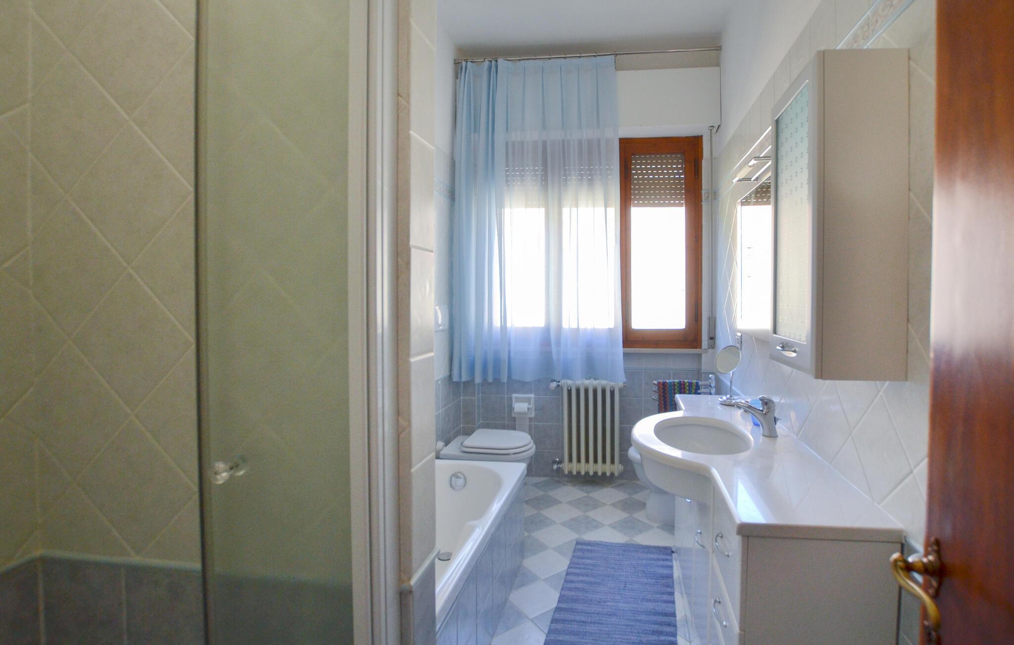 - WC mit warmem und kaltem Wasser, Dusche und Badewanne