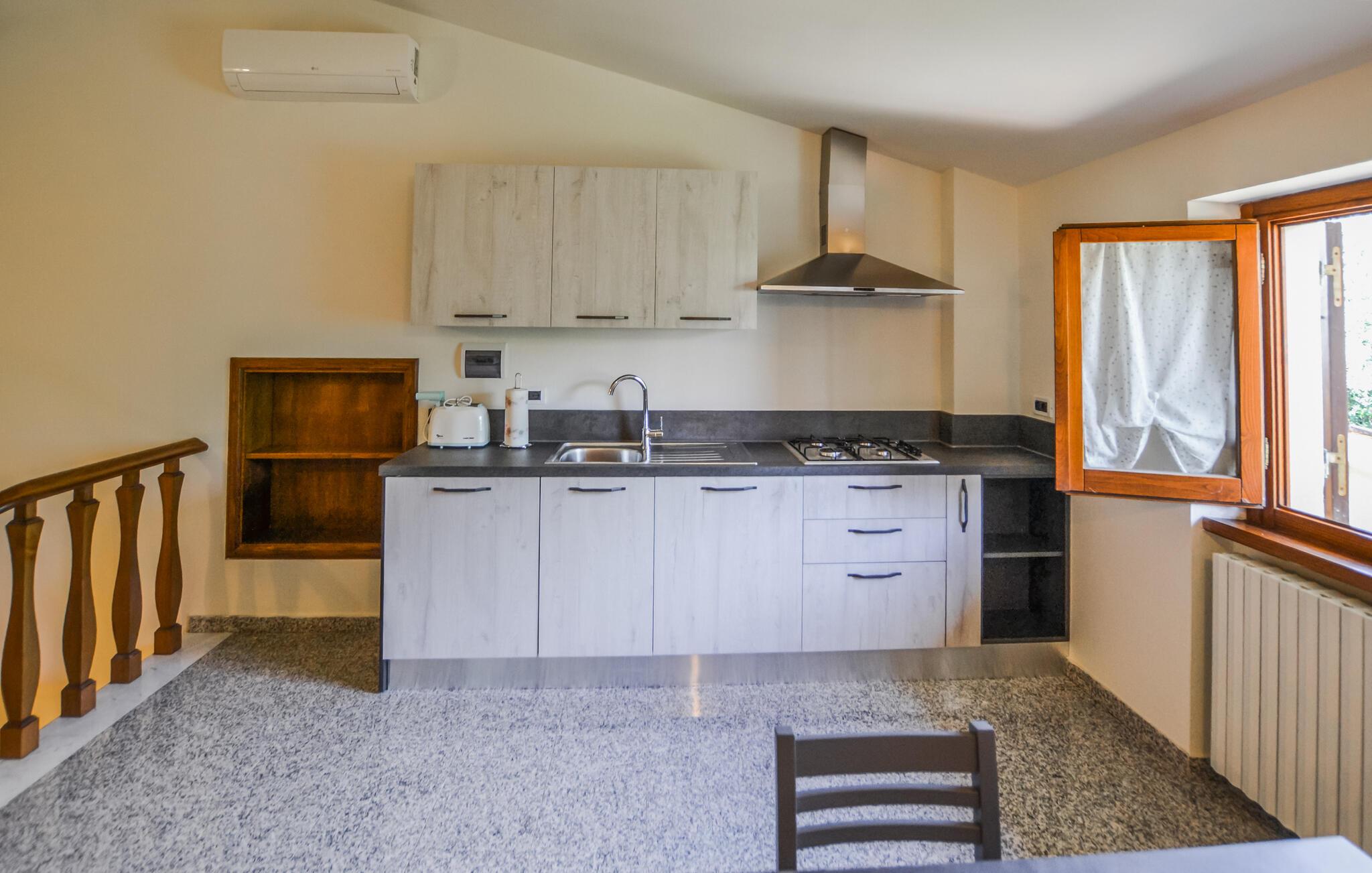 Diese geräumige Ferienwohnung begrüßt Sie mit einer gepflegten, authentischen Atmosphäre und bietet Ihnen eine ideale Basis, um mit einer größeren Familie in die Natur und Kultur der Toskana einzutauchen. Zaubern Sie leckere Pastagerichte, planen Sie Ihre Unternehmungen bei harmonischen Mahlzeiten am einladenden Esstisch und lassen Sie einen erlebnisreichen Tag mit einem Spieleabend oder ruhigen Lesestunden ausklingen.