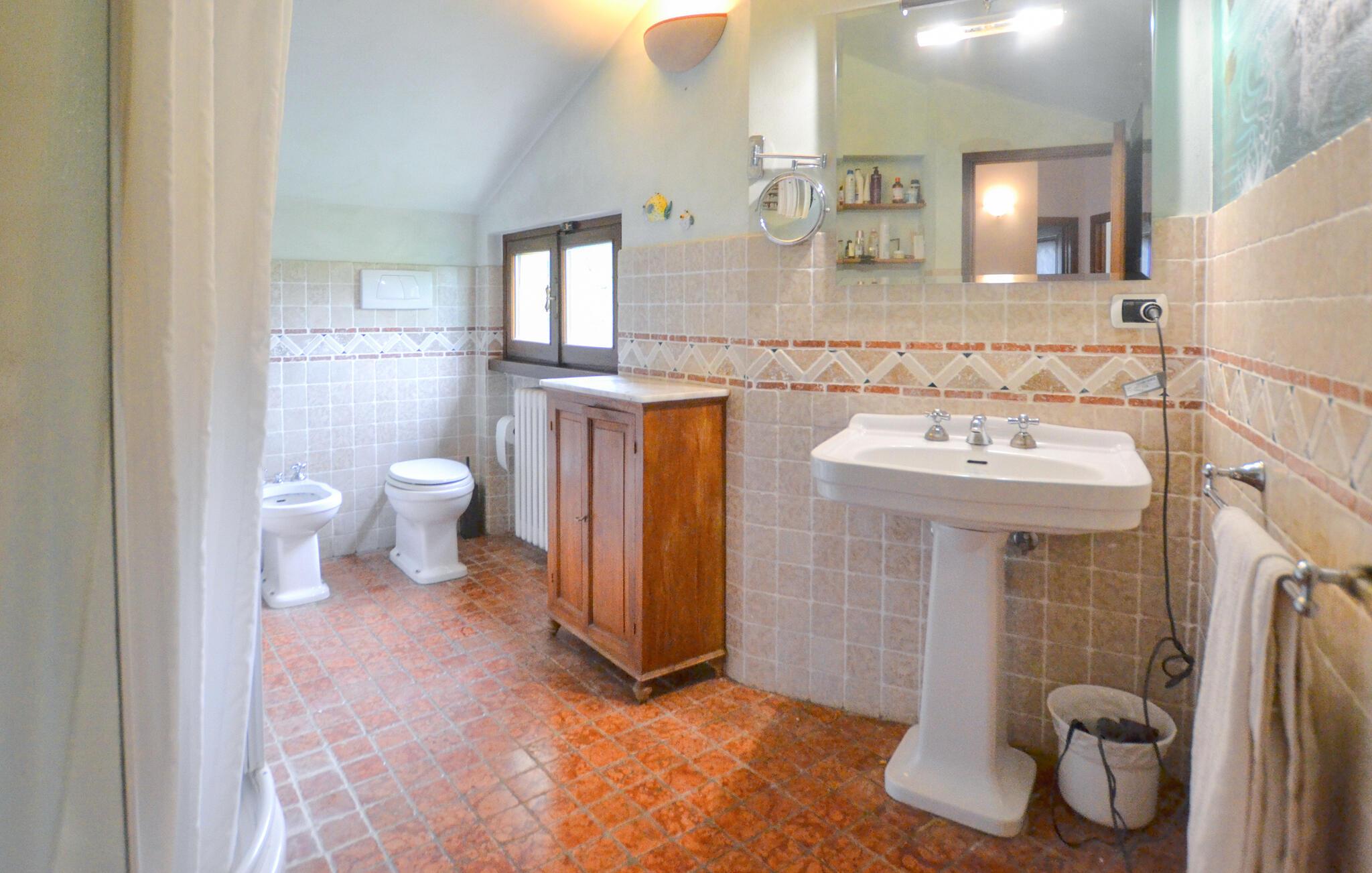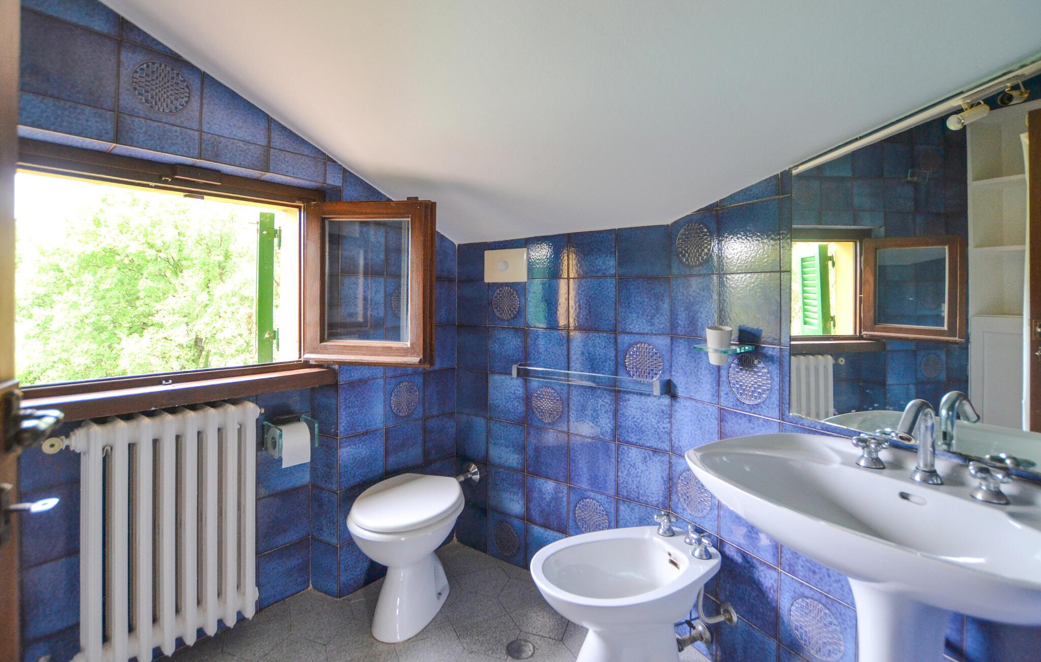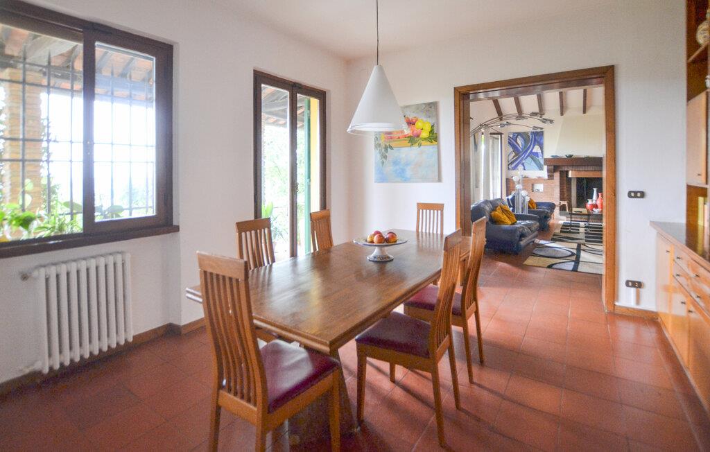 Erleben Sie diese Unterkunft, die Ihnen großzügigen Raum, stilvolle Atmosphäre und Erholung inmitten der Natur bietet. Treten Sie ein und lassen Sie sich vom geschmackvoll eingerichteten Wohnbereich empfangen. Setzen Sie sich an den offenen Kamin und genießen Sie die gemütliche Stimmung, die Wärme und Geborgenheit ausstrahlt. Nutzen Sie die großzügige Küche, die mit allem ausgestattet ist, was Sie für die Selbstversorgung benötigen. Erleben Sie ein Haus, das toskanische Tradition mit moderner Ausstattung harmonisch verbindet.