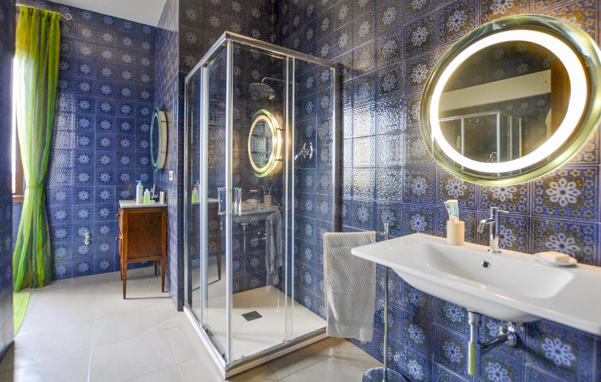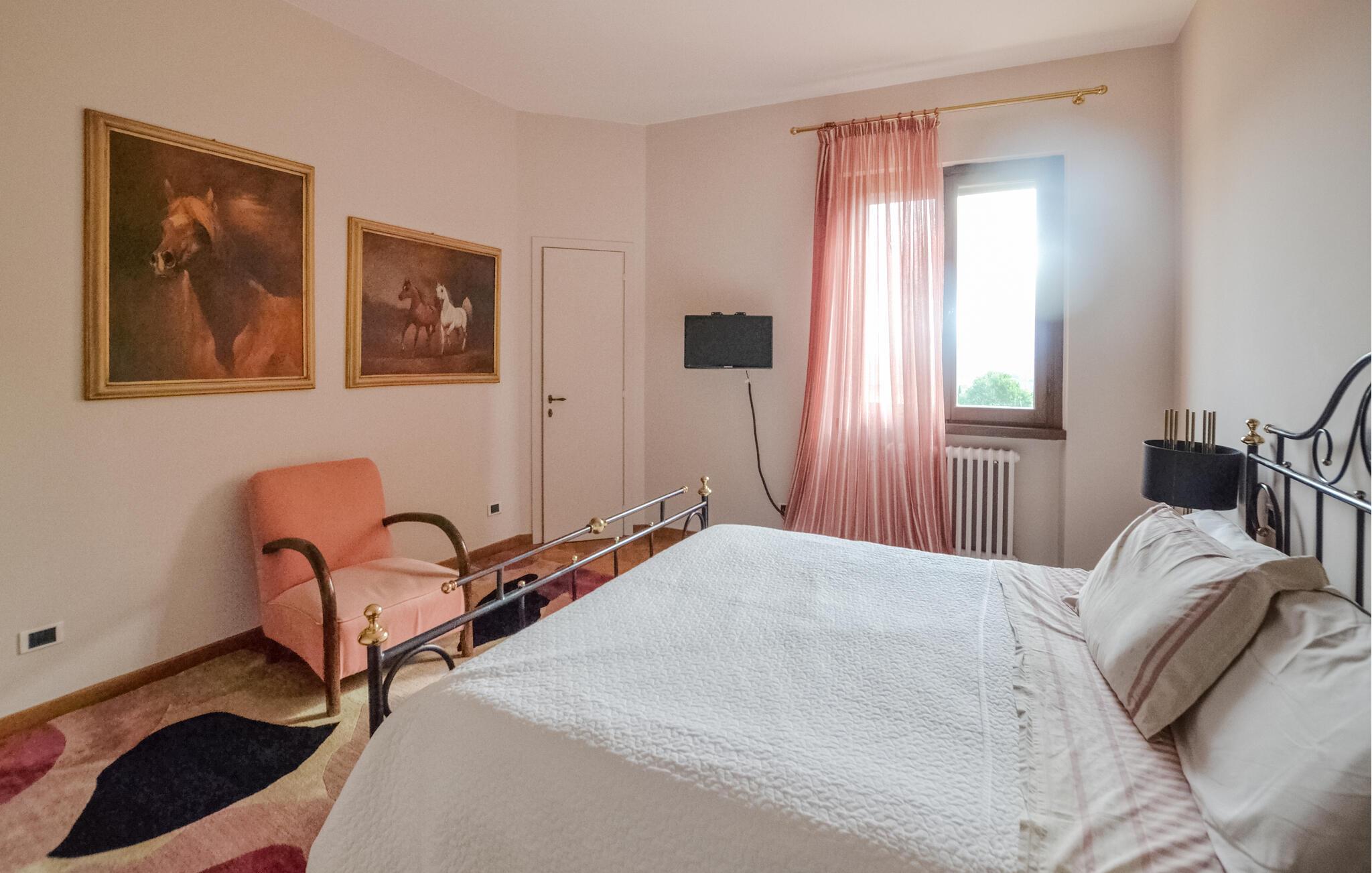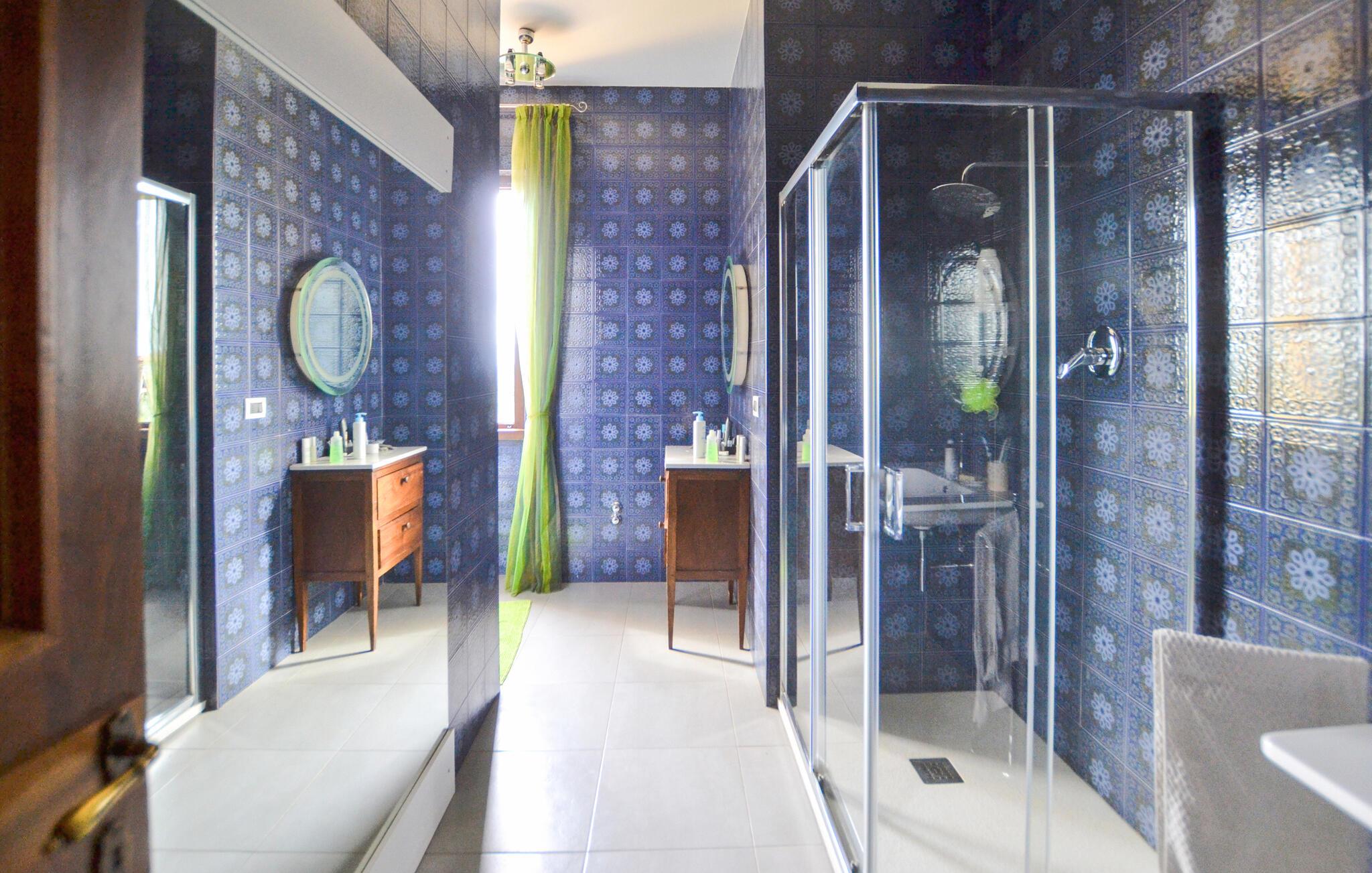 Erleben Sie diese Unterkunft, die Ihnen großzügigen Raum, stilvolle Atmosphäre und Erholung inmitten der Natur bietet. Treten Sie ein und lassen Sie sich vom geschmackvoll eingerichteten Wohnbereich empfangen. Setzen Sie sich an den offenen Kamin und genießen Sie die gemütliche Stimmung, die Wärme und Geborgenheit ausstrahlt. Nutzen Sie die großzügige Küche, die mit allem ausgestattet ist, was Sie für die Selbstversorgung benötigen. Erleben Sie ein Haus, das toskanische Tradition mit moderner Ausstattung harmonisch verbindet.