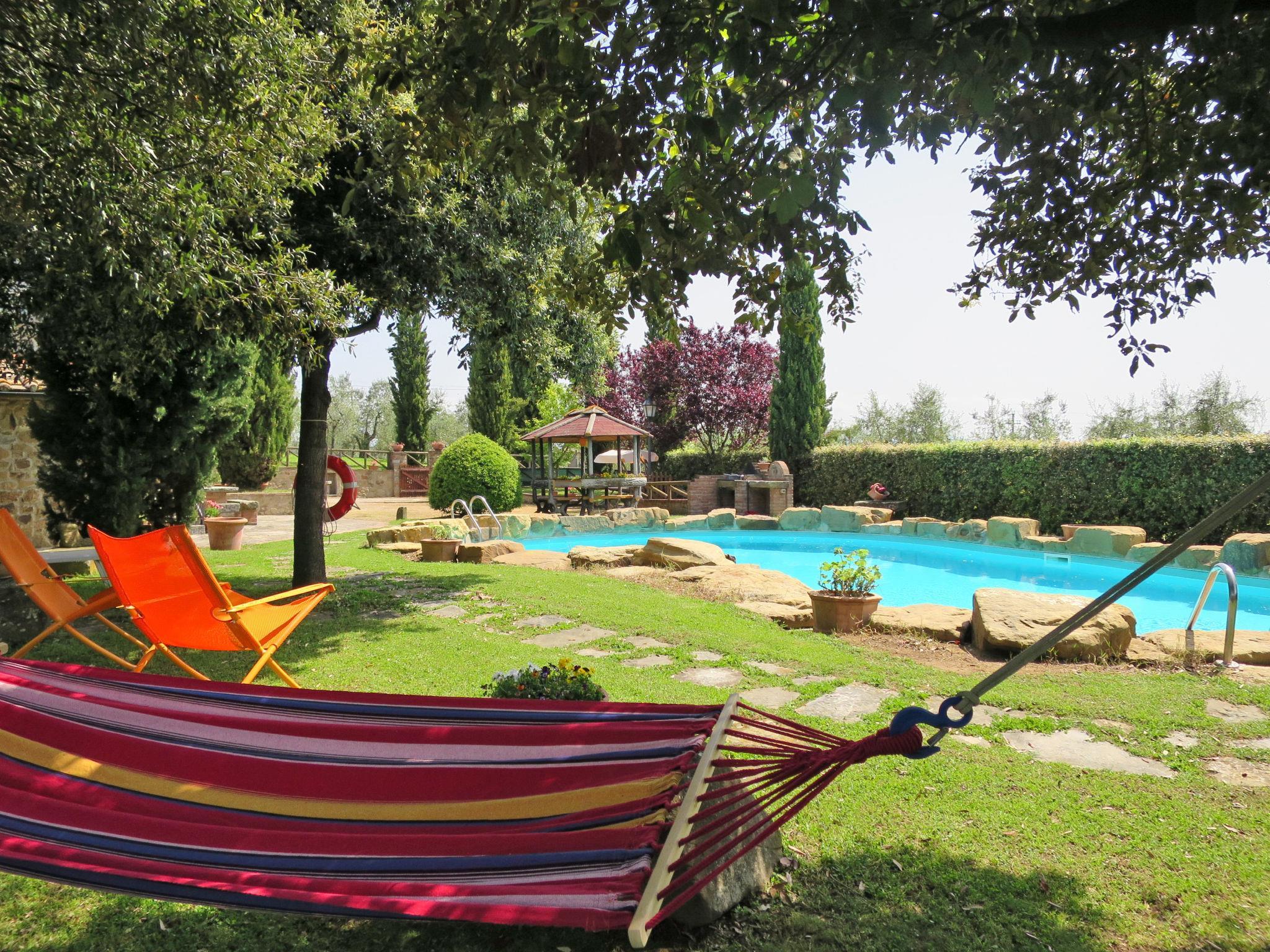 Rustikaler Landsitz "Casa Clotilde", auf 2 Stockwerken, renoviert. 4 km vom Zentrum von Monte San Savino, 5 km vom Zentrum von Civitella Val di Chiana, ruhige, sonnige Lage, 500 m vom See, im Grünen. Zur Mitbenutzung: Naturteich. Zur Alleinbenutzung: Grundstück 350 m2 (eingezäunt), Garten Rasen und Bäumen, Schwimmbad (13 x 7 m, 120 - 180 cm tief, saisonale Verfügbarkeit: 09.Apr. - 30.Sep.). Aussendusche, Volleyball, Laube, Gartenmöbel, Grill. Im Hause: Internetzugang, Zentralheizung. Frühstück und Halbpension möglich auf Anfrage (extra). Einkaufsservice vor Anreise möglich. Parkplatz (für 2 Autos, überdacht) beim Haus. Einkaufsgeschäft 1 km, Restaurant 1 km, Bar 1 km, Bushaltestelle 800 m, Bahnstation "Albergo" 1 km. Reitstall 700 m. Nahe gelegene Sehenswürdigkeiten: Arezzo 15 km, Montepulciano 40 km, Equestrian Center Arezzo 10 km. Bekannte Seen in der Umgebung sind gut erreichbar: Trasimeno 50 km. Bitte beachten: Angeln (mit Bewilligung) (extra). Ab Hof Verkauf von bäuerlichen Produkten.