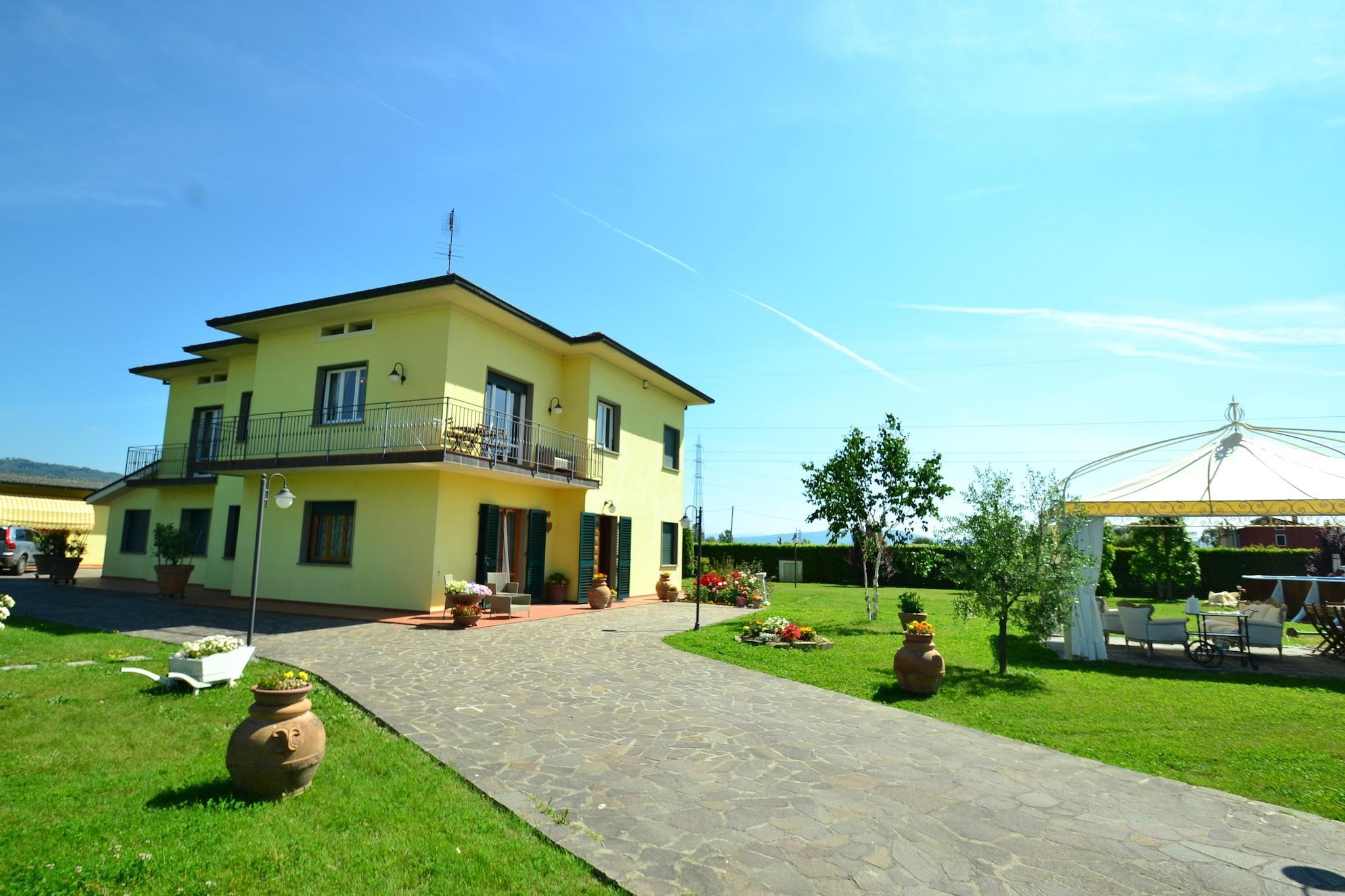 Die Unterkunft besteht aus 2 Wohnungen im ersten Stock und einem Anbau mit einem Schlafzimmer und einem Badezimmer im Erdgeschoss. Die Unterkunft bietet eine elegante, typisch toskanische Einrichtung mit viel Atmosphäre und Komfort. Die Villa ist ruhig gelegen, am Fuße des Hügels von Montecarlo. Die besondere Lage, umgeben von Gärten und Feldern, bietet eine spektakuläre Aussicht von der Residenz aus. Genießen Sie romantische Sonnenuntergänge und atemberaubende Ausblicke auf das gesamte Valdinievole. Der gepflegte Privatgarten von ca. 2000 m² ist komplett eingezäunt und verfügt über einen Parkplatz. Die Residenz ist mit einem Swimmingpool, Sonnenschirmen, Pavillon, Grill, Stühlen und Tischen ausgestattet. Der Eigentümer wohnt im selben Gebäude im Erdgeschoss. Es gibt einen separaten Eingang, um die Privatsphäre der Gäste zu gewährleisten.