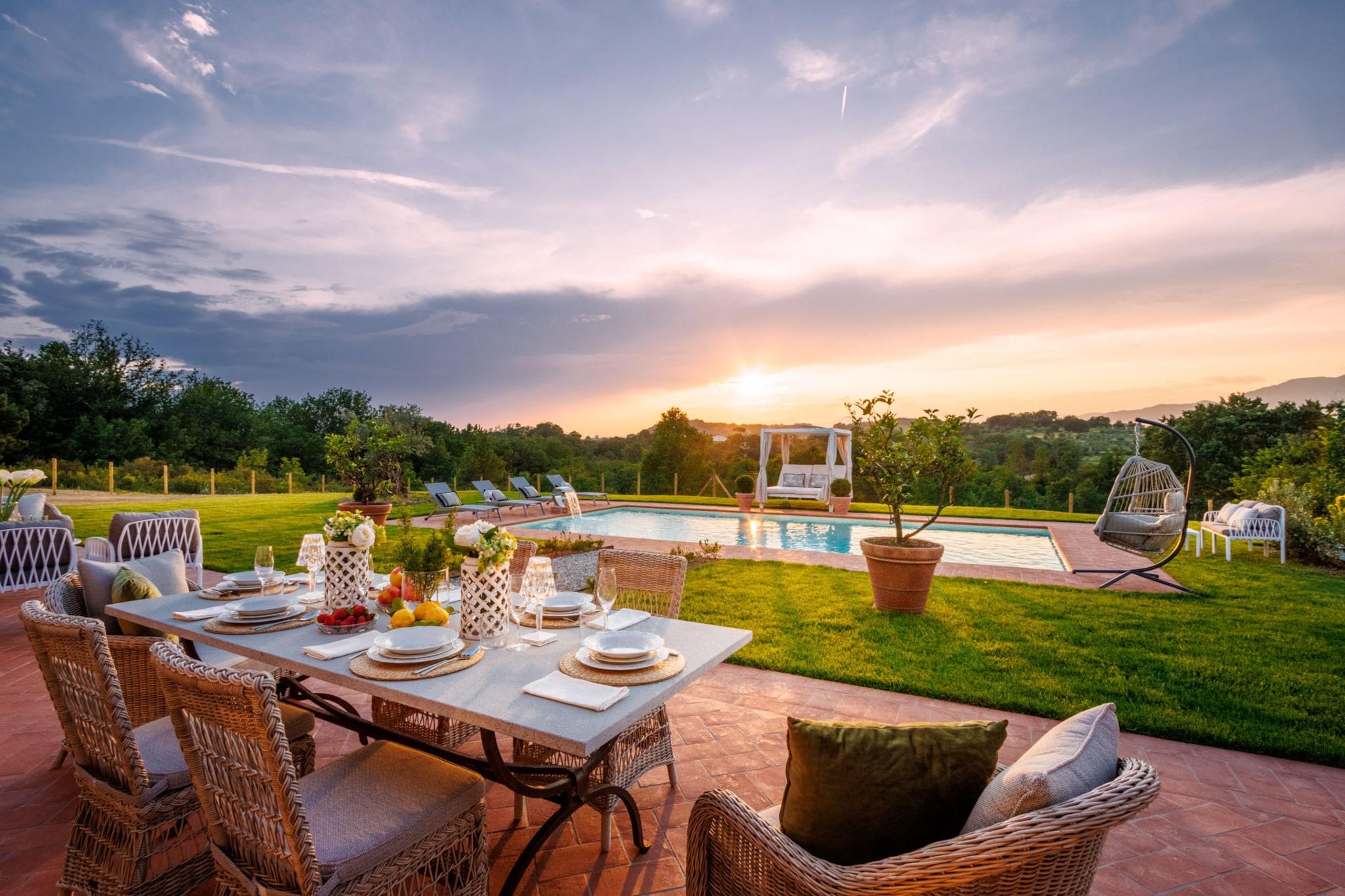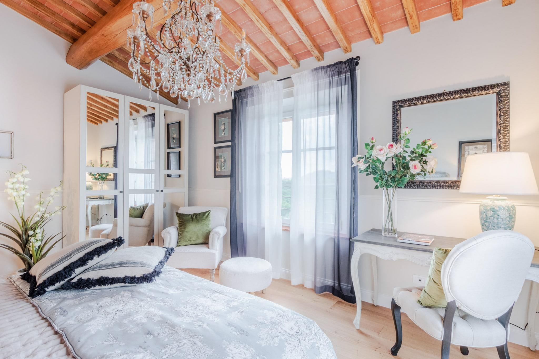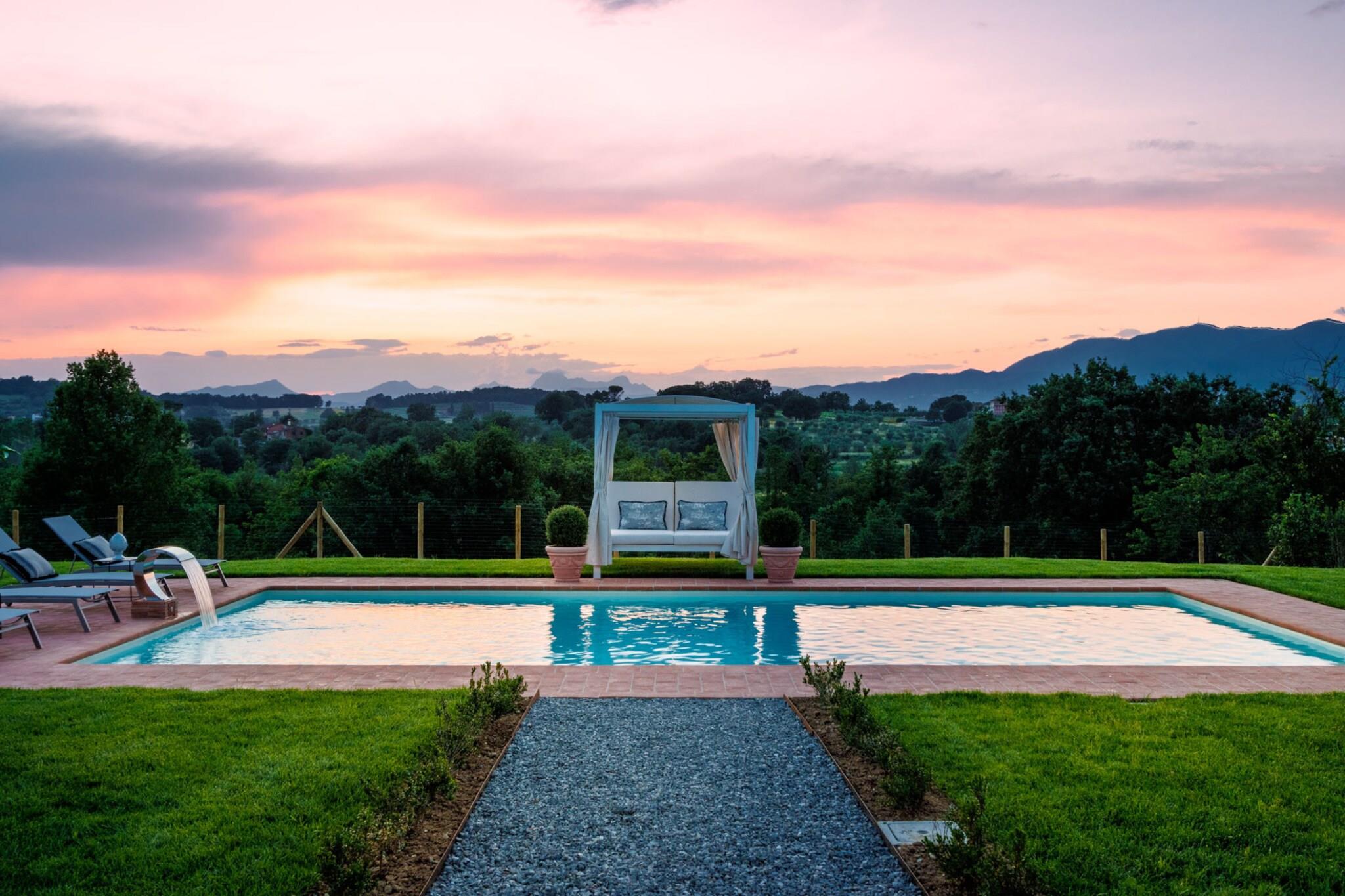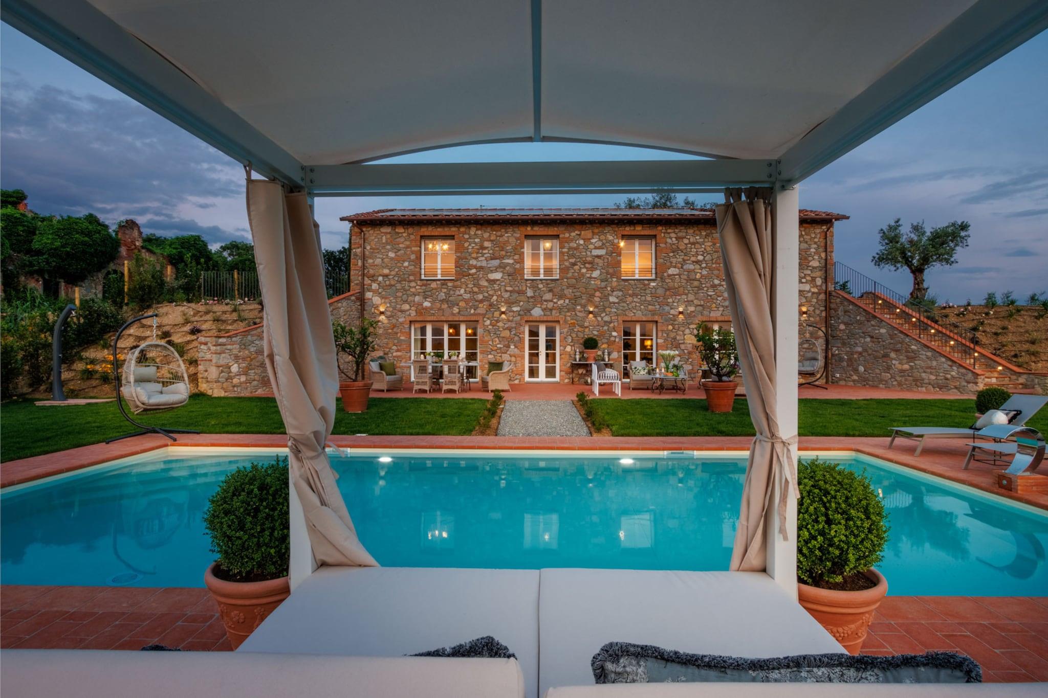 Dieses atemberaubende Luxus-Refugium spiegelt den Stil eines traditionellen toskanischen Bauernhauses wider und besticht durch sein elegantes Interieur und einen privaten Pool. Es liegt wunderschön in den Hügeln von Lucca. Das bezaubernde Anwesen mit drei Schlafzimmern erstreckt sich über zwei geräumige Etagen und bietet Gästen viel Platz und Privatsphäre. Eingebettet in ein privates Anwesen in der Nähe des charmanten Dorfes Montecarlo, ist die Villa von malerischen Weinbergen, Olivenhainen und malerischen Wanderwegen umgeben. Zahlreiche Restaurants und lokale Sehenswürdigkeiten sind nur wenige Minuten entfernt. Vor der Kulisse alter Olivenbäume und sanfter Hügel bietet das Refugium einen atemberaubenden Ausblick und einen üppigen grünen Rasen, der den einladenden Poolbereich umrahmt. Gäste können den Sonnenuntergang auf einer exklusiven Luxus-Himmelliege genießen, den atemberaubenden Ausblick vom Whirlpool durch die großen französischen Fenster genießen oder in der Lounge auf dem Pooldeck entspannen. Kulinarische Liebhaber können sich in der voll ausgestatteten, hochmodernen Küche ganz einfach Mahlzeiten zubereiten. Zahlreiche Lebensmittelgeschäfte in der Umgebung bieten frische Produkte aus der Region und runden das kulinarische Erlebnis ab. Moderne Annehmlichkeiten wie Klimaanlage und WLAN tragen zum Komfort Ihres Aufenthalts bei. Dieses luxuriöse Refugium liegt günstig und ist nur einen kurzen Spaziergang von feinen Panoramarestaurants und Weingütern, nur 4 Minuten vom pulsierenden Dorf Montecarlo und 16 Minuten vom historischen Zentrum von Lucca entfernt. Das nahe gelegene Dorf Porcari bietet weitere Annehmlichkeiten wie Geschäfte, Supermärkte und Bäckereien und ist nur 5 Minuten entfernt. Da die nächste Autobahnanbindung nur 10 Minuten vom Anwesen entfernt ist, haben Gäste einfachen Zugang zu den Flughäfen Pisa und Florenz sowie zu einer Vielzahl renommierter Reiseziele wie Cinque Terre, Siena und San Gimignano, die alle in 15 bis 70 Minuten erreichbar sind. Hinweis: Kurtaxe ist vor Ort zu entrichten.