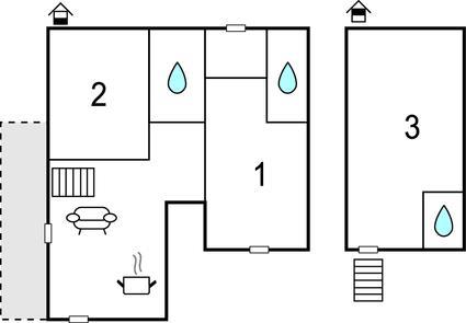 Badezimmer (nr. 3) - WC. Warmes und kaltes Wasser. Dusche