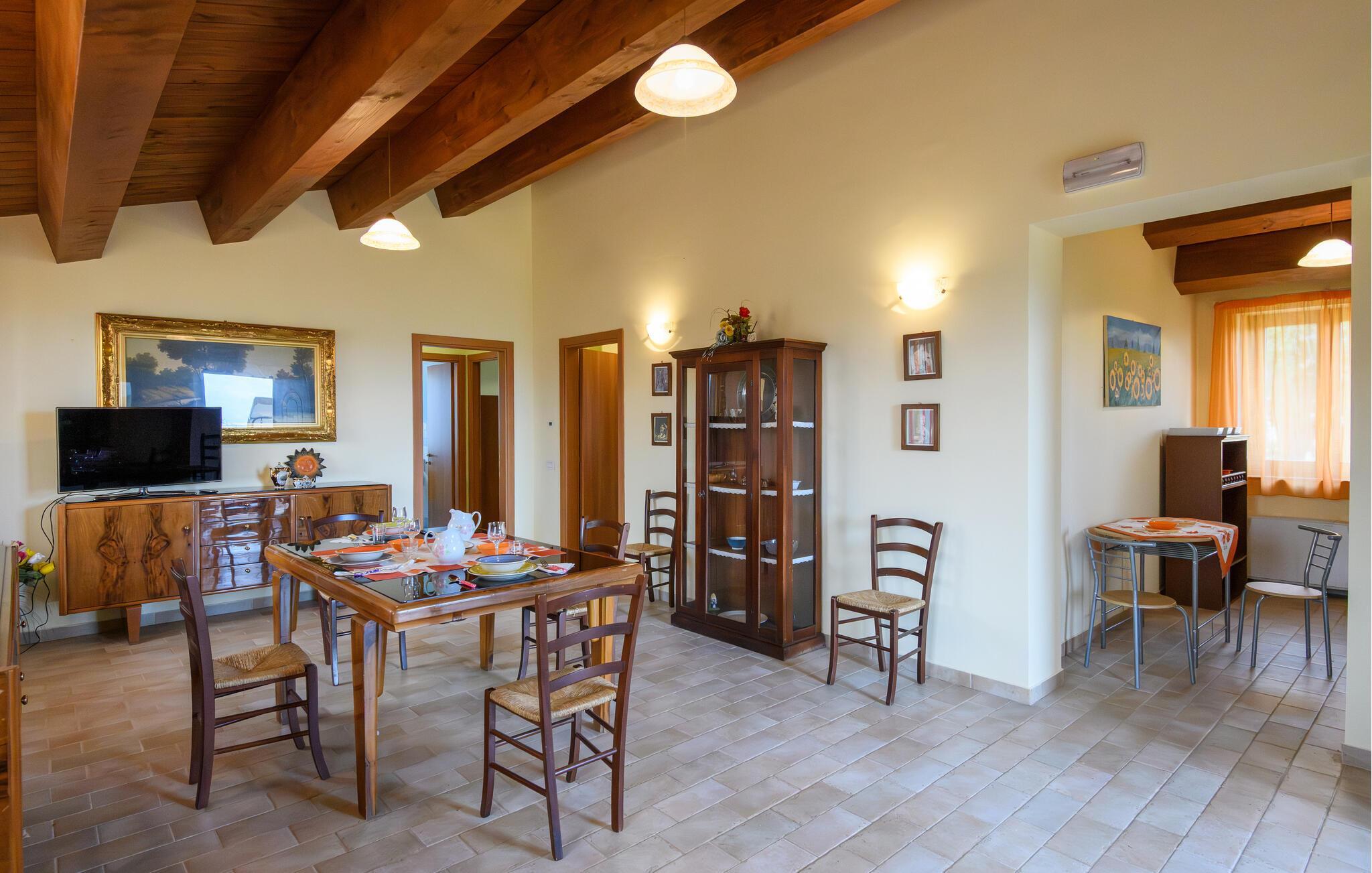 Dieses großzügige Ferienhaus begrüßt Sie auf einer Anhöhe inmitten eines weitläufigen Naturgrundstücks und bietet Ihnen viel Platz für entspannte Tage mit der Familie oder Freunden. Bereiten Sie leckere Pastagerichte zu, planen Sie Ihre Unternehmungen bei fröhlichen Mahlzeiten und widmen Sie sich Ihren Liebsten bei harmonischen Spieleabenden.