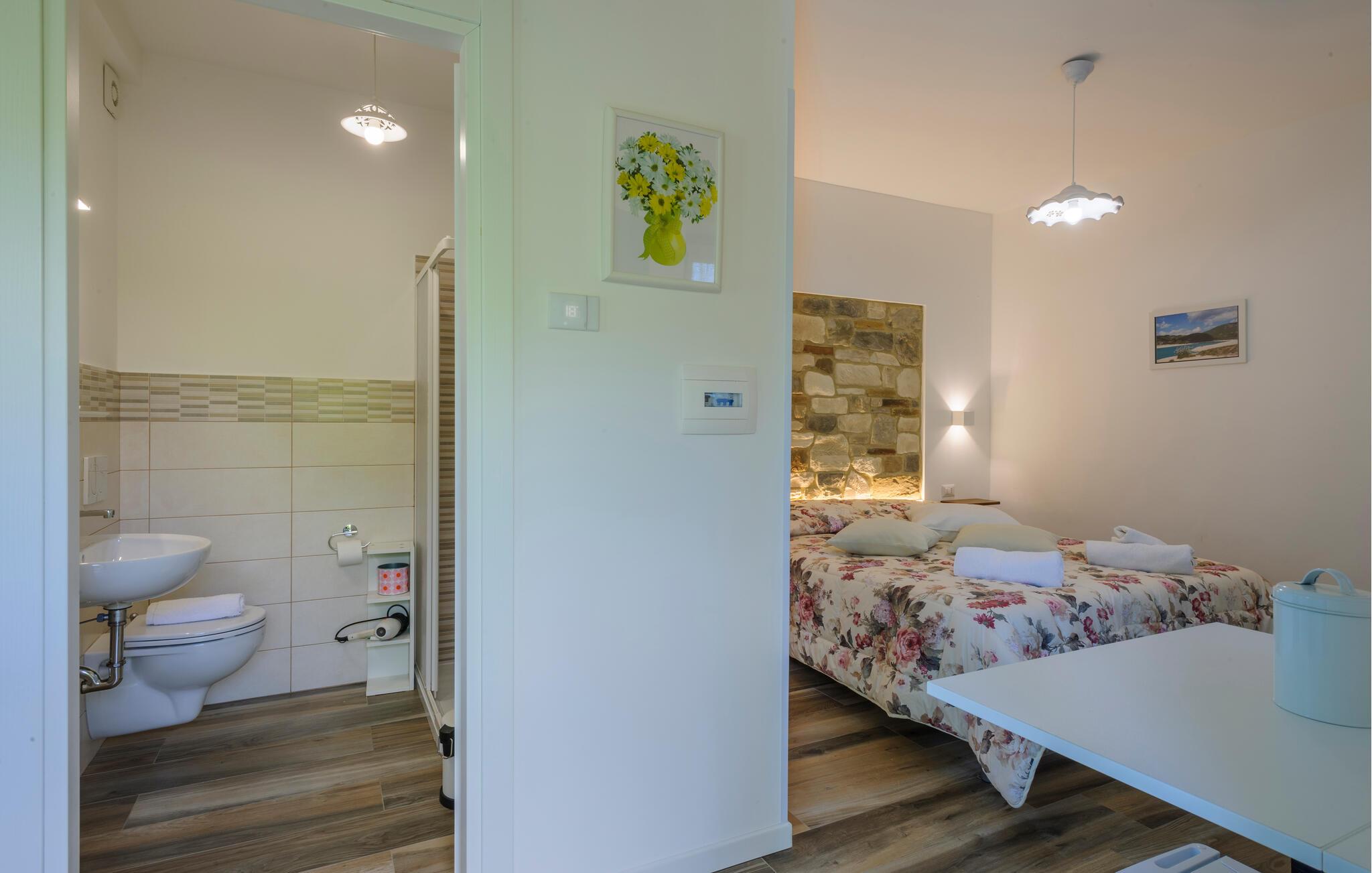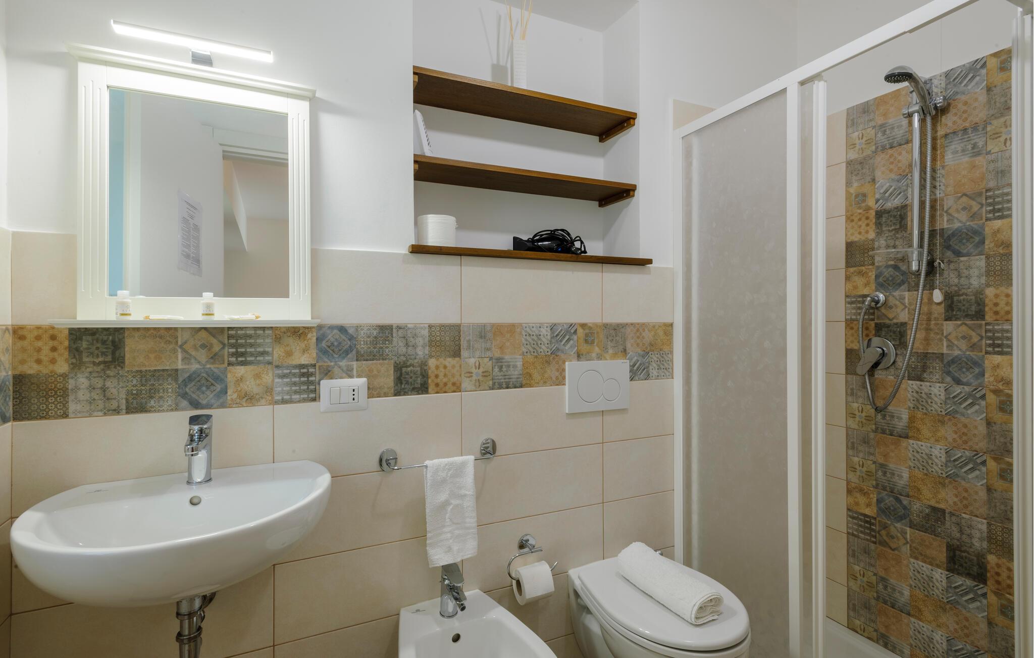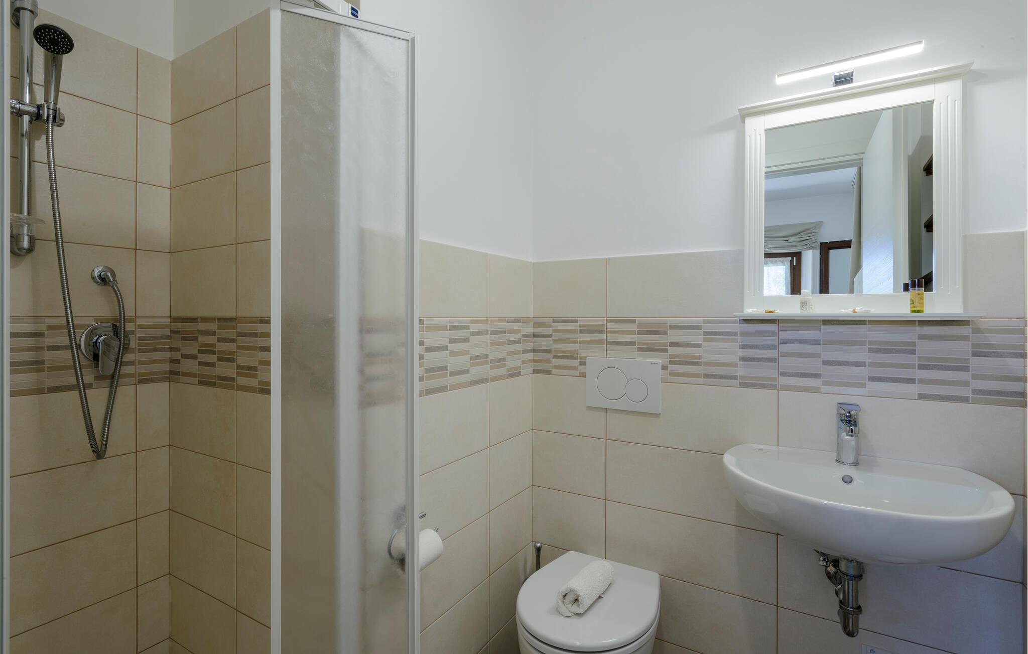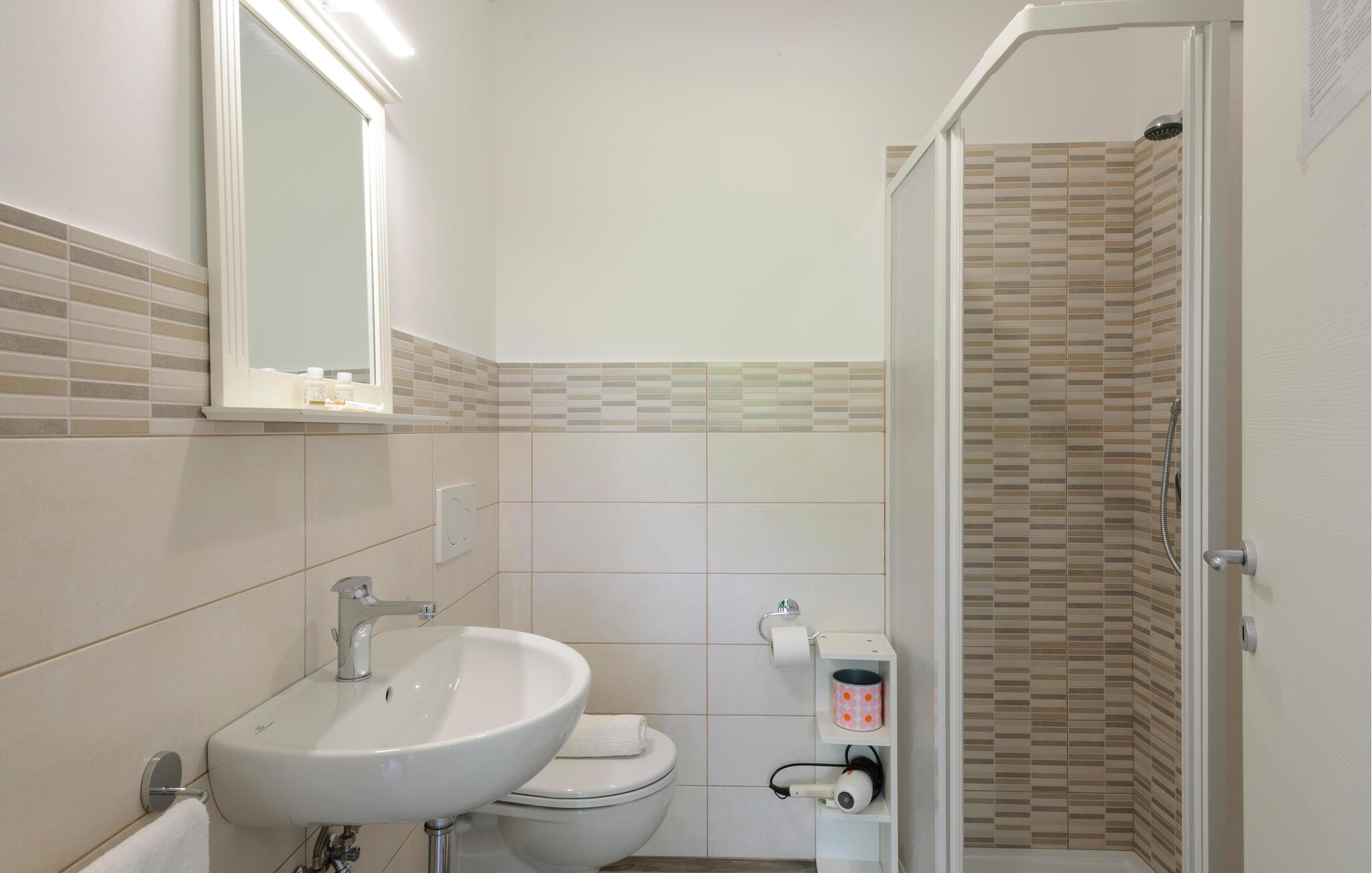 - WC mit warmem und kaltem Wasser, Dusche