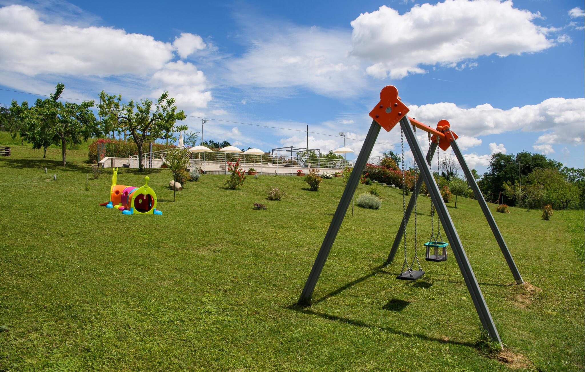 Genießen Sie auch die großzügigen Sitzgelegenheiten im Freien. Ob beim Frühstück oder beim Abendessen auf der Terrasse, den Panoramablick auf die umliegenden Landschaften können Sie hier stets genießen. Der schöne Pool ist ein weiteres Highlight Ihres Ferienhauses. Ziehen Sie hier in Ruhe Ihre Bahnen oder entspannen Sie sich einfach auf einer der Sonnenliegen, umgeben von der malerischen Hügelkulisse.