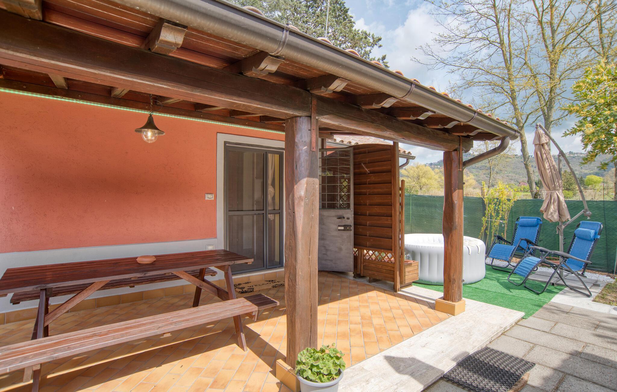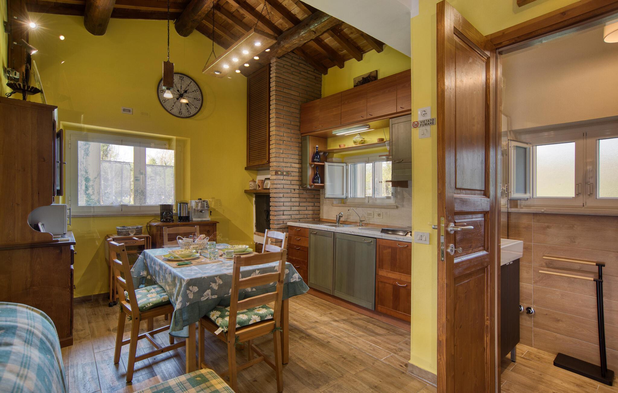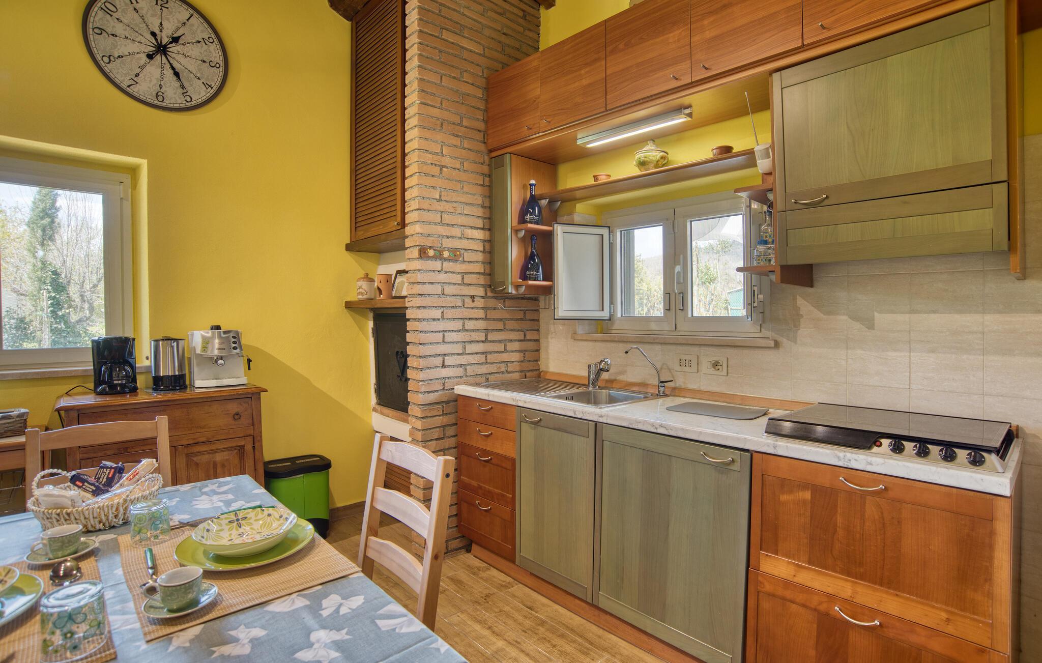 Erleben Sie einen erholsamen Urlaub in Ihrem Ferienhaus in Montefiascone. Das Haus besticht durch seine warme, einladende Einrichtung und bietet Ihnen die ideale Umgebung, um zu entspannen. Verweilen Sie auf der gemütlichen Terrasse, ausgestattet mit rustikalen Holzmöbeln, und genießen Sie Ihre Mahlzeiten im Freien. Nutzen Sie den gemauerten Grillbereich, um ein leckeres Barbecue zuzubereiten und die lauen Abende unter dem klaren Himmel zu verbringen. Treten Sie in die gemütliche Küche ein, die mit Holzakzenten und einem gemütlichen Esstisch ausgestattet ist. Die hellen Räume des Hauses schaffen eine freundliche und entspannte Atmosphäre, in der Sie sich wie zu Hause fühlen werden.