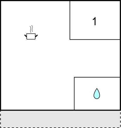 Badezimmer (nr. 1) - WC. Warmes und kaltes Wasser. Dusche