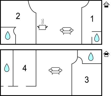 Badezimmer (nr. 4) - WC. Warmes und kaltes Wasser. Dusche
