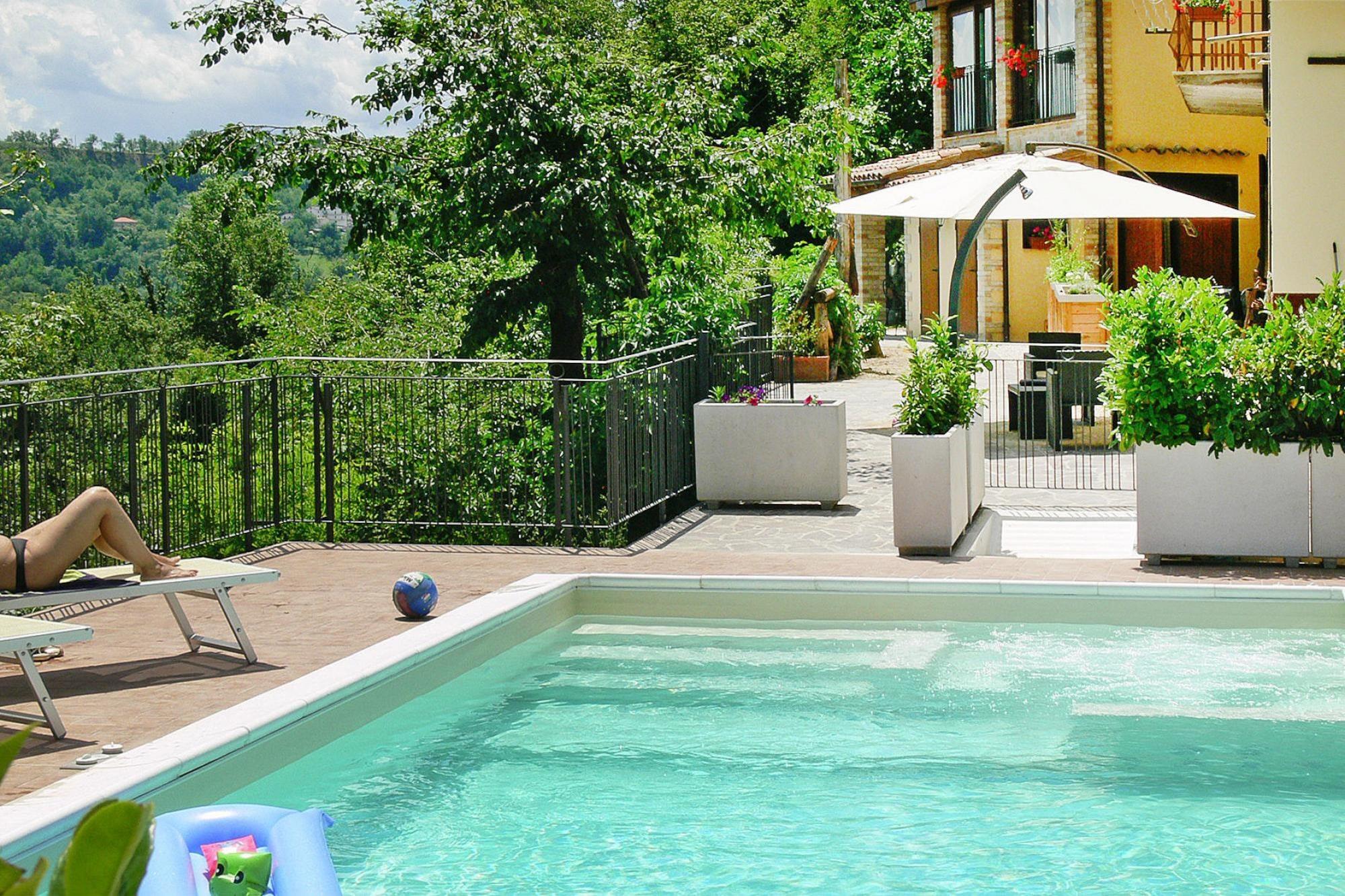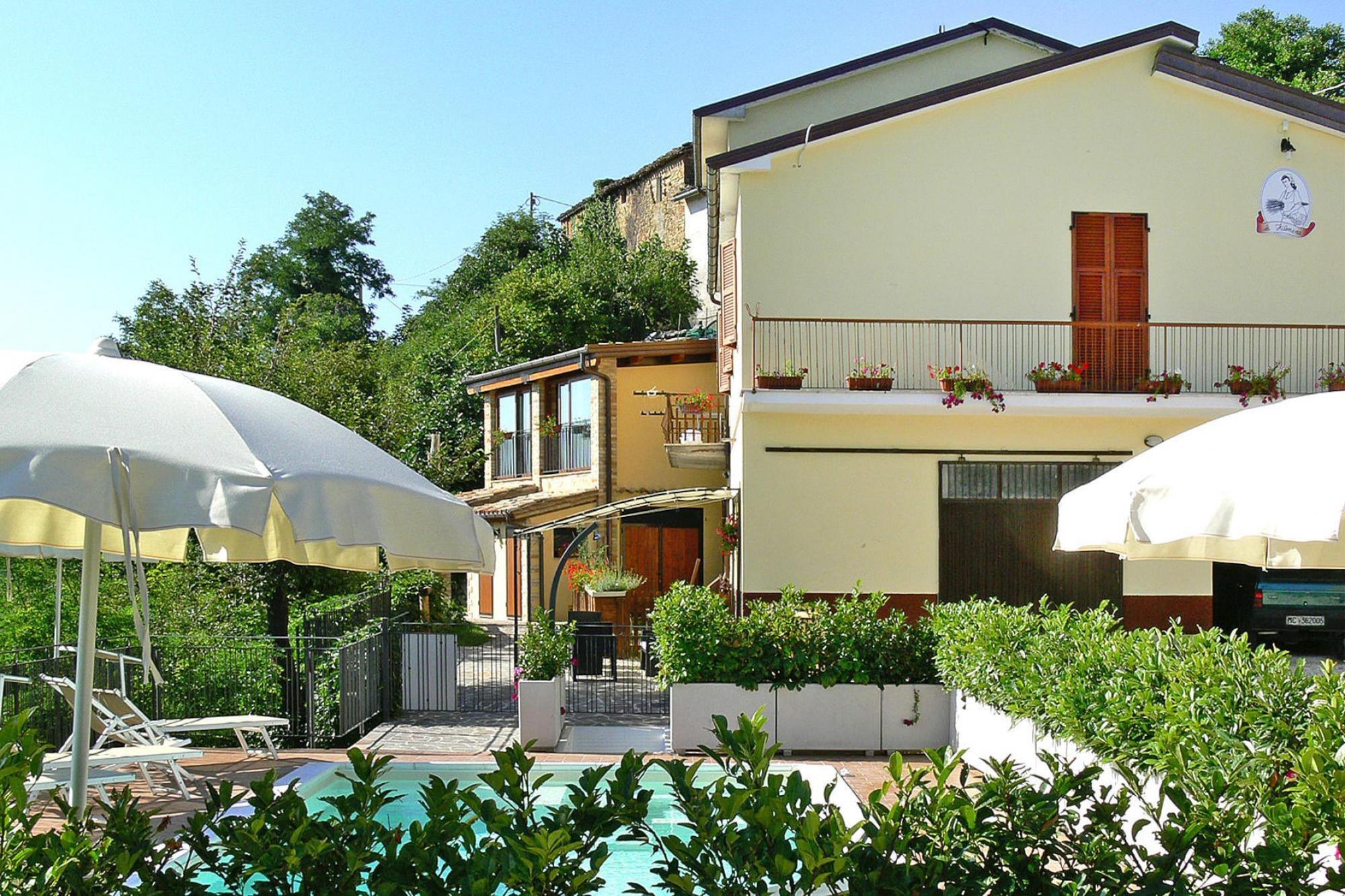 Kleine familiäre Anlage im Nationalpark der Monti Sibillini in der Ortschaft Collina. Sie wohnen in einer Höhenlage von etwa 750 Metern mit herrlichem Panoramablick ins Grüne. Die Appartements wurden sorgfältig nach traditionellem Baustil der Region renoviert und sind in dem kleinen mittelalterlichen Dorf rund um das Herrenhaus herum verstreut. Der fantastische Blick auf die Wälder, die tolle Lage des Pools und der Poolterrasse, sowie die gemütlichen Appartements mit ihren privaten Gärten lassen sofort Erholung und Urlaubs-Stimmung aufkommen. Tauchen Sie ein in die Themen Land, Leute und Traditionen: Sie können nämlich gegen eine Gebühr von 35 Euro pro Person an einem Kochkurs teilnehmen. Darüber hinaus wird Ihnen im kleinen hauseigenen Museum mit landwirtschaftlichen Exponaten das alltägliche Leben der Bewohner nahegebracht. Das bietet Ihre Unterkunft: 3 Gebäude, 5 Wohneinheiten, Rezeption, WLAN im Rezeptionsbereich, WLAN im Poolbereich, Gemeinschaftsterrasse, Grillplatz, Gegen Gebühr: Kochkurs, Weinverkostung. Aktivitäten: Gemeinschaftlicher Außenpool 36 qm (Geöffnet von Anfang Juni bis Ende September), Hydromassage, Außendusche, Sonnenterrasse, Liegen, Sonnenschirme. Für Kinder: Spielzimmer.Gegen Gebühr: Babysitter / Kinderbetreuung. HighLights : WLAN Aktivitäten in der Nähe : Offizielle Trekkingwege: 5 km Infernaccio, 12 km Monte Monaco und Lago Pilato Mobilität : Nicht geeignet für Personen mit eingeschränkter Mobilität