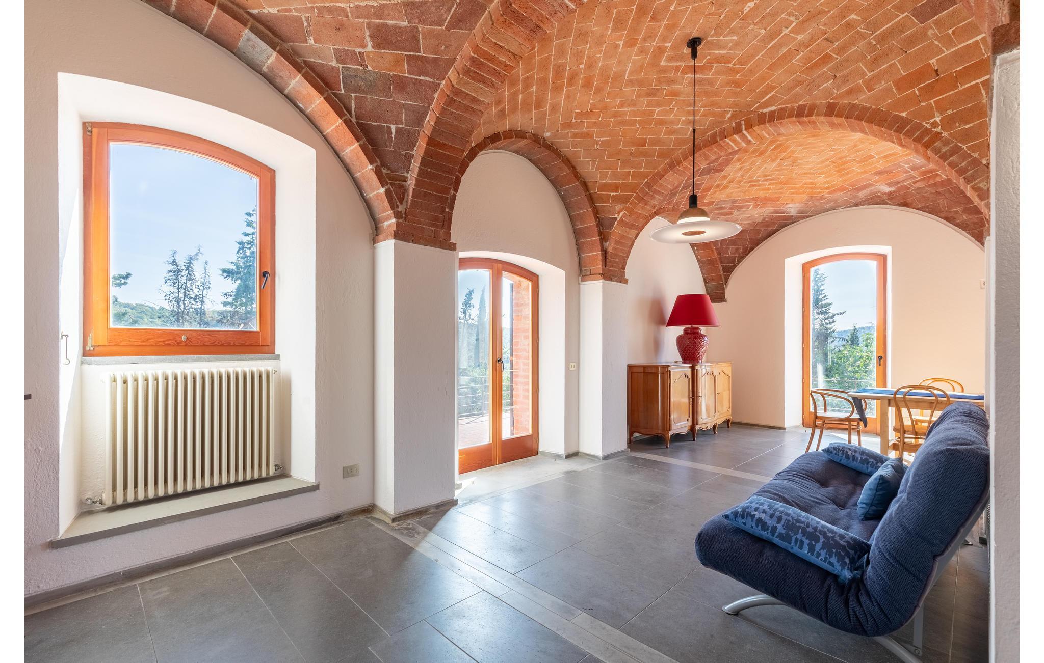 Unabhängiges Haus auf einem grossen Landgut, wo sich auch das Haus der Eigentümer befindet. Von bewaldeten Hügeln umgeben ist es absolut ruhig gelegen und hat eine schöne Aussicht über das Land. Zufahrt über 0,9 km Schotterstrasse. Entfernungen: 5 km Montegabbione (Lebensmittelgeschäft), 12 km Supermarkt, 15 km Città della Pieve, 35 km Orvieto und der Trasimenische See, 140 km Rom, 150 km Florenz. Große Bereiche mit Naturrasen, Swimmingpool, Außendusche, Parkplatz und Platz für Mahlzeiten im Freien.