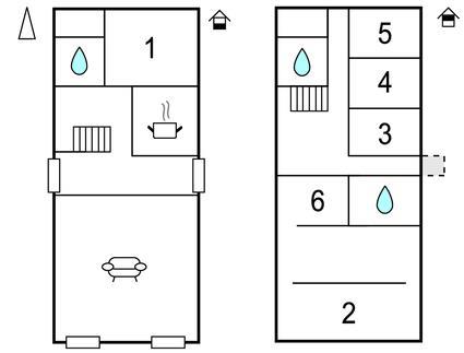 Badezimmer (nr. 1) - WC. Warmes und kaltes Wasser. Dusche