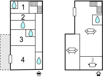 Badezimmer (nr. 1) - WC. Warmes und kaltes Wasser. Dusche
