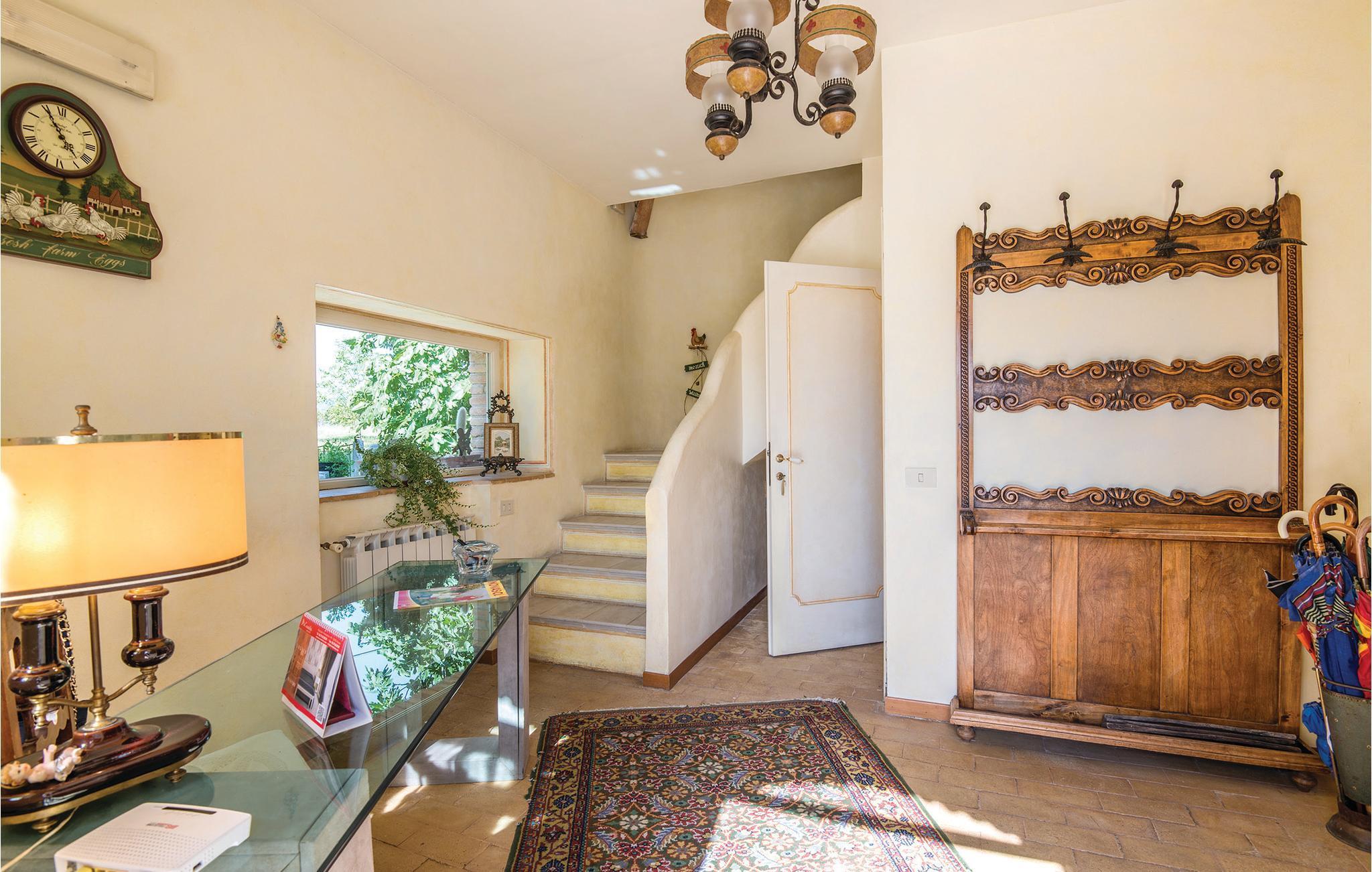 Dieses wunderschöne Landhaus aus dem neunzehnten Jahrhundert liegt am Rande des malerischen Dorfes Monteleone Sabino, in den Sabiner Bergen, zwischen den Tälern des Turano und Farfa. Es liegt in unmittelbarer Nähe der Ruinen der archäologischen Stätte von "Trebula Mutuesca", einer der bedeutendsten der Region Latium. Das Haus ist geschmackvoll eingerichtet und verfügt über typische Merkmale der Bauernhäuser in der Umgebung, wie Holzbalken, Stein- oder Fliesenböden und Kamin. Der Garten mit seinem wunderschönen Pool und teilweise schattigen Bereichen lädt zum Entspannen ein. Genießen Sie den Panoramablick über die Täler von Sabina und die Benediktiner Kirche von Santa Vittoria (150 m). Diese Villa ist ein idealer Ort für zivile und religiöse Hochzeiten. Auf Anfrage ist es in der Tat möglich, Hochzeiten und Catering-Service zu organisieren. Zwei Schlafzimmer haben Zugang zu einer Terrasse mit Blick auf den Garten.