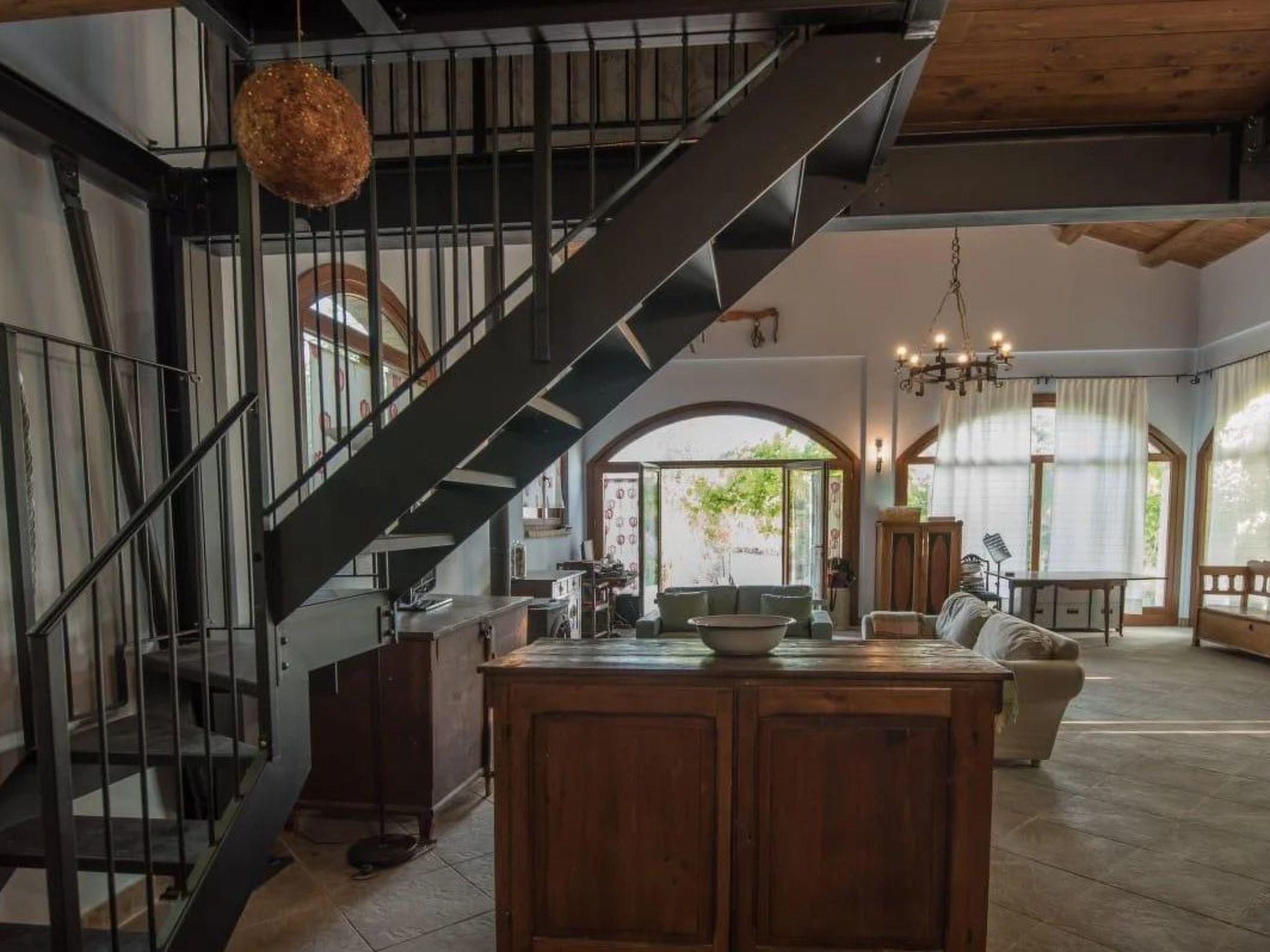 Das Haupthaus erstreckt sich über zwei Etagen: Im Erdgeschoss befinden sich ein Doppelwohnzimmer mit Ledersofas, ein Esszimmer mit einem großen Tisch, an dem bis zu 16 Erwachsene Platz finden, und eine voll ausgestattete Küche. Der Schlafbereich umfasst 2 Doppelschlafzimmer, 2 Zweibettzimmer und 3 Bäder. Diese Wohnung verfügt auch über eine kombinierte Waschmaschine und einen Boiler. Im ersten Stock befinden sich 4 Doppelzimmer und 1 Dreibettzimmer, alle mit eigenem Bad, sichtbaren Holzbalken, Steinwänden und Deckenventilatoren. Eine zusätzliche Küche und eine große Dachterrasse vervollständigen die Wohnung und bieten einen atemberaubenden Blick.