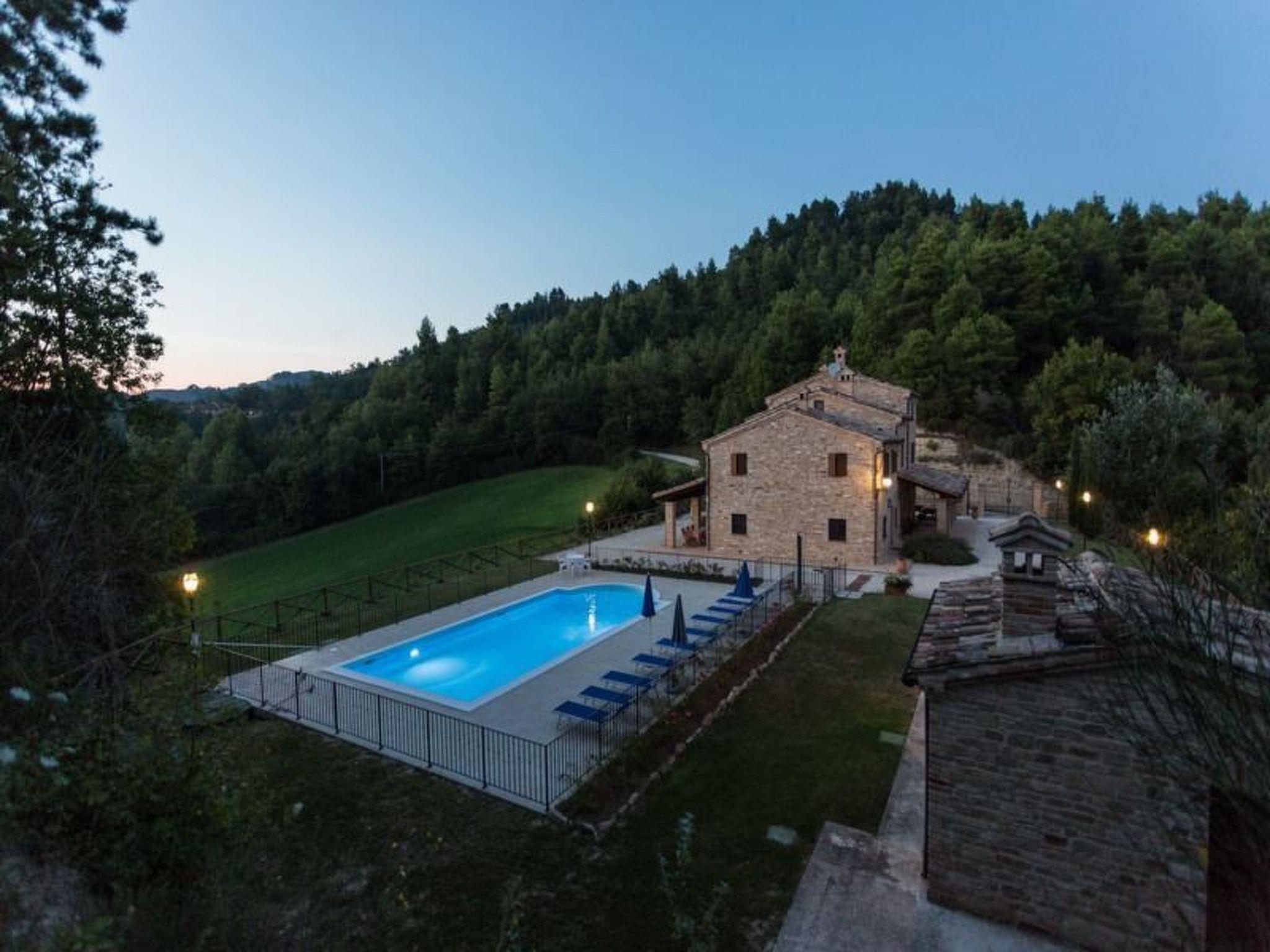 Dieses wirklich unverwechselbare Haus in den Marken wurde zu einer komfortablen Villa umgebaut. Es hat einen teuren und atemberaubenden Blick über die Landschaft bis hin zur Bergkulisse. Die Villa Montelparo (2 Wohnräume, 2 Küchen, 3 Doppel- und 2 Einzelzimmer) ist in zwei Wohnungen (5+3 Personen) mit unabhängigen Eingängen unterteilt, wird aber auch als private Villa für eine Großfamilie mit Kindern oder eine Gruppe von Freunden vermietet. Zum Anwesen gehört auch ein privater Naturlehrpfad im Wald (1 km und einige Rastplätze mit Sitzgelegenheiten und Tischen), auf dem man wandern, joggen und Mountainbike fahren kann. In der Umgebung gibt es viel zu tun: Ascoli Piceno, Fermo, der Nationalpark der Sibillini-Berge und der Strand von Riviera delle Palme sind alle in ca. 30 Minuten zu erreichen.Privater Naturlehrpfad Privater Pool (10 x 5) Nebengebäude mit Tisch und Tischfußball Essbereich im Freien mit Veranda und Grill Erdgeschoss 2 Wohnzimmer mit Kamin, TV SAT und Wifi 2 Ess-/Küchen mit 4 Herden, Backofen, Kühlschrank und Toaster (eine dieser Küchen hat auch eine Spülmaschine)1 Duschraum mit Waschmaschine Erster Stock 2 Doppelzimmer 1 Einzelzimmer 2 Duschräume Zweiter Stock 1 Doppelzimmer 1 Einzelzimmer 1 Duschraum Montelparo 3.5 km (Supermarkt und Restaurants)Pedaso (Strand) 30 KmAscoli Piceno 38 KmFermo 35 KmSan Benedetto del Tronto 45 KmPorto San Giorgio 37 KmSibillini National Park 25 Km
