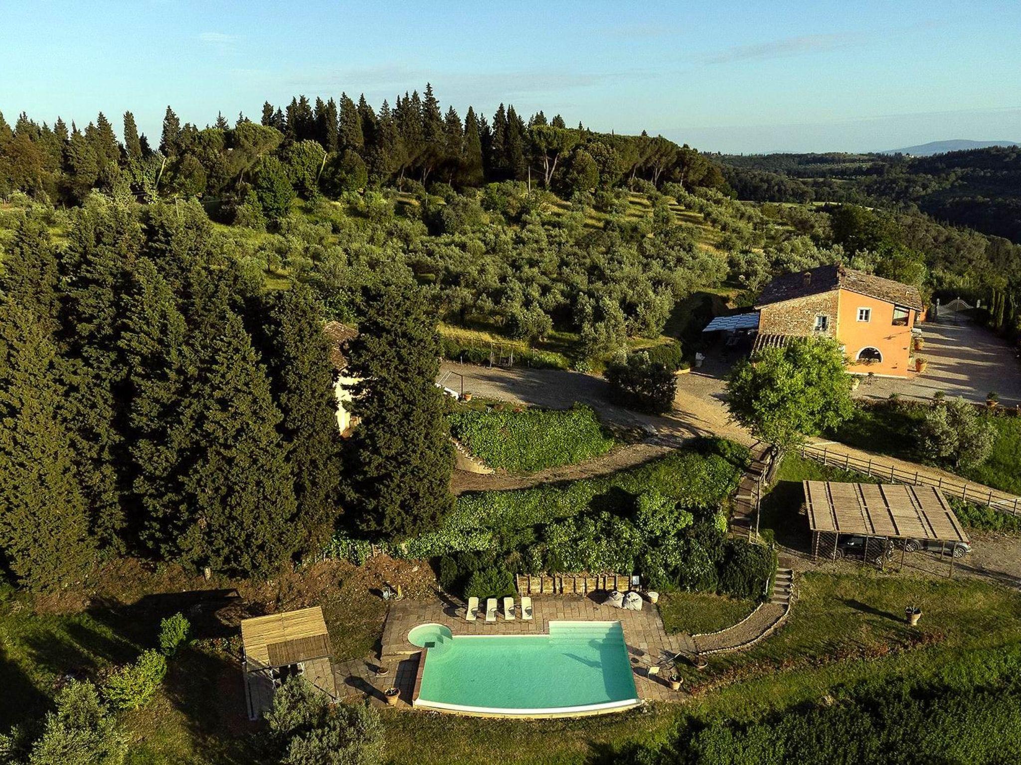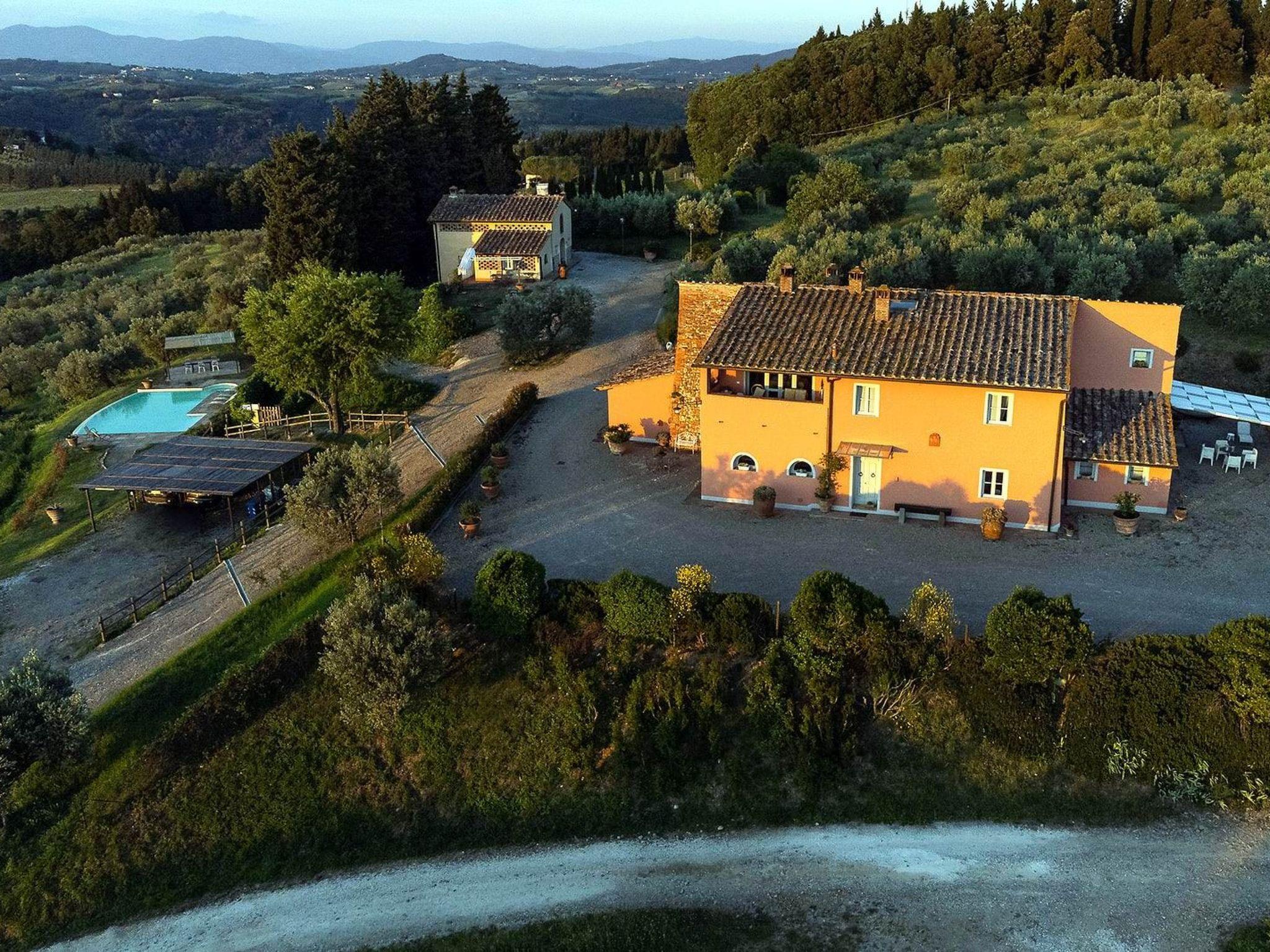 Dieses charmante Ferienhaus bietet Platz für bis zu 17 Personen und liegt auf dem Lande in Montelupo Fiorentino, gleich außerhalb von Florenz (25 km). Umgeben von jahrhundertealten Olivenbäumen und Zypressen besteht das Anwesen aus einer Villa und einem Cottage. Von seiner exklusiven Lage auf einem Hügel aus haben Sie einen atemberaubenden 360°-Blick auf die toskanische Umgebung.