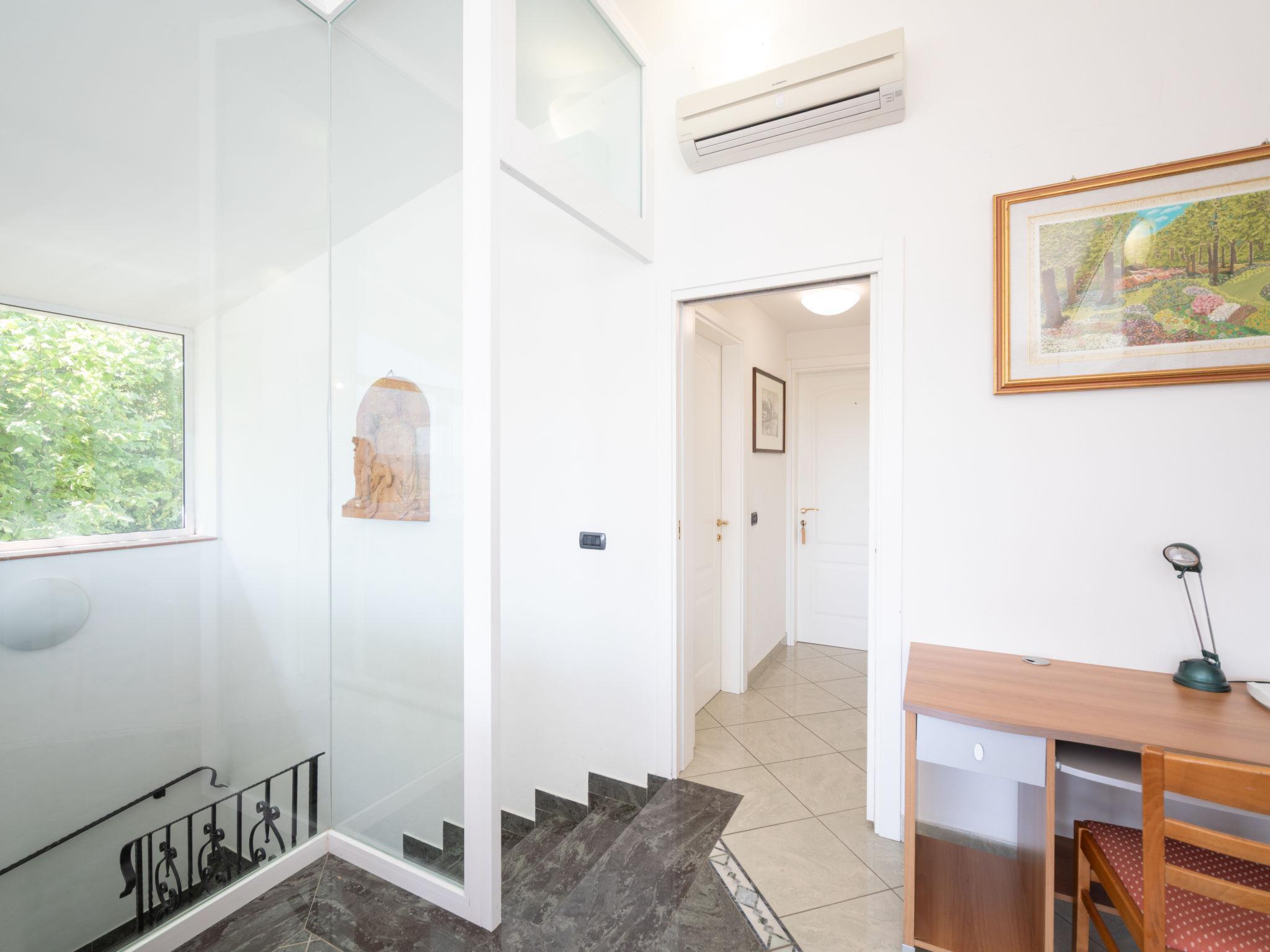 "La Rosa", 9-Zimmer-Doppelhaushälfte 290 m2 auf 2 Stockwerken, im Erdgeschoss. Eingang. 2 Doppelzimmer, jedes Zimmer mit Dusche/Bidet/WC, Digital-TV und Klimaanlage. 1 Zimmer mit 2 Betten, Digital-TV und Klimaanlage. 1 Doppelzimmer mit Bad/Bidet/WC, Sprudelbad, Digital-TV und Klimaanlage. Küche (5 Kochplatten, Backofen, Geschirrspüler, Mikrowelle, Tiefkühler) mit Esstisch, Digital-TV und Klimaanlage. Dusche/Bidet/WC. Obergeschoss: grosses Wohnzimmer mit Digital-TV. Ausgang zur Terrasse. 1 Doppelzimmer mit Dusche/Bidet/WC und Klimaanlage. 1 Zimmer mit 3 Betten, Digital-TV und Klimaanlage. 1 Doppelzimmer mit Dusche/Bidet/WC, Digital-TV und Klimaanlage. Ausgang zur Terrasse. 1 Doppelzimmer mit Dusche/Bidet/WC, Digital-TV und Klimaanlage. Ausgang zur Terrasse. Dusche/Bidet/WC. Terrassenmöbel, Gartengrill. Panoramasicht auf die Landschaft. Zur Verfügung: Waschmaschine. Internet (WLAN, gratis). Geeignet für Familien. Maximal 2 Haustiere/Hunde erlaubt. Eines der Zimmer im Erdgeschoss ist ein Nebenraum des Hauptgebäudes. IT048028B4MRCE4JE3