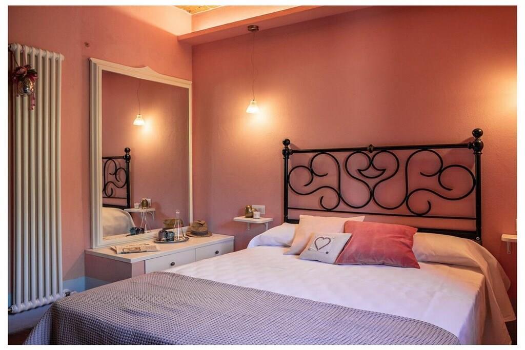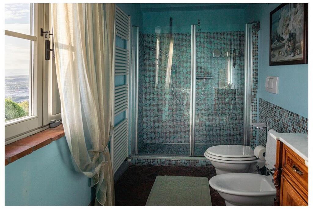 Es bietet Platz für bis zu 11 Personen, hat 6 Schlafzimmer und 6 Bäder. Umgeben von einem privaten Garten mit Rasen und verschiedenen Pflanzen, genießt das Anwesen eine Panoramalage und eine große Terrasse mit Grill und Esstisch für 12 Personen. Im Außenbereich finden Sie einen schönen Pool (7,3 x 3,3 m, Tiefe 1,4 m), der von Mai bis September geöffnet ist. Der Pool ist ausgestattet mit: Hydromassagebereich (direkt an der Eingangstreppe), Sonnenliegen, Außendusche und Hängematte. Zur Verfügung der Gäste steht auch ein privater Parkplatz mit 4 überdachten und 4 nicht überdachten Stellplätzen. Neben der Villa Botinaccio befindet sich eine weitere Villa, "Casina Botinaccio", die denselben Eigentümern gehört und ebenfalls von Touristen gemietet werden kann. Die Gärten und Pools der beiden Häuser sind weit voneinander entfernt und nicht einsehbar, um die größtmögliche Privatsphäre zu gewährleisten. Größere Gruppen können beide Häuser gemeinsam mieten. Innere Beschreibung Die komplett restaurierte Villa Botinaccio mit ihren Terrakottaböden und Decken aus Altholz erstreckt sich über 2 Etagen und kann bis zu 11 Personen beherbergen. Sie verfügt über 6 Schlafzimmer und 6 Badezimmer. Internet Wifi ist nur im Wohnbereich und in einigen an die Villa angrenzenden Außenbereichen verfügbar. Haustiere sind nur auf Anfrage erlaubt (gegen Aufpreis). Ein Kinderbett und ein Hochstuhl sind auf Anfrage erhältlich. Es gibt keine Klimaanlage, aber die Wände des Hauses sind sehr dick und halten alle Räume natürlich kühl. Alle Schlafzimmer haben Deckenventilatoren. Erdgeschoss: Das Erdgeschoss besteht aus zwei Wohnzimmern mit Sofas und einer großen Küche, gekennzeichnet durch schöne Bogenfenster, die einen herrlichen Blick auf das umliegende Tal bieten. Die Küche ist ausgestattet mit: Kühlschrank, Backofen, Herd, Mikrowelle, Toaster, Geschirrspüler, Wasserkocher, Kaffeemaschine, und Esstisch für 6 Personen. Es folgen zwei Doppelschlafzimmer (eines davon mit einem separaten Ankleidezimmer und einem geräumigen Bad mit Dusche) und ein Durchgangszimmer/Arbeitszimmer, das das Erdgeschoss mit dem ersten Stock verbindet (mit Einzelbett und Schreibtisch). Schließlich gibt es noch ein Badezimmer mit Dusche und eine Toilette. Erster Stock: Im Obergeschoss befinden sich zwei Wohnzimmer mit Sofas und Kamin, eine Toilette und eine helle Küche mit Panoramaterrasse (mit Sofa und Stühlen). Die Küche ist ausgestattet mit: Kühlschrank, Backofen, Herd, Toaster, Geschirrspüler, Kaffeemaschine und Esstisch für 4 Personen. Der Schlafbereich besteht aus: einem Schlafzimmer mit Doppelbett und eigenem Bad mit Dusche, einem weiteren Schlafzimmer mit Doppelbett, einem Schlafzimmer mit zwei Einzelbetten und einem Bad mit Dusche. Preise und Konditionen Im Preis inbegriffen: Haus-, Pool- und Gartenpflege; Wasserverbrauch; Brennholz (1 Korb); wöchentlicher Wechsel der Bettwäsche und Handtücher; Internet Wifi; Babybett und Hochstuhl (auf Anfrage); private Nutzung des Pools (einschließlich des Hydromassagebereichs).