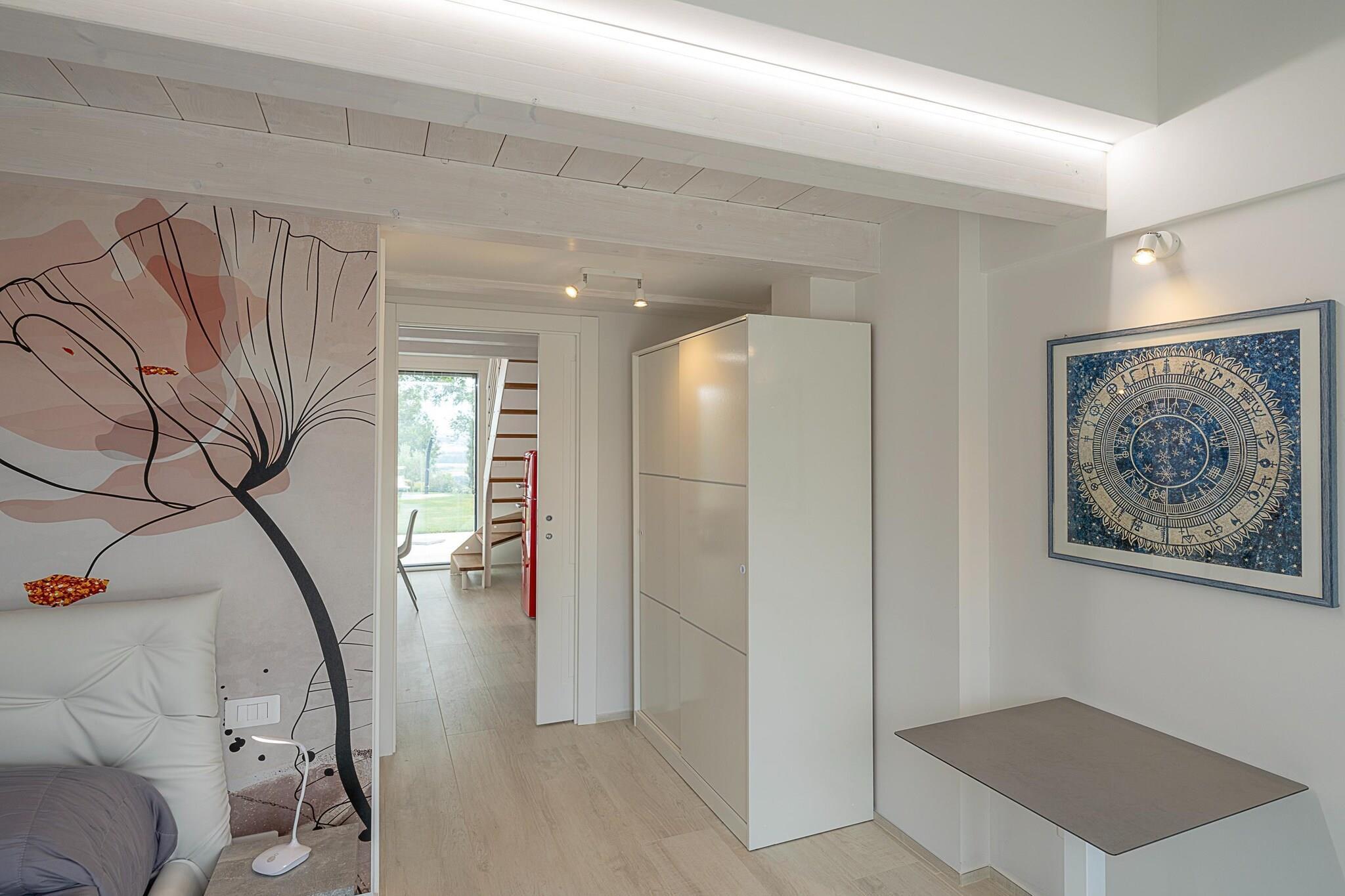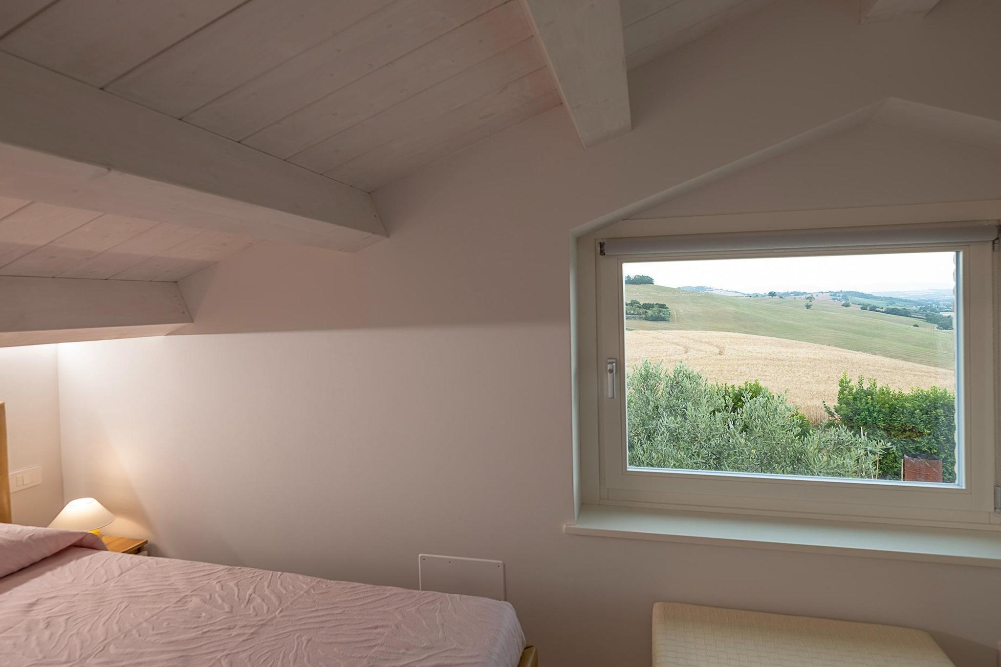 Willkommen zu Ihrem perfekten Urlaub in Montelupone! Diese einladende Erdgeschosswohnung in einer atemberaubenden Villa ist ideal für Familien oder Freunde, die einen unvergesslichen Urlaub verbringen möchten. Das geräumige Wohnzimmer verfügt über ein bequemes Doppelschlafsofa, einen Esstisch für gemeinsame Mahlzeiten und einen gemütlichen Sitzbereich, der sich perfekt zum Entspannen nach einem Tag voller Entdeckungen eignet. Die voll ausgestattete offene Küche lädt Sie ein, mit Leichtigkeit köstliche Mahlzeiten zuzubereiten. Genießen Sie erholsame Nächte im Hauptschlafzimmer mit einem gemütlichen Doppelbett, während ein charmantes Schlafzimmer auf der Mezzanine-Galerie zusätzlichen Schlafplatz bietet und so jedem einen komfortablen Aufenthalt garantiert. Das gut ausgestattete Badezimmer bietet alle Annehmlichkeiten, die Sie brauchen. Montelupone ist reich an Geschichte und Charme. Nur eine kurze Autofahrt entfernt finden Sie das historische Zentrum, wo Sie durch gepflasterte Straßen schlendern und mittelalterliche Architektur bewundern können. Die atemberaubenden Strände von Porto Recanati und Numana sind nur eine 20-minütige Autofahrt entfernt und perfekt zum Sonnenbaden und für Wassersport. Sie können auch nahe gelegene Sehenswürdigkeiten wie die bezaubernde Stadt Recanati besuchen, die für ihre Verbindungen zum Dichter Giacomo Leopardi bekannt ist, oder erlesene Weine in lokalen Weinbergen probieren. Egal, ob Sie am Pool faulenzen, durch malerische Landschaften radeln oder die reiche Geschichte von Montelupone erkunden, dieses Villa-Apartment ist der perfekte Ausgangspunkt für Ihr italienisches Abenteuer. Buchen Sie Ihren Aufenthalt noch heute und schaffen Sie unvergessliche Erinnerungen! Gehen Sie nach draußen und entdecken Sie einen teilweise eingezäunten Garten mit Gartenmöbeln, Sonnenliegen und einem Grill für Mahlzeiten im Freien. Tauchen Sie ein in den erfrischenden Swimmingpool mit atemberaubender Aussicht auf die umliegende Landschaft – perfekt für gemütliche Nachmittage. Zu den weiteren Annehmlichkeiten gehören eine Klimaanlage für Ihren Komfort, bequeme Parkplätze vor Ort und Fahrräder, die auf Anfrage gemietet werden können, damit Sie die malerische Umgebung erkunden können.