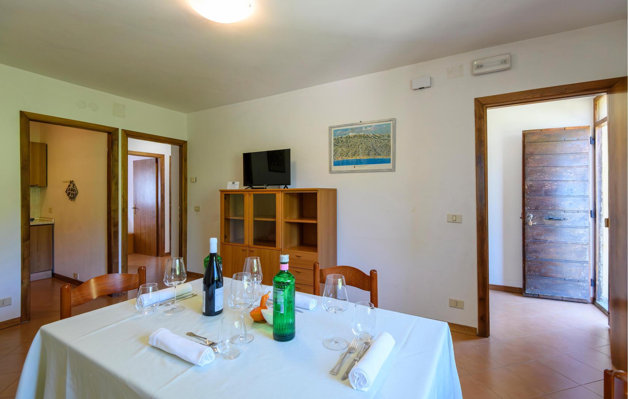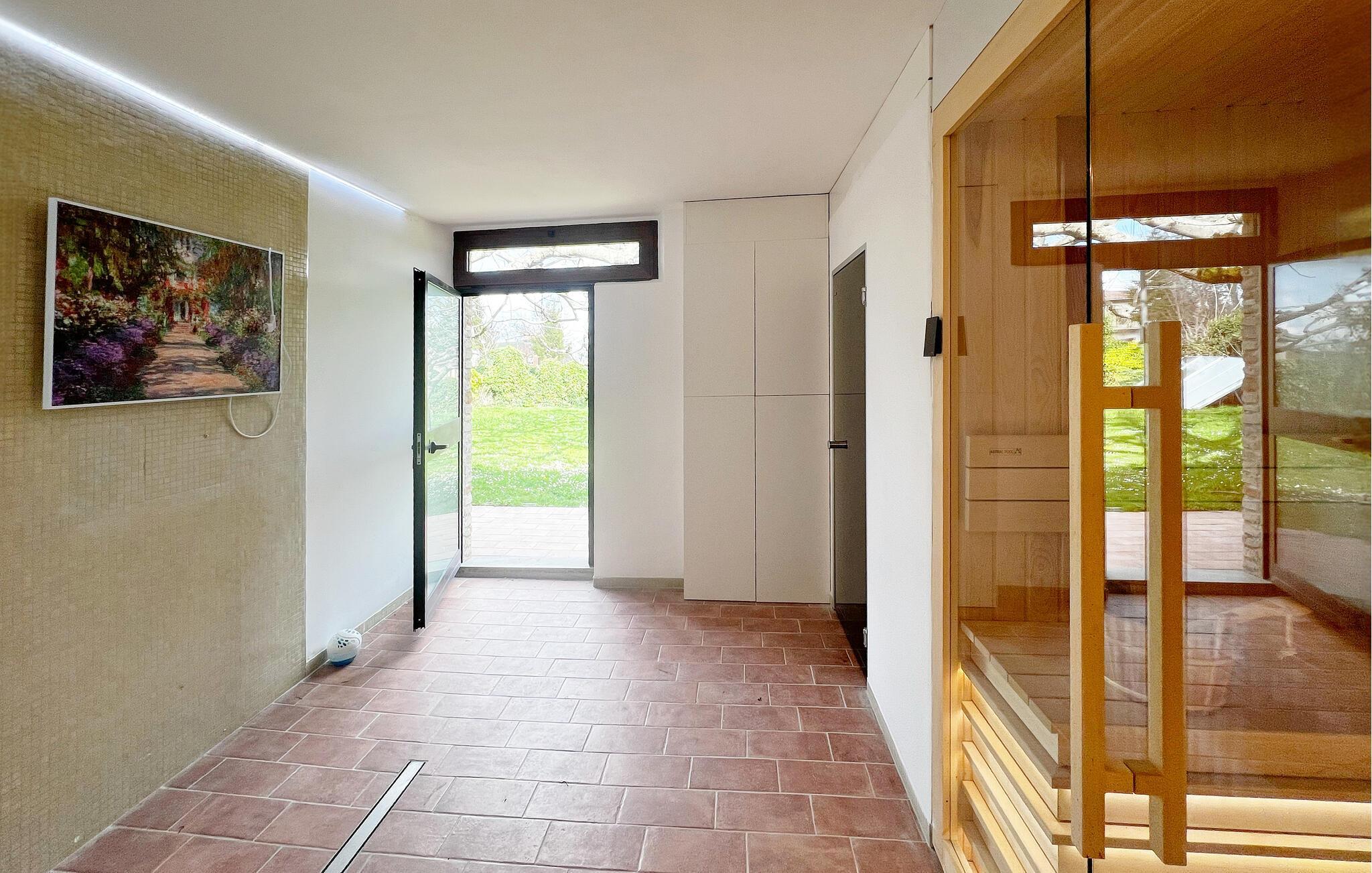 Freuen Sie sich auf einen herrlichen Urlaub in dieser Ferienwohnung mit Zugang zu Pool und Sauna.