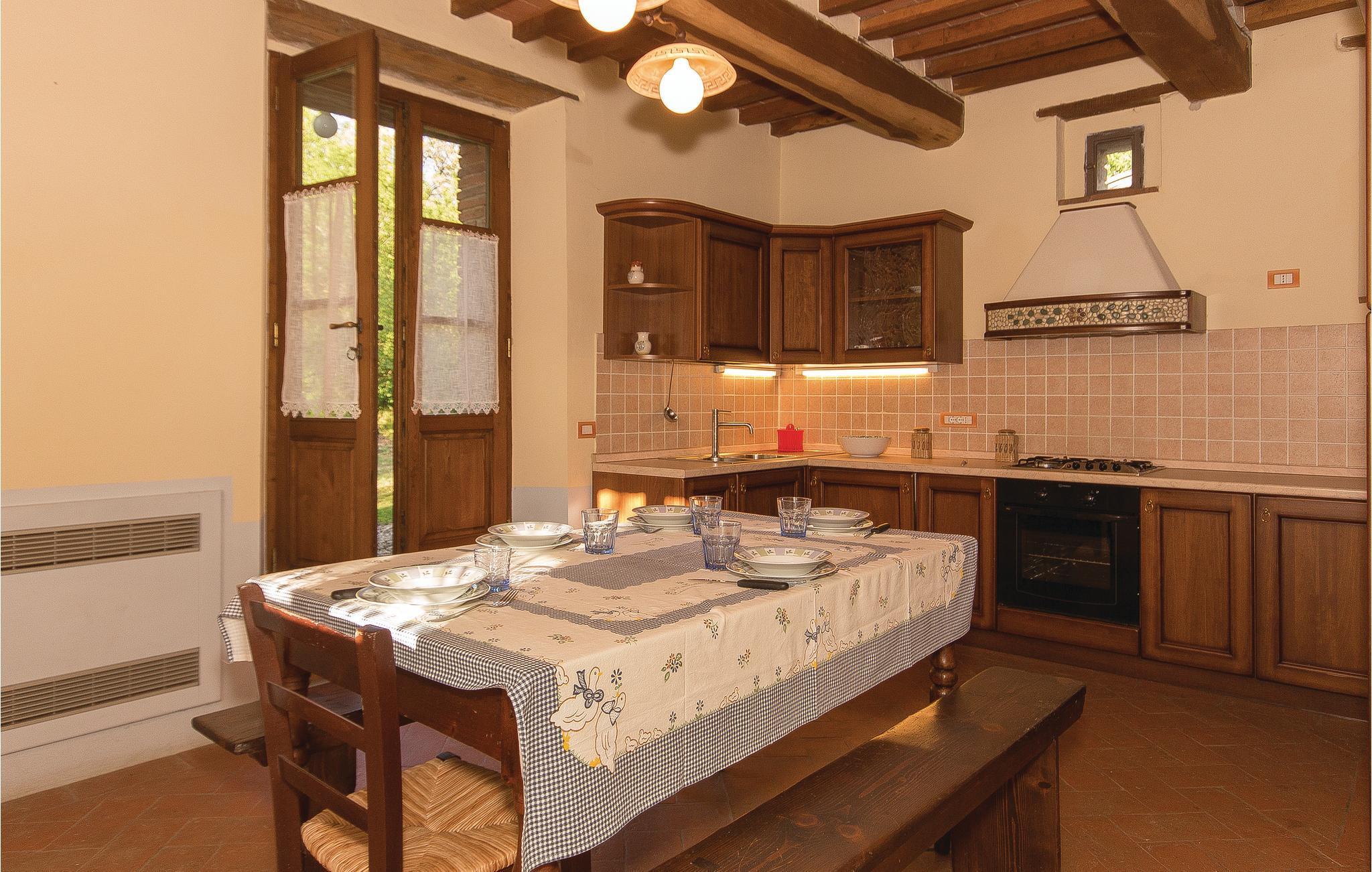 Nur 3 km von Montepulciano entfernt liegt dieses sympathische Ferienhaus in einem idyllischen Seitental. Diese ehemalige mittelalterliche Mühle bietet heute über drei Ebenen großzügig Platz für Feriengäste. Von der Wohnküche und dem Kaminzimmer im EG betritt man direkt den davor liegenden Gartensitzplatz. Im 1.Stock, der von der Seite des ehemaligen Mühlbeckens her direkt zu betreten ist, gibt es eine zweite zentrale Küche sowie Schlafräume mit Bad, ein weiteres Schlafzimmer mit Bad im 2. Stock. Die Einrichtung ist funktional im rustikalen toskanischen Stil. Kinderbett auf Anfrage. Das Haus ist benachbart mit ITS971. Nahe Ausflugsziele: Pienza (15 km) und das malerische Orcia-Tal, die warmen Thermen von Bagno Vignoni (25 km). Im mittelalterlichen Hügelstädtchen Montepulciano finden Sie Trattorien, Bars und Geschäfte aller Art. Unasphaltierte Zufahrt