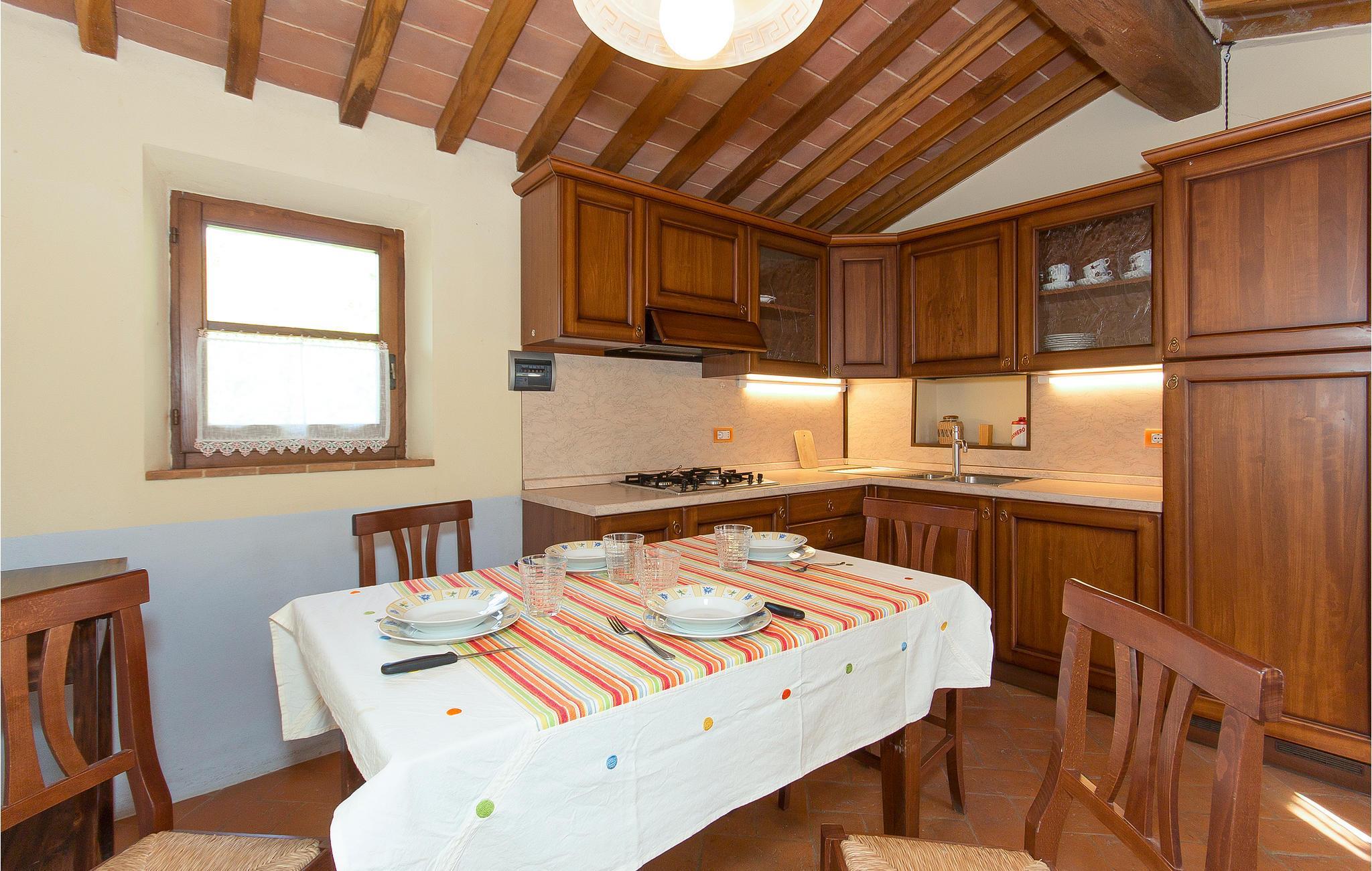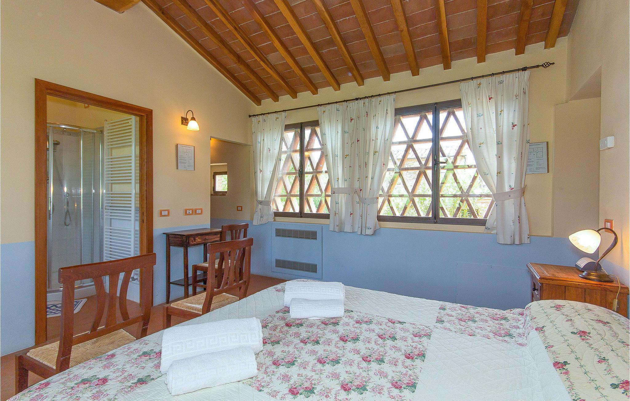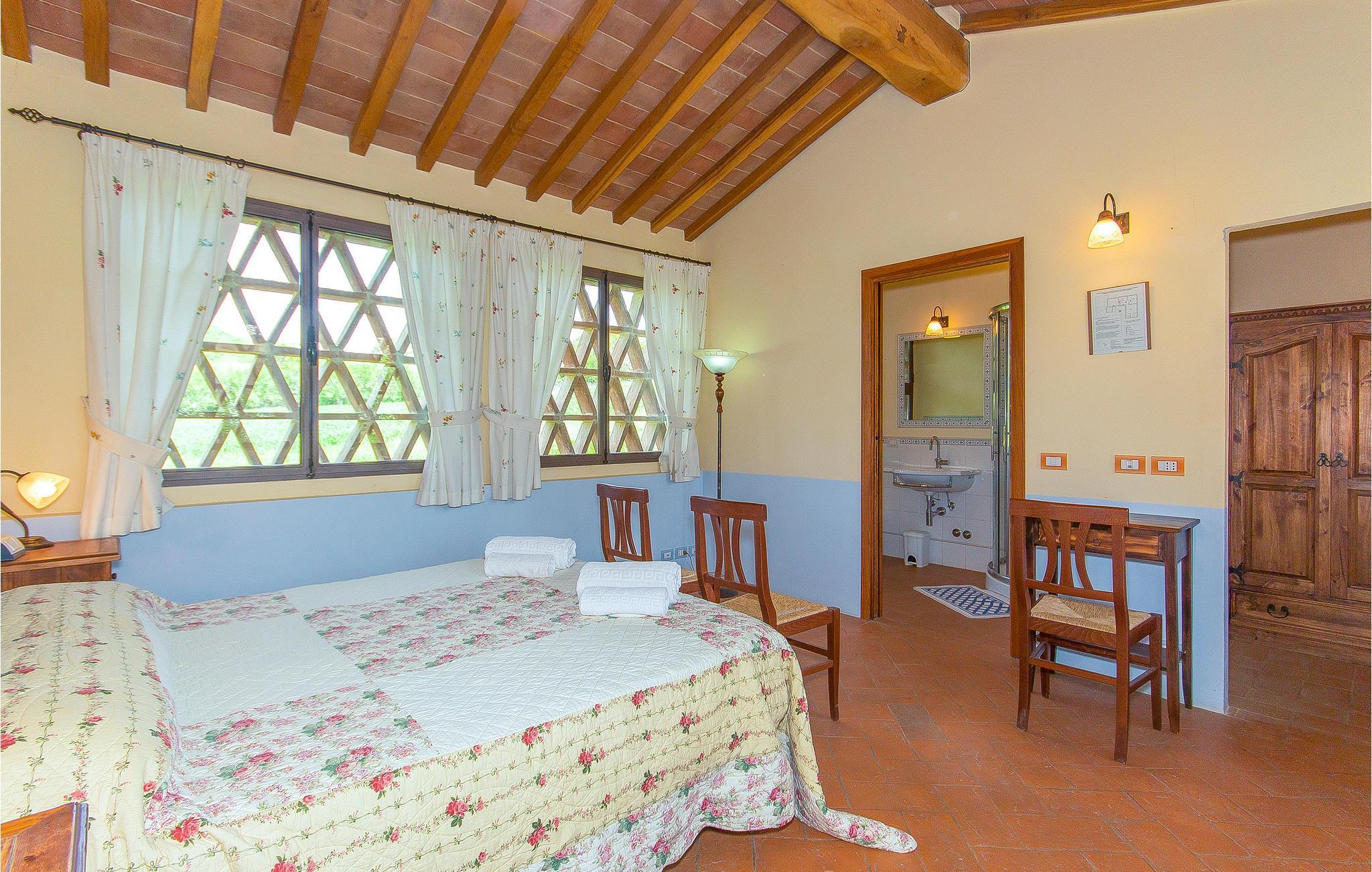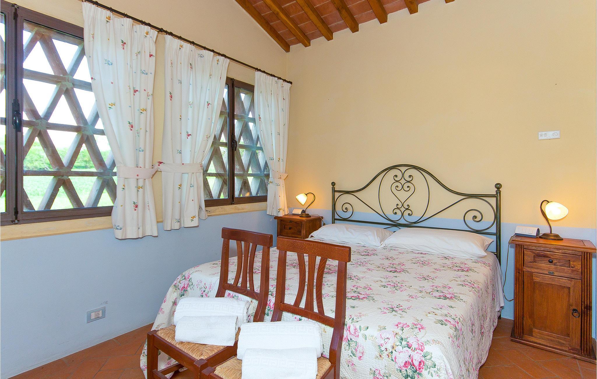 In einem idyllischen Seitental, nur 3 km vom mittelalterlichen Hügelstädtchen Montepulciano entfernt, liegt dieses sympathische Ferienhaus, ein ehemaliger Heuschober, der geschmackvoll im bäuerlichen Stil eingerichtet wurde. Vor dem Feriendomizil ist ein offenes Naturgrundstück mit Barbecue. Ruhige Lage; Kinderbett auf Anfrage. Das Haus ist benachbart mit ITS970. In der Nähe locken interessante Ausflugsziele: Pienza (15 km) und das malerische Orcia-Tal, die warmen Thermen von Bagno Vignoni (25 km). Im schönen Städtchen Montepulciano erwarten Sie Trattorien, Bars und Geschäfte aller Art. Unasphaltierte Zufahrtsstraße.