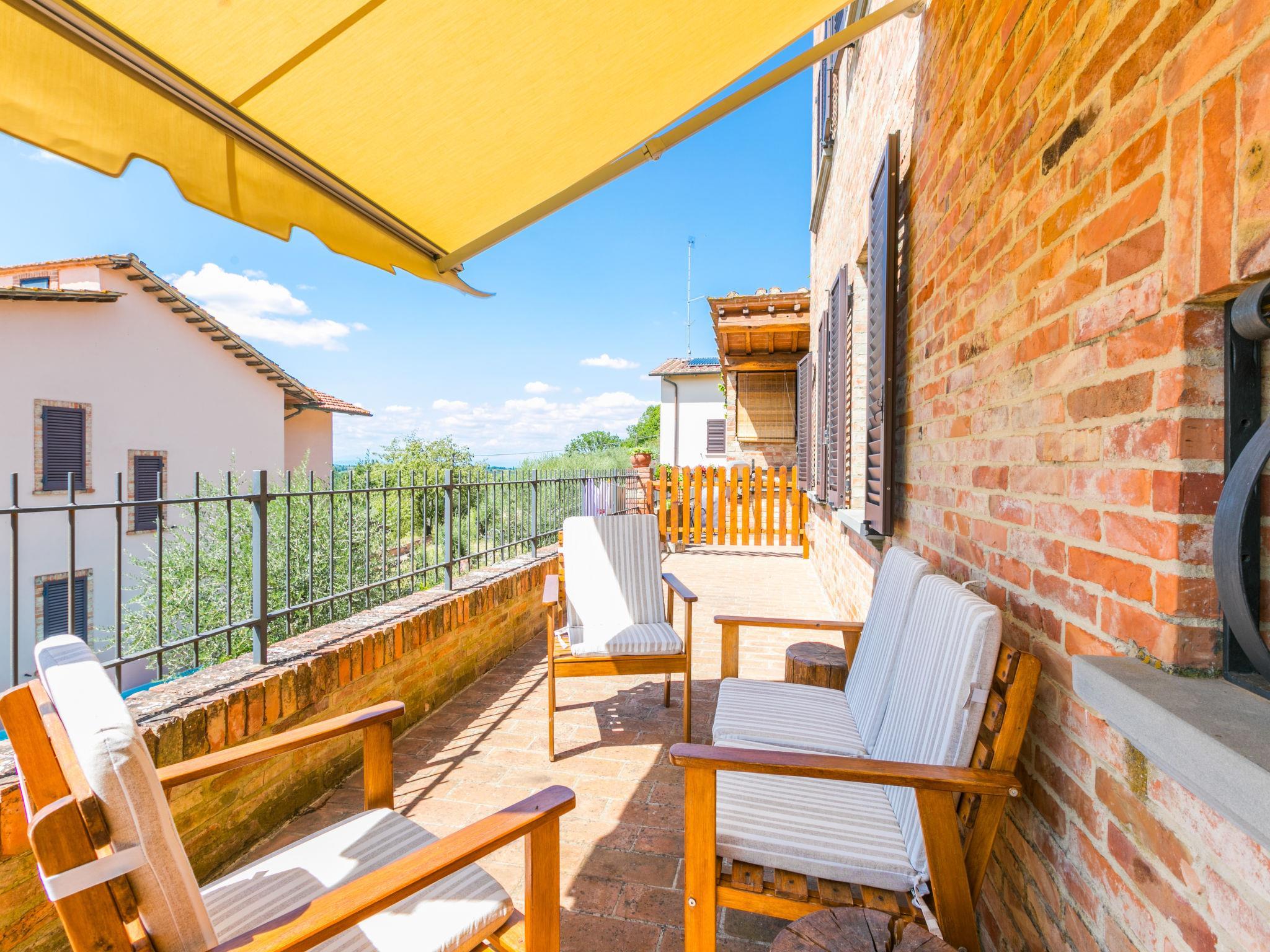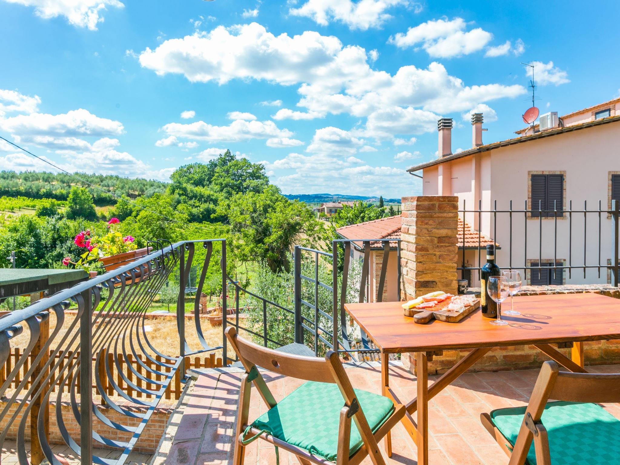 Montepulciano: Modernes, komfortables Zweifamilienhaus "Le rondini". 2 Wohnungen im Ferienhaus. Im Ortsteil Cervognano, 5.2 km vom Zentrum von Montepulciano, 16 km vom Zentrum von Chiusi, erhöhte Lage in einem Wohnquartier. Zur Mitbenutzung: Grundstück (eingezäunt), terrassierter Garten, Parkplatz (überdacht) beim Haus. Einkaufsgeschäft 5 km, Lebensmittelgeschäft 5 km, Supermarkt 5 km, Restaurant 50 m, Bushaltestelle "Acquaviva" 2.6 km, Bahnstation "Montepulciano Scalo" 5.2 km, Hallenbad 5.2 km, Thermalbad "Chianciano Terme" 16 km. Nahe gelegene Sehenswürdigkeiten: Montepulciano 5 km, Pienza 20 km, Cortona 26 km, Montalcino 41 km, Siena 70 km. Bekannte Seen in der Umgebung sind gut erreichbar: Montepulciano 9 km, Trasimeno 20 km. Bitte beachten: Fahrzeug empfohlen. Babyausstattung (inkl.). Objekt geeignet für 2 Erwachsene + 1 Kind. Der Besitzer wohnt im selben Haus. Eigentümer hat einen Hund.