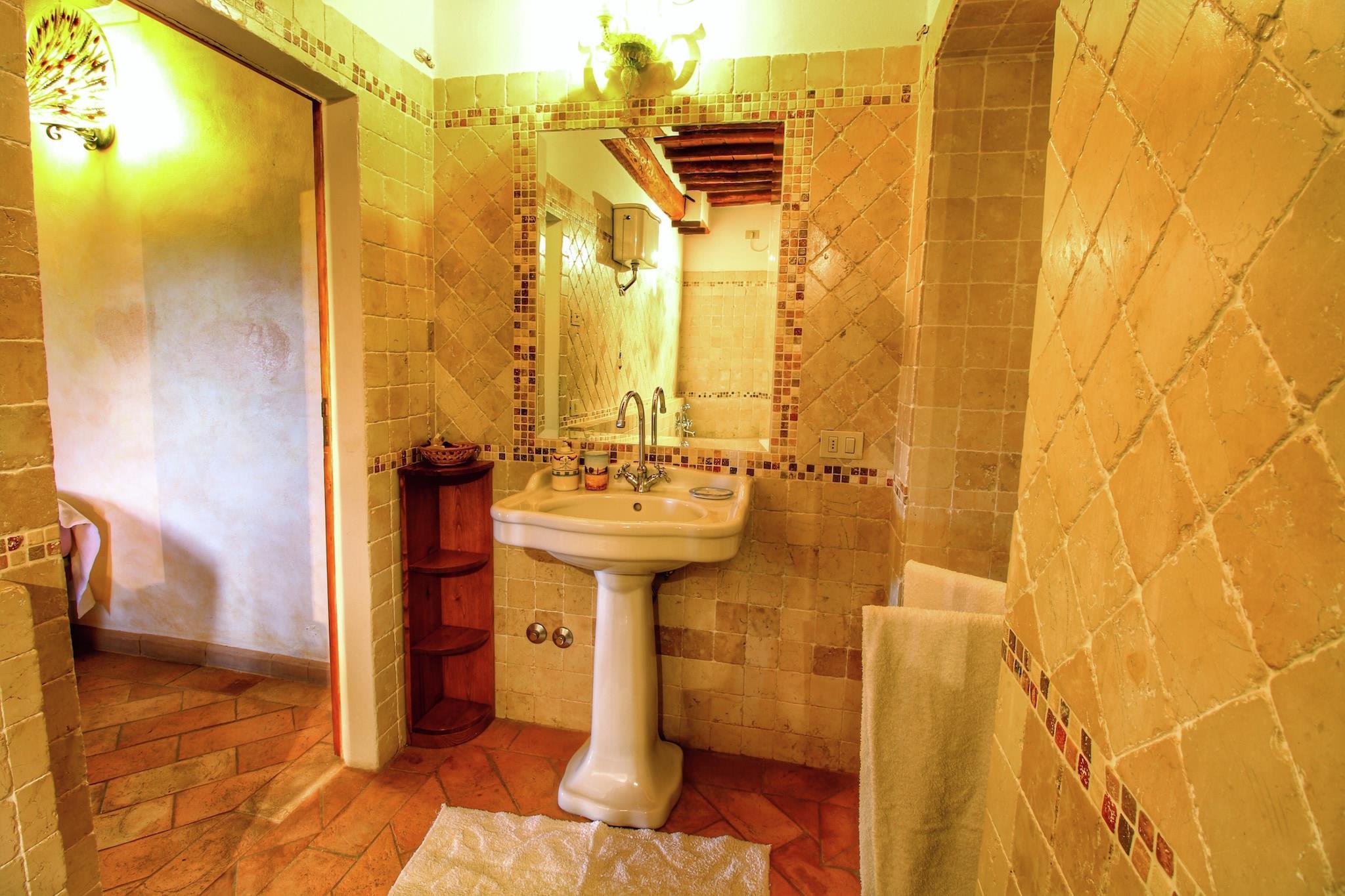 Diese luxuriöse Mehrfamilienvilla in Valardegna bietet großzügige Räumlichkeiten im Gäste- und Haupthaus - ideal für Familien, Freunde oder Mehrgenerationenreisen. Die Schlafzimmer im Erdgeschoss (darunter Doppel-, Einzel- und Etagenbetten) verfügen jeweils über ein eigenes Bad mit Dusche oder Whirlpool. Im ersten Stock befinden sich ein Esszimmer mit Kamin, eine Küche mit Espresso- und Filterkaffeemaschine sowie ein weiteres Schlafzimmer mit eigenem Bad. Das Gästehaus bietet zusätzlichen Wohnraum mit zwei Lounges (beide mit Kamin), einem Esszimmer, einer Küche und drei Schlafzimmern, jeweils mit eigenem Bad. Heizung, Klimaanlage, WLAN und die Möglichkeit zur Haustierhaltung sorgen für Komfort für alle. Betreten Sie Ihren privaten Garten mit eleganten Möbeln, Sonnenliegen und Grill und entspannen Sie in Ihrem eigenen beheizten Pool (12 x 8 m, geöffnet von Mai bis September). Die ruhige Lage, ausreichend Parkplätze und mehrere Terrassen schaffen die ideale Kulisse für Entspannung und Mahlzeiten im Freien mit Ihren Lieben - die Toskana von ihrer schönsten Seite. Diese Villa liegt knapp einen Kilometer vom atemberaubenden mittelalterlichen Zentrum von Montepulciano entfernt und bringt Sie in die Nähe von Sehenswürdigkeiten wie dem Dom aus dem 15. Jahrhundert, der mit einem Triptychon von Taddeo di Bartolo geschmückt ist, der eleganten Piazza Grande mit ihrem hoch aufragenden Turm des Palazzo Comunale, der einen Panoramablick auf die Hügel bietet, und dem perfekten Renaissance-Juwel, der Kirche San Biagio aus dem 16. Jahrhundert.