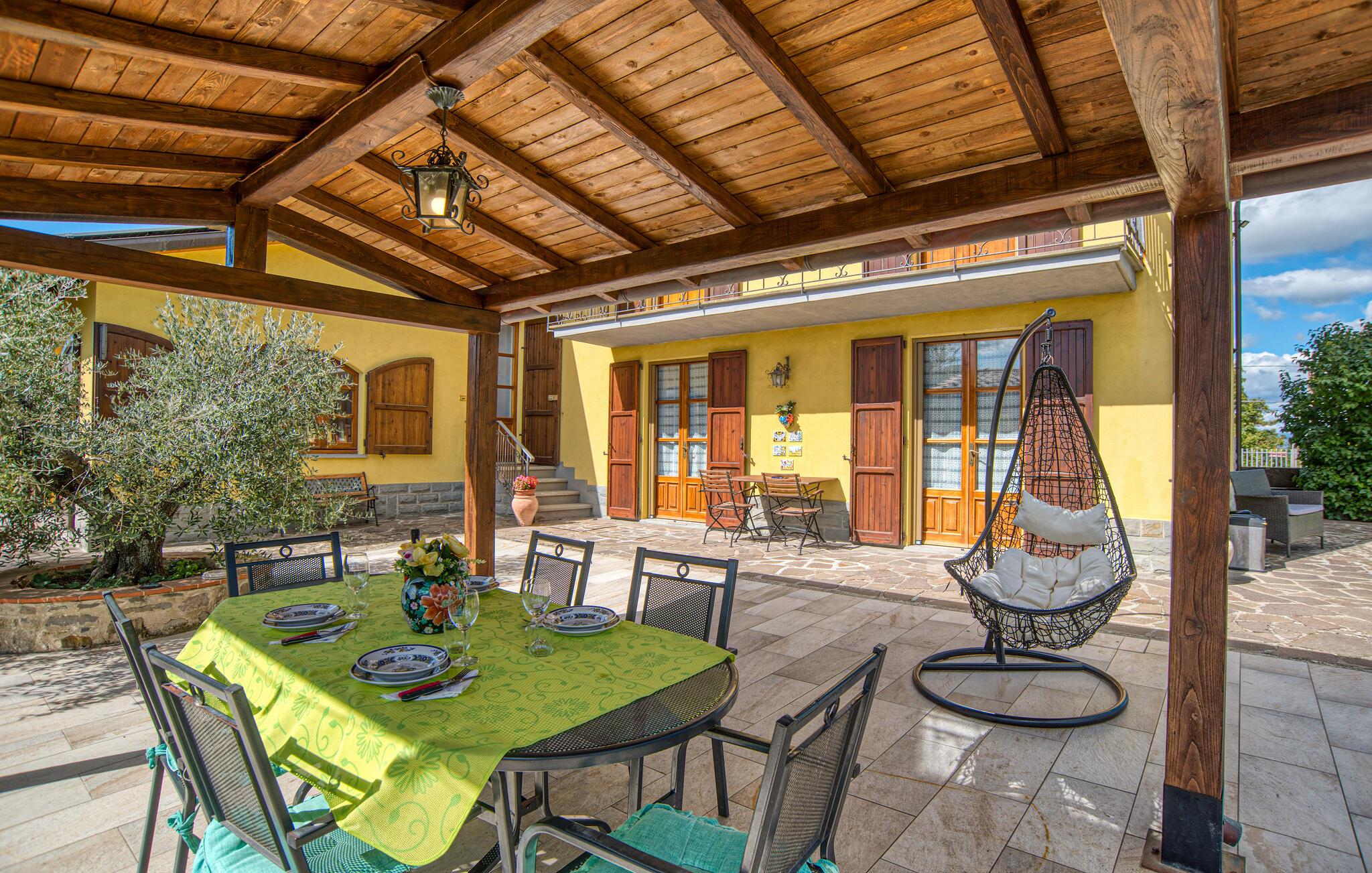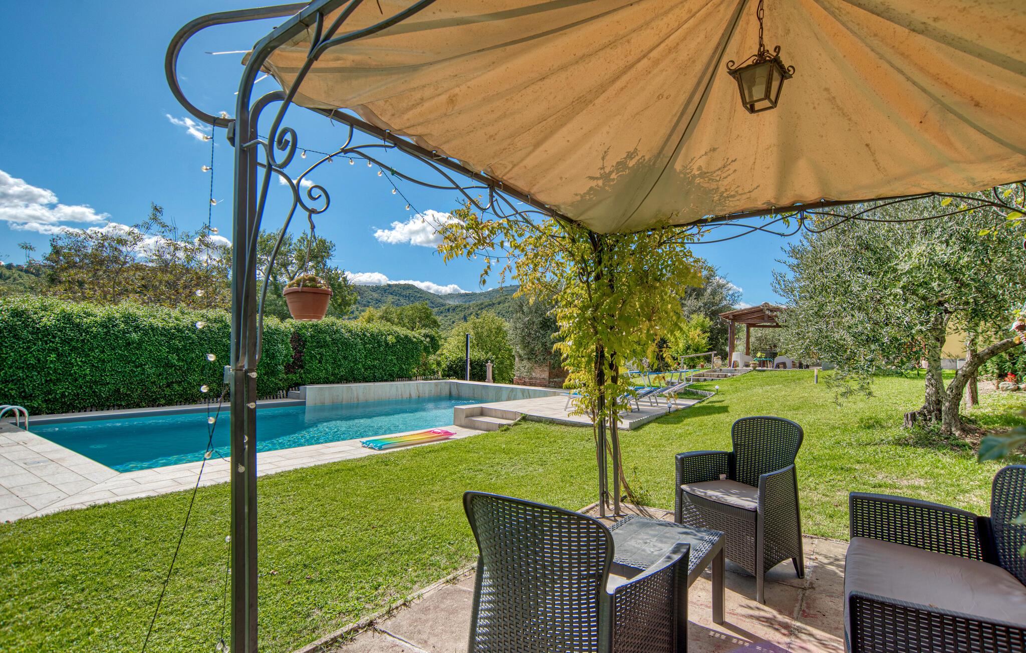 Etwa 3 km von Monterchi liegt dieses freundliche Ferienhaus auf einer kleinen Anhöhe, mit malerischem Rundumblick. Das Ferienhaus hat eine große Wohnküche mit offenem Kamin im Erdgeschoss, sowie weitere großzügige Wohnbereiche, alle mit Ausgang auf die Terrassen. Die Schlafräume liegen im 1. Stock und, besonders romantisch, ist das große Schlafzimmer im „Turmzimmer“. Auf dem weitläufigen Grundstück steht Ihnen der Poolbereich mit Liegestühlen exklusiv zur Verfügung; außerdem überdachte Terrasse mit Barbecue, Pizzaofen; Ping-Pong, Bocce. Die Lage ist ruhig, geeignet zum Entspannen, für Wanderungen und zum Biken; von hier kann man gut die vielen netten toskanischen und umbrischen Städtchen und Städte der Umgebung erkunden: Monterchi mit seiner berühmten Madonna del Parto (4 km), die malerische Hügelstadt Anghiari (10 km). Im Tibertal: Sansepolcro und Città di Castello, jeweils mit großem Markt, Pinakothek und reichem kulturellem Angebot (15 km). Gefallen wird Ihnen auch Citerna (5 km) mit dem originellen mittelalterlichen Rundweg in der Stadtmauer und einzigartigem Talblick. Überall hier können Sie in den verschiedenen kleinen Pizzerien und Restaurants die lokale Küche genießen.Arezzo 35 km, Perugia 65 km, Monterchi (3 km): Sonntags Markt.