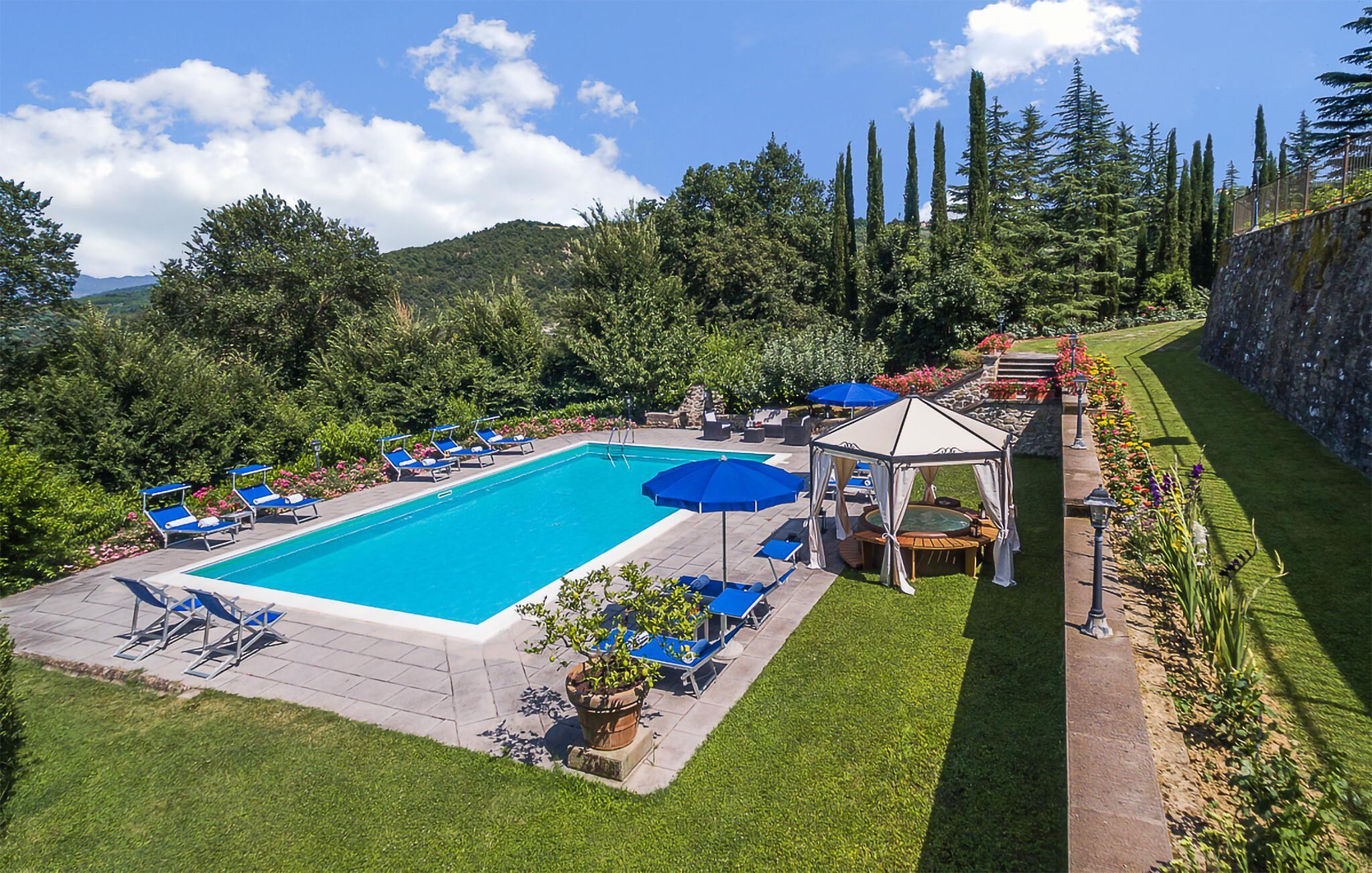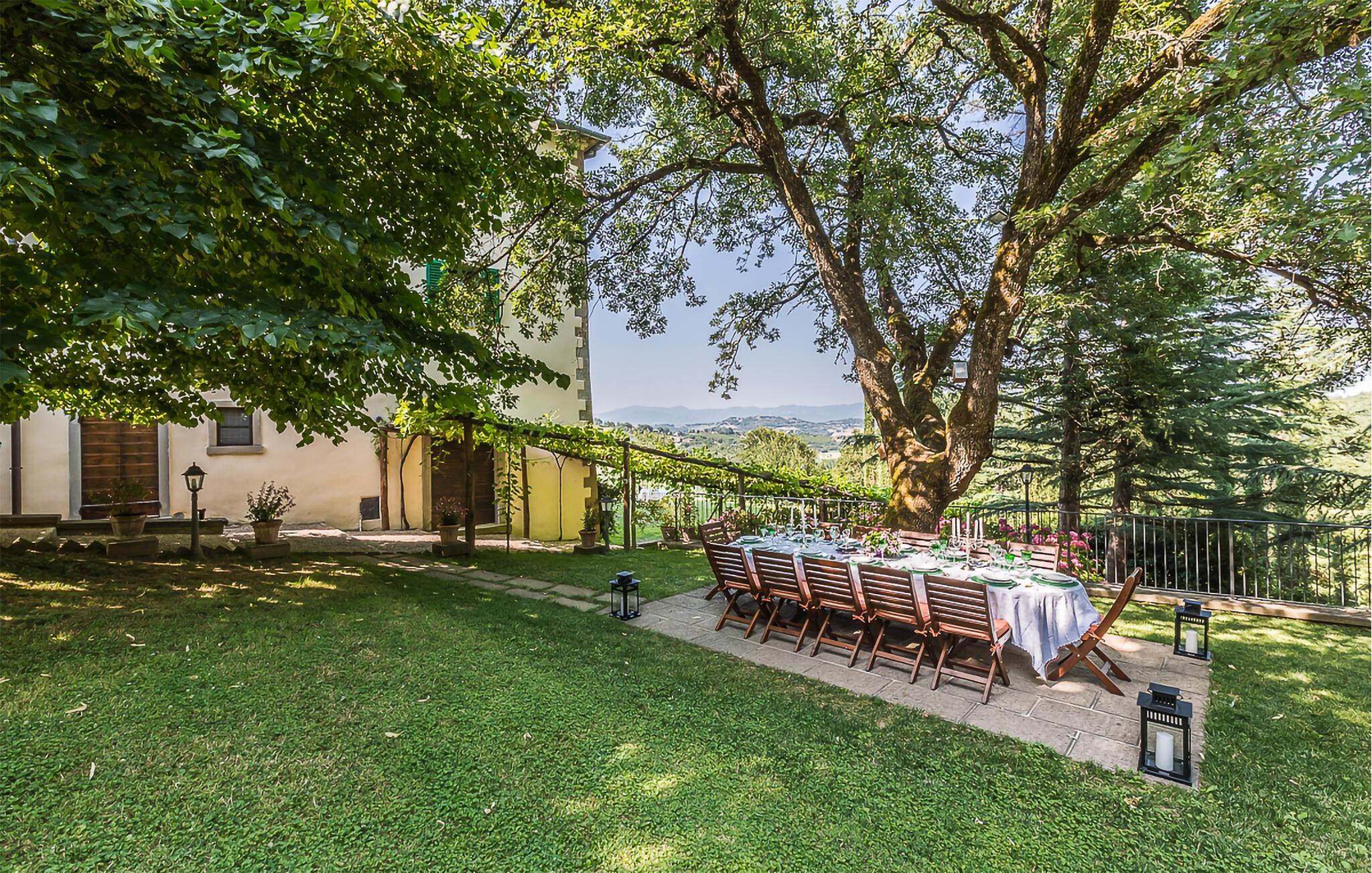 Dieses eindrucksvolle Anwesen in Monterchi bietet Ihnen ein einmaliges Urlaubserlebnis. Gewölbe- und Stuckdecken, kunstvolle Deckenmalereien und eine hochwertige, klassische Einrichtung machen jeden Raum zu einem kleinen Kunstwerk. Der wunderschöne Garten mit seinen Terrassen ist eine grüne Oase, die Sie zum Entspannen einlädt. Genießen Sie sonnige Stunden am Pool, ein erfrischendes Bad oder ein stilvolles Abendessen im Freien. Auf Anfrage und gegen eine Gebühr können Sie auch den Whirlpool nutzen und dabei die herrliche Aussicht auf die umliegende Landschaft genießen – ein schöner Ort, um Körper und Geist zu entspannen.