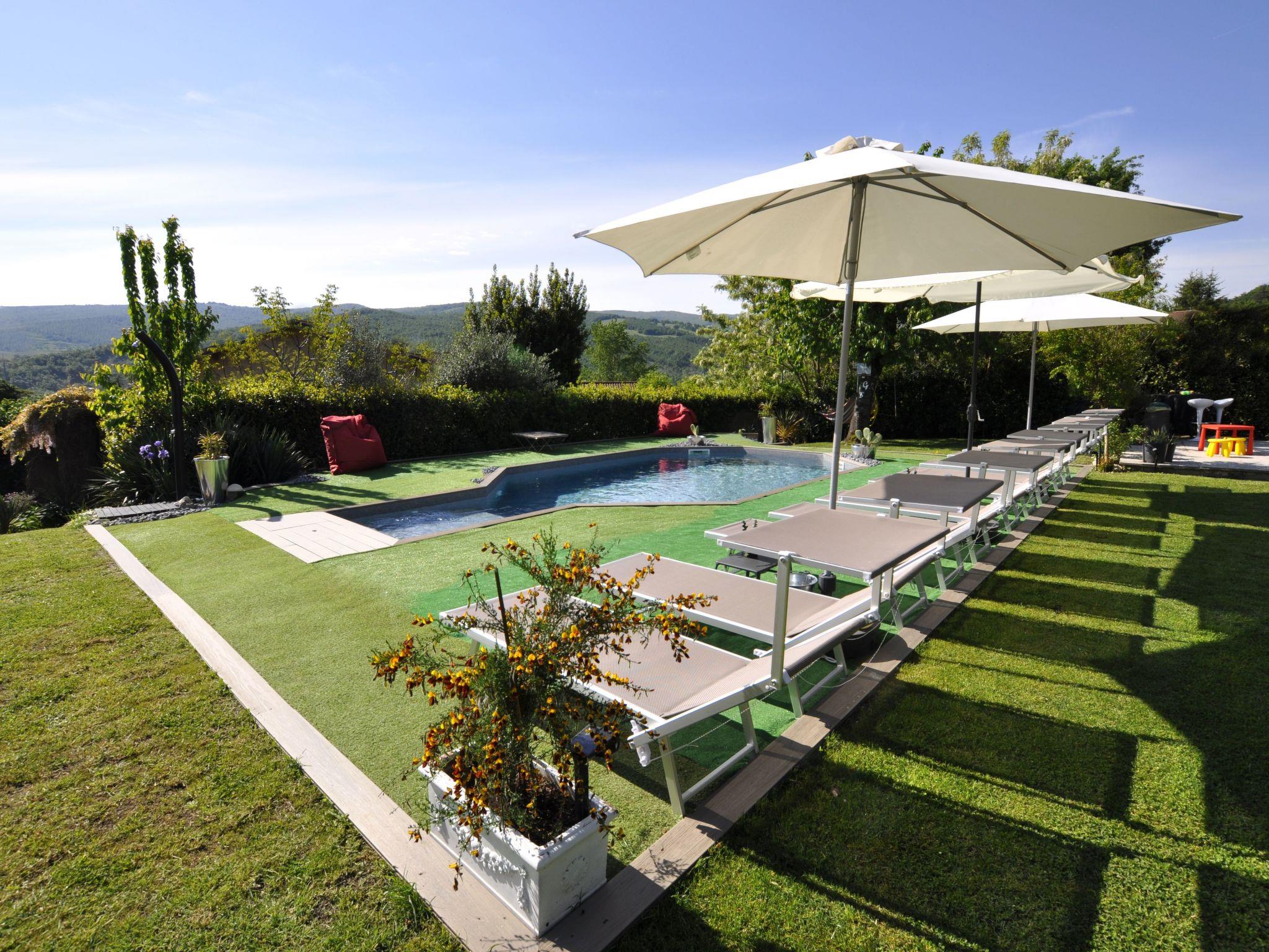 Garten und Außenbereich : Grill , Schwimmbad , Barbecue , Sonnenliegen , Liegestühle , Sonnenschirme , Tische , Stühle , Hängematten , Entspannungsbereich