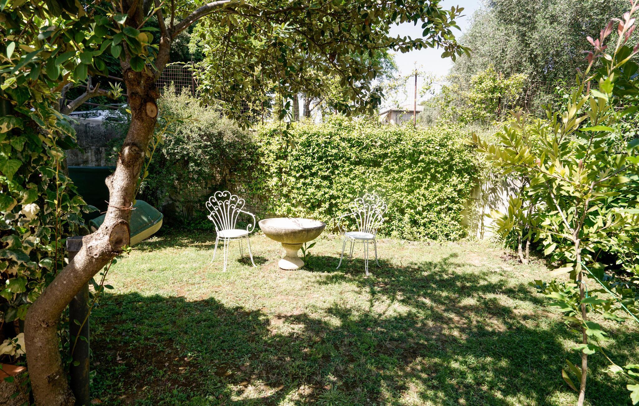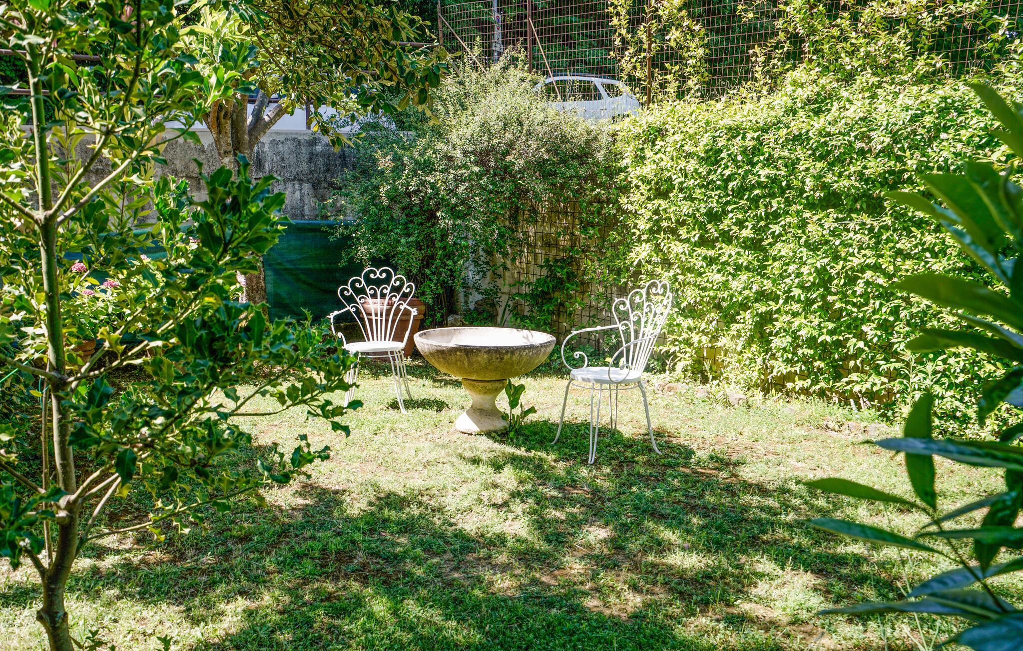 Der Garten mit mehreren Terrassen und einer Wiese lädt zum Sonnenbaden, Grillen oder einfach zum Genießen der Natur ein. Im selben Haus steht eine zweite Ferienwohnung zur Verfügung, ideal für Reisen mit Freunden oder Familie.