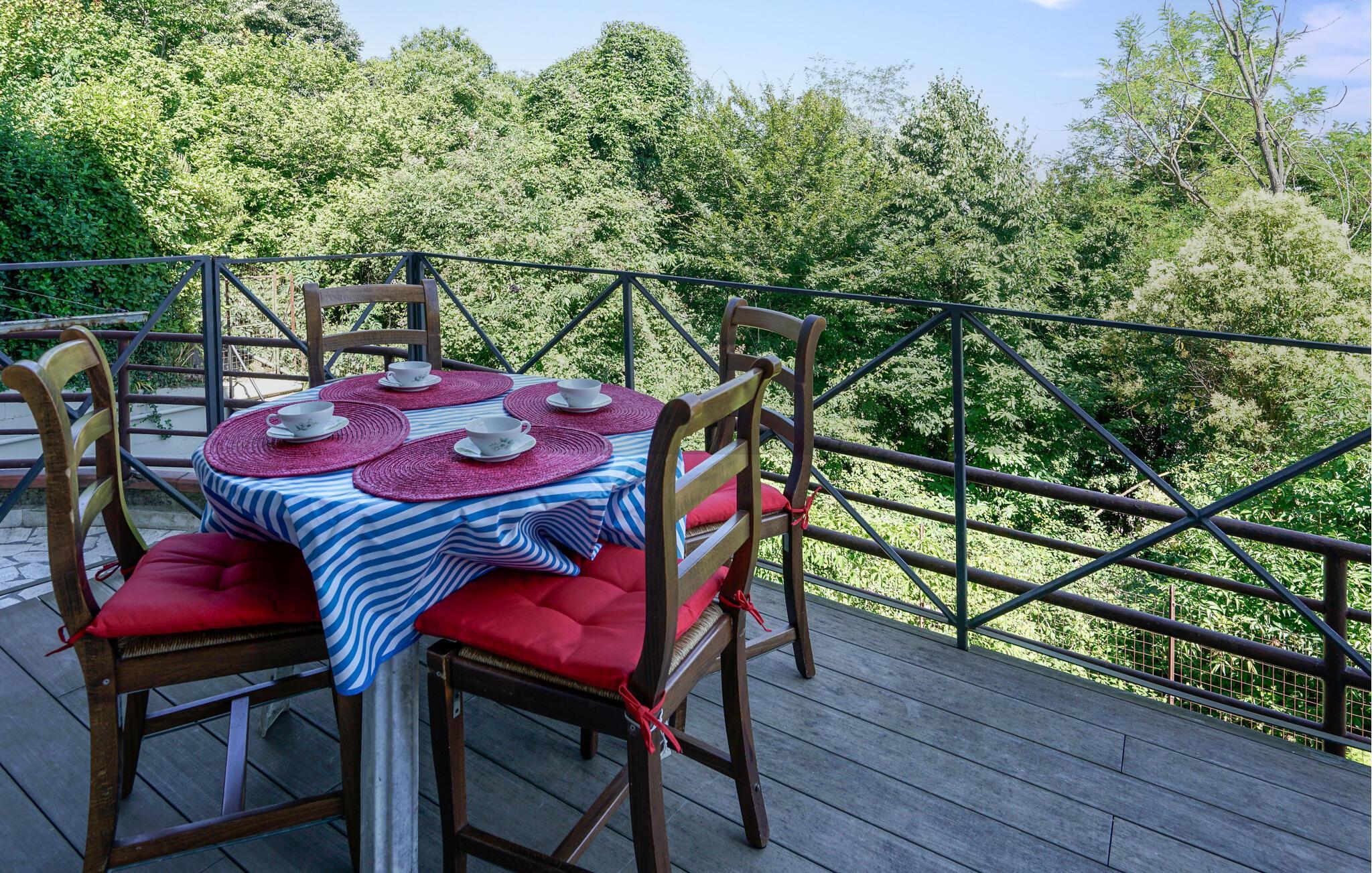 Der Garten mit mehreren Terrassen und einer Wiese lädt zum Sonnenbaden, Grillen oder einfach zum Genießen der Natur ein. Im selben Haus steht eine zweite Ferienwohnung zur Verfügung, ideal für Reisen mit Freunden oder Familie.