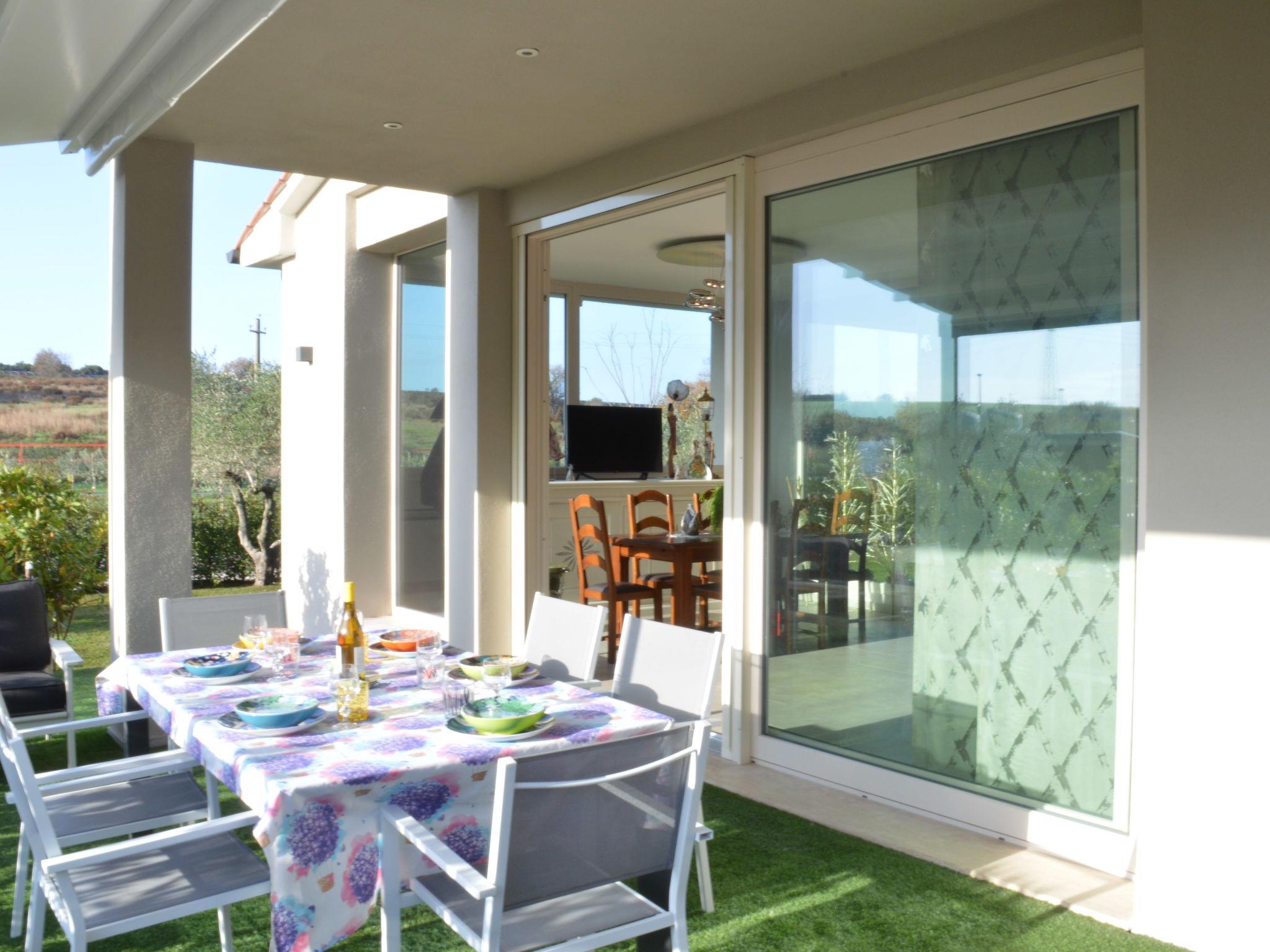 "Sweet Home", 4-Zimmer-Haus 140 m2, im Erdgeschoss. Modern und stilvoll eingerichtet: Wohn-/Esszimmer mit Panoramafenster mit Esstisch, TV und Klimaanlage. Ausgang zur Veranda. 1 Doppelzimmer mit Klimaanlage. 1 Doppelzimmer mit Klimaanlage. 1 Zimmer mit 1 x 1 Etagenbetten, Klimaanlage. Offene Küche (Backofen, Geschirrspüler, 4 Induktionskochplatten, Toaster, Mikrowelle, elektrische Kaffeemaschine). 2 Duschen/Bidet/WC. Klimaanlage. Terrassenmöbel, Wintergarten. Zur Verfügung: Waschmaschine. Internet (WLAN, gratis). Parkplatz (2 Autos). Bitte beachten: Feuerlöscher. IT050020C2BU7Q6WZ8