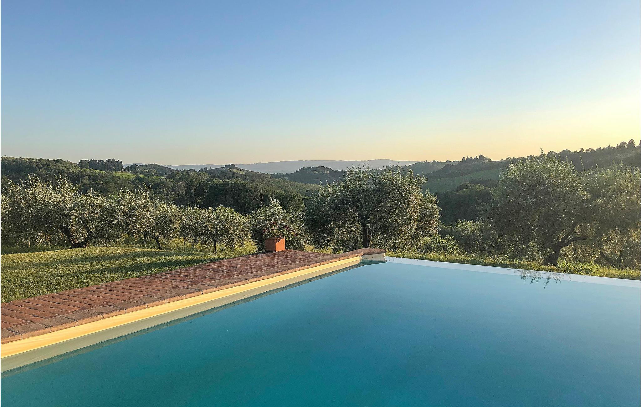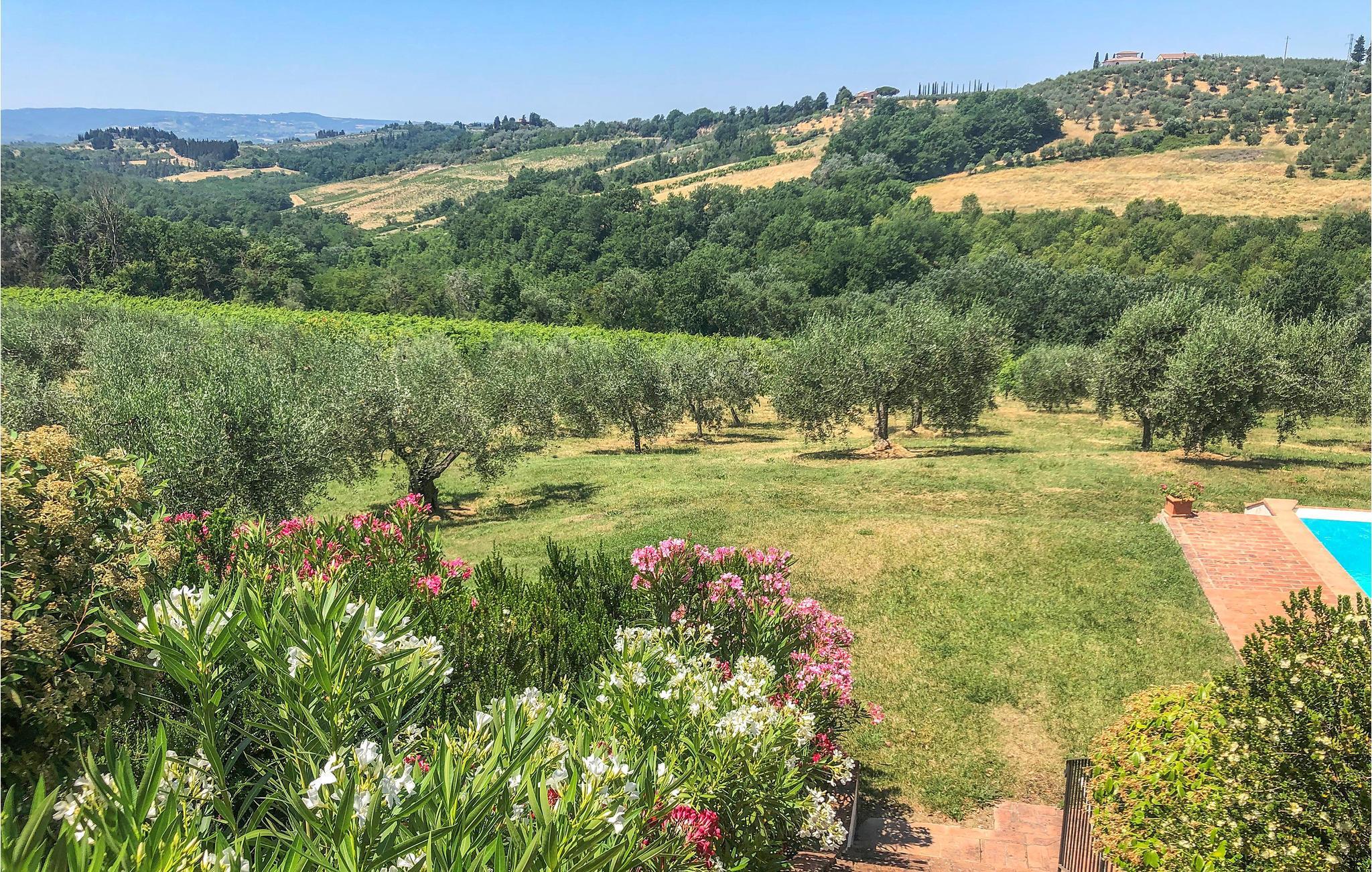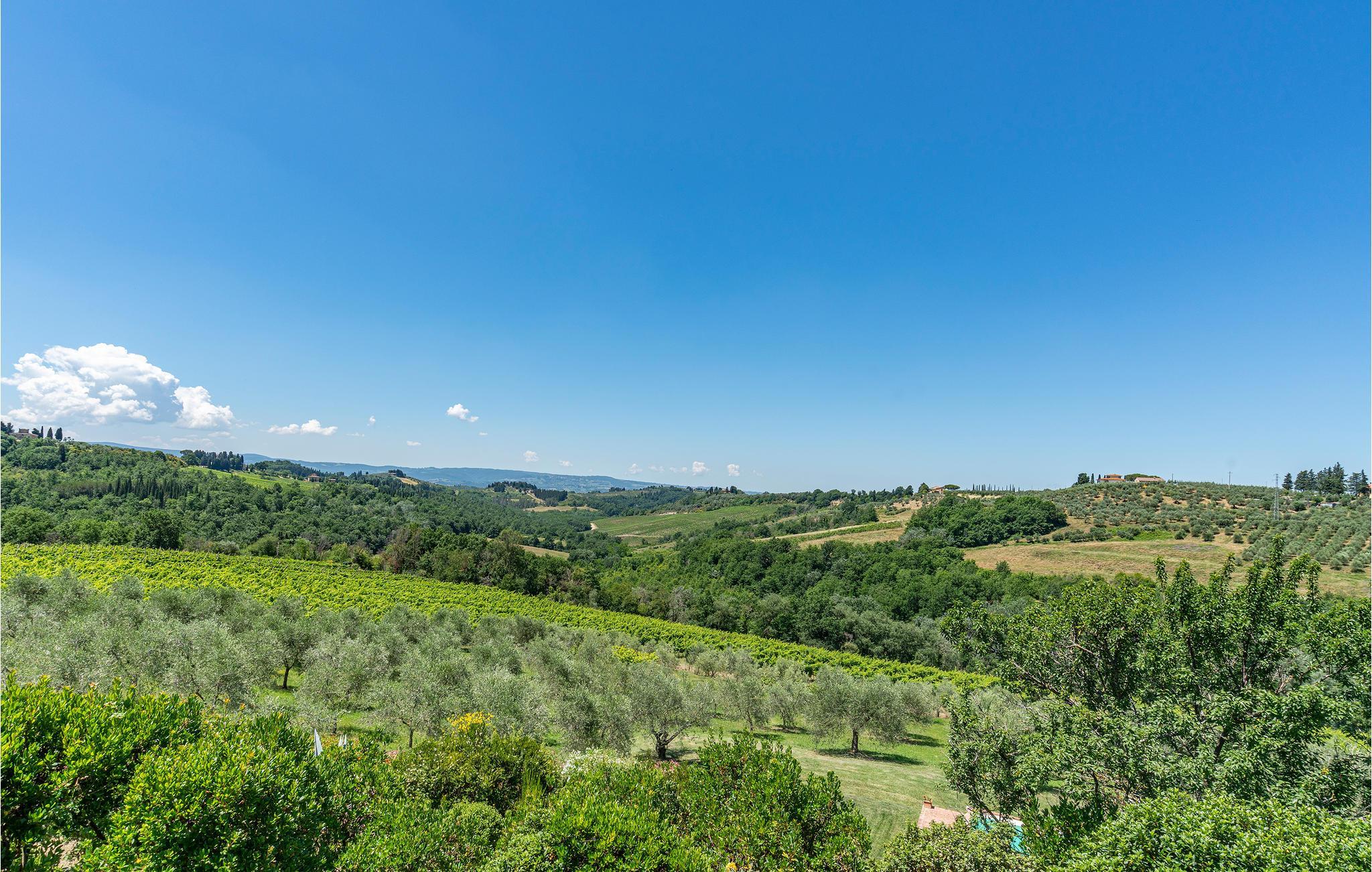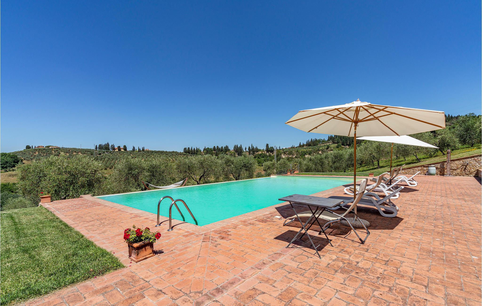 Dieses schöne, unabhängige, dreistöckige Ferienhaus auf den grünen Hügeln des Florentiner Chianti, nur 2 km von Fiano entfernt, ist durch die sorgfältige Renovierung eines alten Heuschobers entstanden. Die große und schöne Unterkunft befindet sich auf einem Hügel mit Blick auf die wunderschöne umliegende Landschaft. Der Panorama-Infinity-Pool mit Terrakotta-Bereich, Sonnenschirmen und Sonnenliegen, umgeben vom Grün des Gartens, ist der ideale Ort für diejenigen, die einen Aufenthalt in Kontakt mit der Natur verbringen möchten und die unzähligen künstlerischen Schätze der Umgebung entdecken möchten. Der gepflegte Garten bietet viel Platz zum Entspannen und Spielen. Fußballplatz am Rande des Gartens.