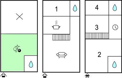Badezimmer (nr. 3) - WC. Warmes und kaltes Wasser. Dusche