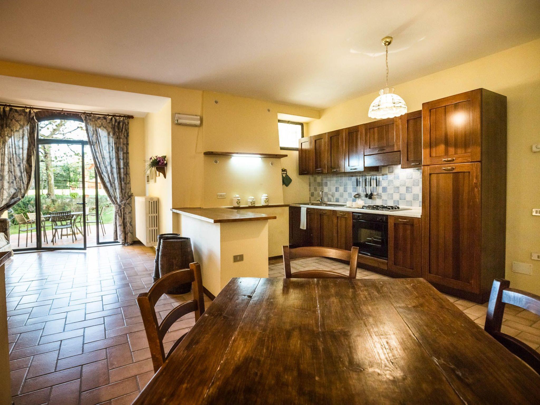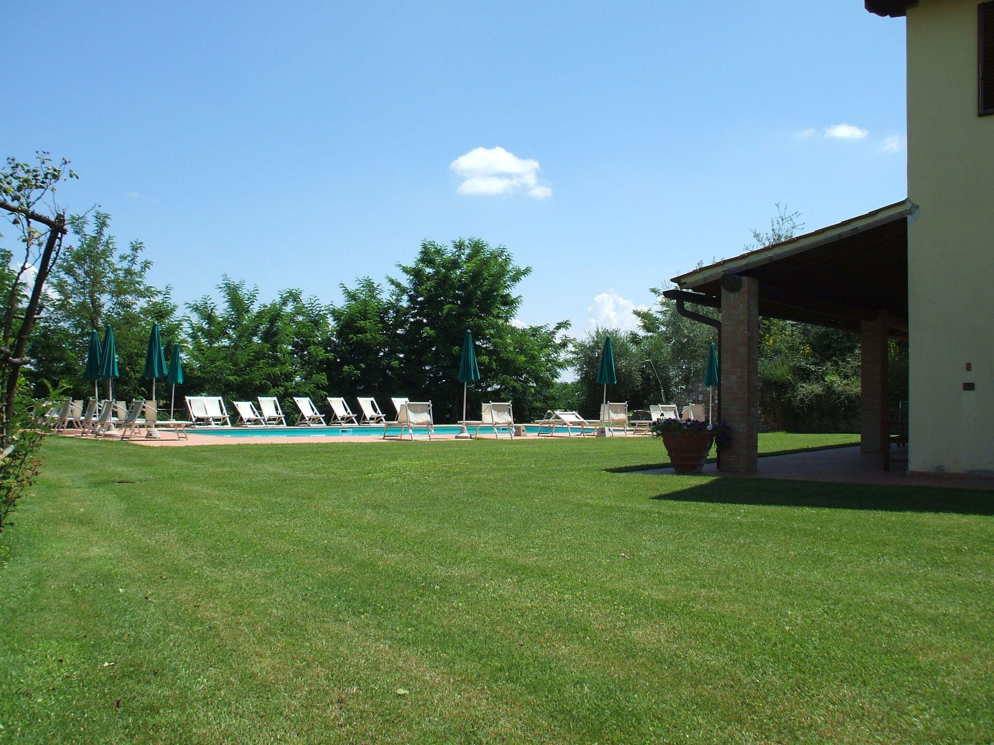 Die Wohnung liegt inmitten der Ruhe des Gartens, umgeben von Rasenflächen mit Rosen und Olivenbäumen, und bietet einen schönen Blick auf die Hügel. Nur wenige Meter entfernt befindet sich das Schwimmbad, das für die Gäste reserviert und mit Liegestühlen und Sonnenschirmen ausgestattet ist. Er ist ideal für die Freizeitgestaltung und ist von Mai bis Ende September geöffnet, auch für nächtliches Schwimmen bei Mondschein. Im Garten gibt es einen Pavillon mit einem großen Tisch und einem Grill für gesellige Anlässe, die man mit den Gästen teilen kann. Neben dem Pool befindet sich eine große Veranda, die zum Entspannen im Schatten oder zum Tischtennis spielen einlädt.