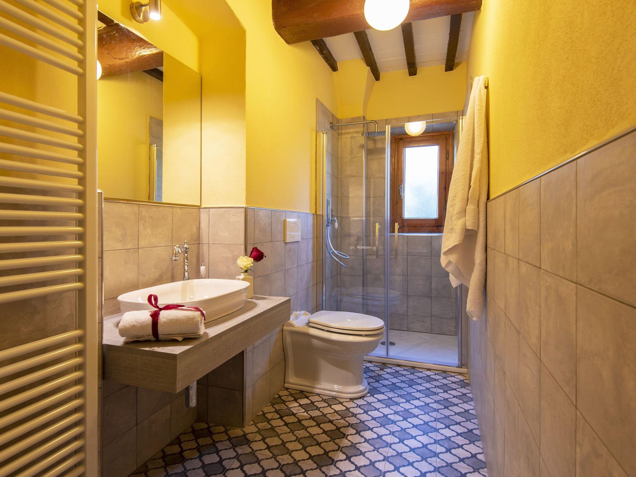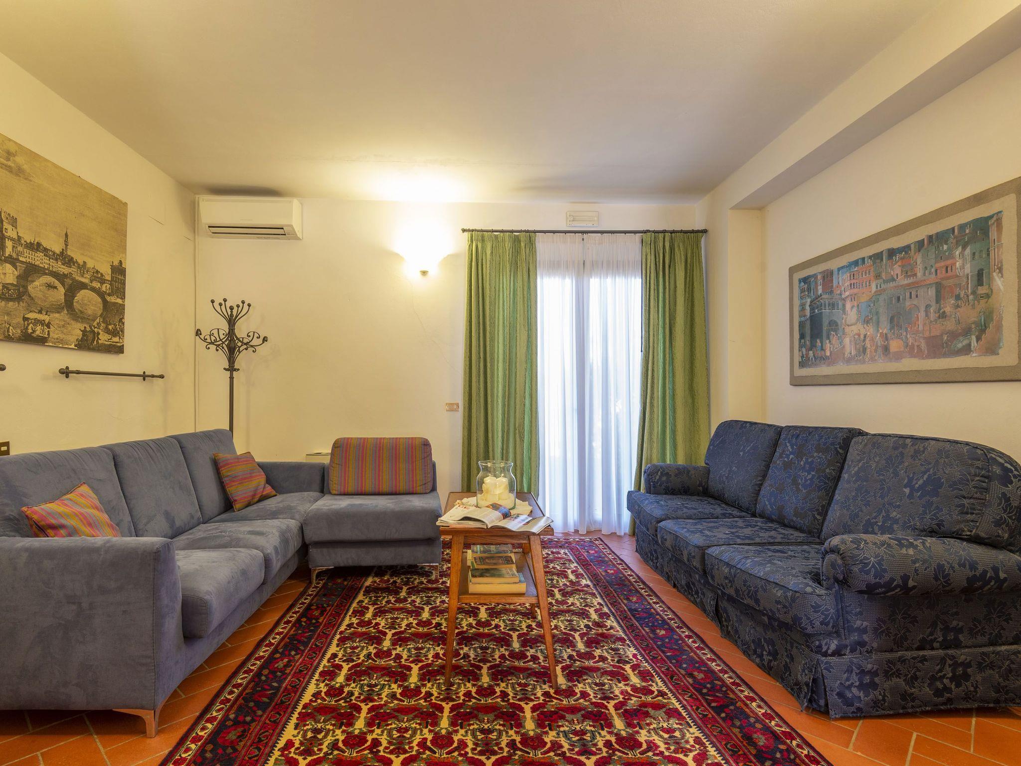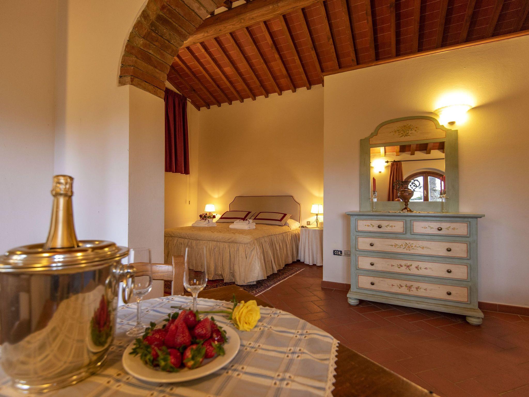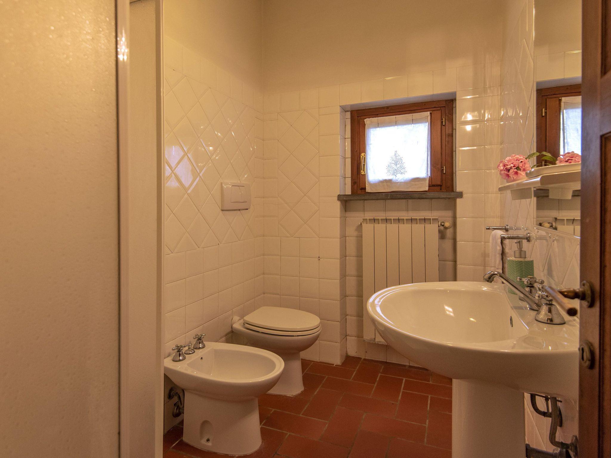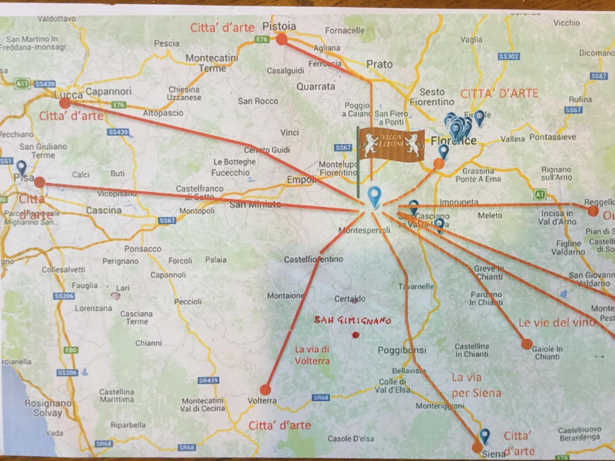 Umgeben von Olivenhainen und Weinbergen liegt die Villa für 21 Personen in der Chianti-Landschaft in Panoramalage auf einem Hügel, von dem aus sich ein herrlicher Blick auf die toskanische Landschaft bietet. Es wurde im 19. Jahrhundert als Herrenhaus eines großen landwirtschaftlichen Anwesens erbaut und befindet sich in Montespertoli, einem Ortsteil von Montegufoni, etwa auf halber Strecke zwischen Florenz und Siena, in einer sehr ruhigen und verkehrsfreien Lage. Es gibt fünf Wohnungen, von denen sich eine im zweiten Stock der Villa befindet und eine herrliche Aussicht genießt. Drei weitere Wohnungen befinden sich in einem an die Villa angrenzenden Gebäude im Erdgeschoss, im ersten und im zweiten Stock; die letzte ist ein Nebengebäude im Garten. Jede der Wohnungen verfügt über eine Wohnküche mit Satellitenfernsehen, mehrere Schlafzimmer und Bäder. Im zweiten Stock befinden sich drei Doppelzimmer und zwei Bäder mit Dusche und Bidet. Im ersten Stock gibt es zwei Doppelzimmer und ein Zweibettzimmer sowie zwei Bäder mit Dusche und Bidet. Im Erdgeschoss gibt es drei Doppelzimmer, ein Zweibettzimmer und vier Bäder mit Dusche und Bidet. Auf dieser Etage befinden sich eine große Küche mit Elektroherd, Mikrowelle, Gasherd, Kaffeemaschine, Geschirrspüler und Waschmaschine, in der im Allgemeinen für alle Mitglieder der Gruppe gekocht wird, sowie ein Esszimmer, in dem gegessen werden kann, wenn das Wetter es nicht zulässt, den großen Garten für Mahlzeiten im Freien zu nutzen. Alle Zimmer sind mit Heizung und Klimaanlage ausgestattet und jede Wohnung verfügt über einen kostenlosen Internetzugang. Das Grundstück ist von einem komplett eingezäunten Garten mit Grillplatz umgeben; es gibt zwei große Pavillons mit Tischen und Stühlen. Der Swimmingpool ist ebenfalls mit Sonnenschirmen und 10 Liegestühlen ausgestattet und ist komplett eingezäunt und durch ein Tor zugänglich, so dass er auch für Kinder sicher ist. In der Umgebung der Villa gibt es zahlreiche landschaftlich reizvolle Routen für lange Ausflüge zu Fuß oder mit dem Fahrrad durch die toskanische Hügellandschaft. In der Nähe der Villa gibt es auch Tennisplätze und zwei Reitställe. Die Villa liegt etwa 20 Kilometer vom Zentrum von Florenz entfernt und ist ein idealer Ausgangspunkt für Tagesausflüge nach Volterra, Vinci, Certaldo, San Gimignano, Siena, Lucca und Pisa. Nur 900 Meter entfernt befindet sich das Dorf Montagnana mit Post, Bank, Bar, Pizzeria und einem bekannten Restaurant, in dem man "la bistecca alla fiorentina" genießen kann.