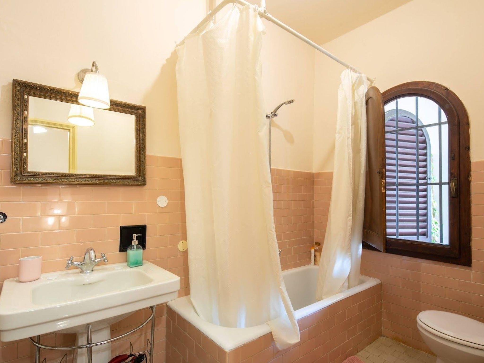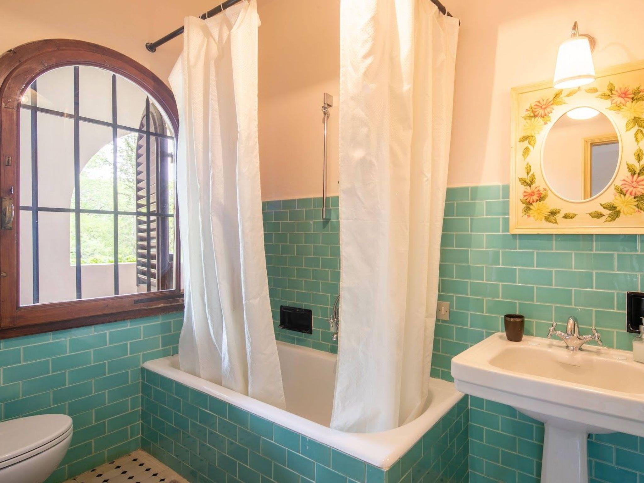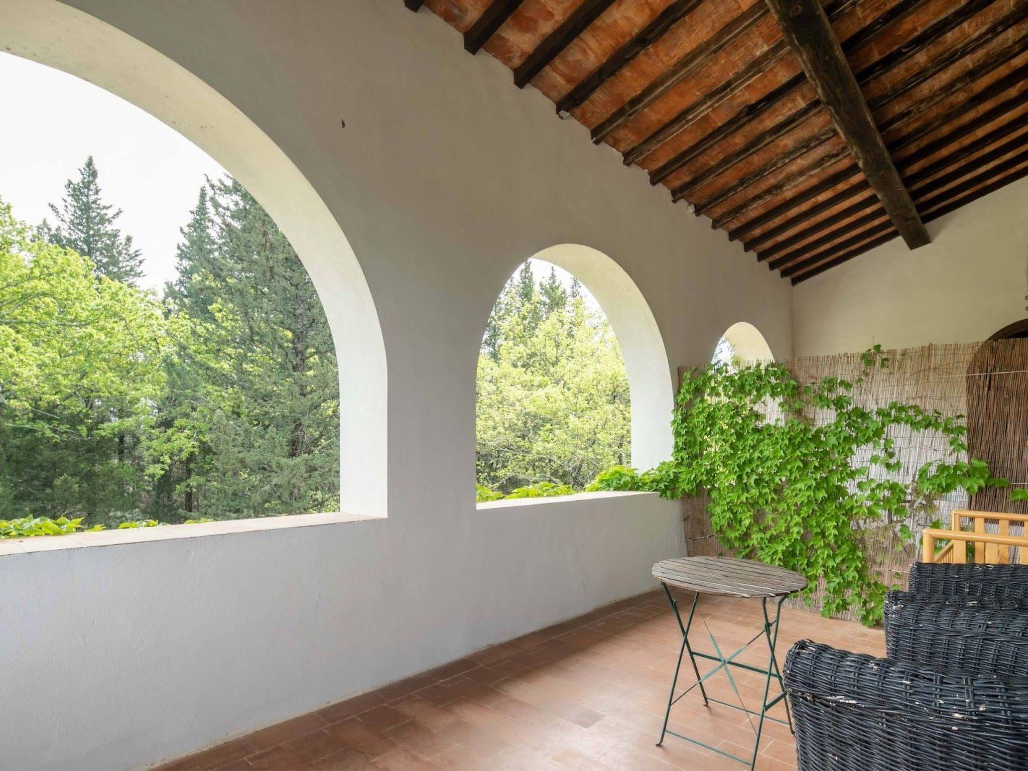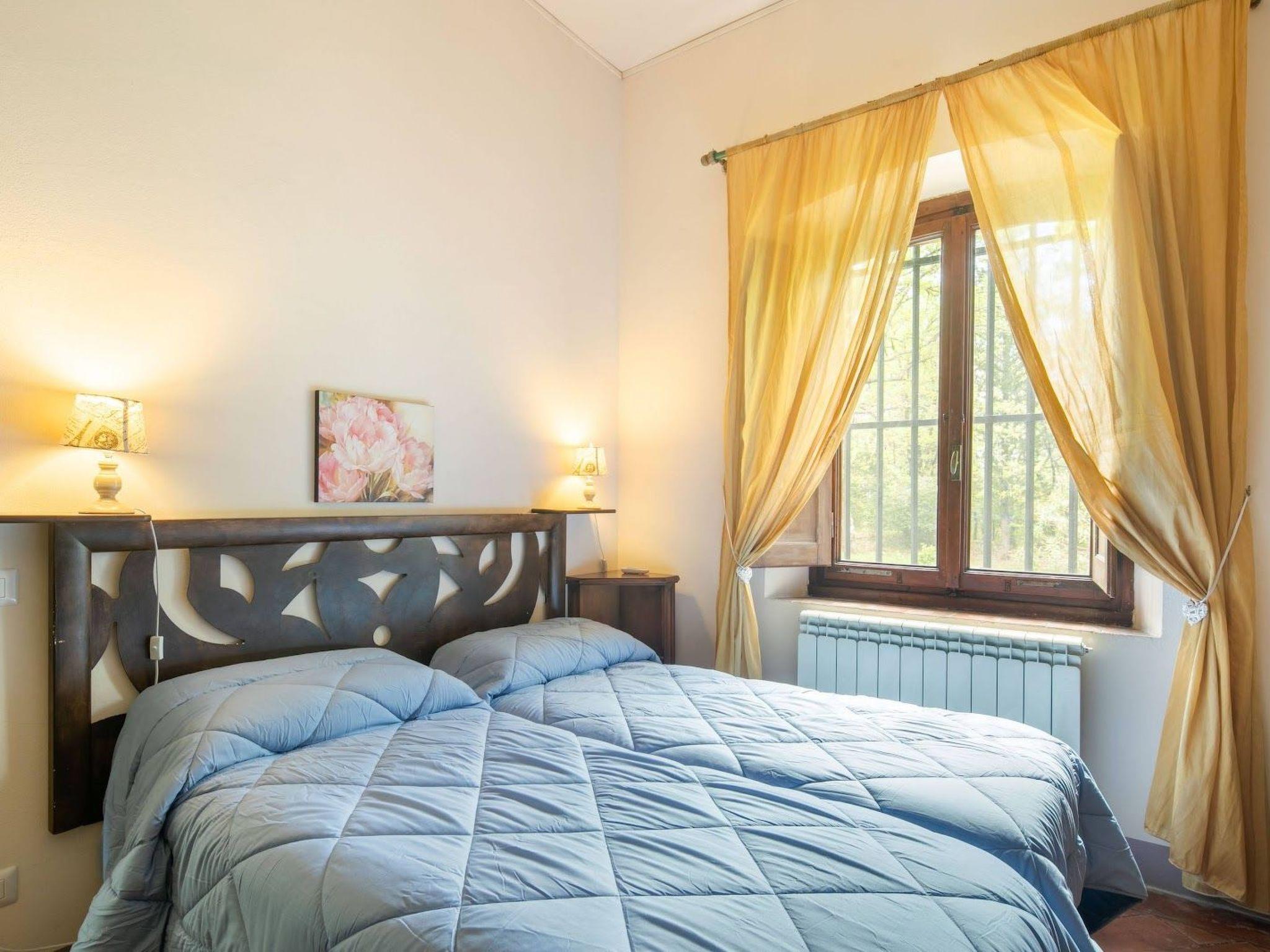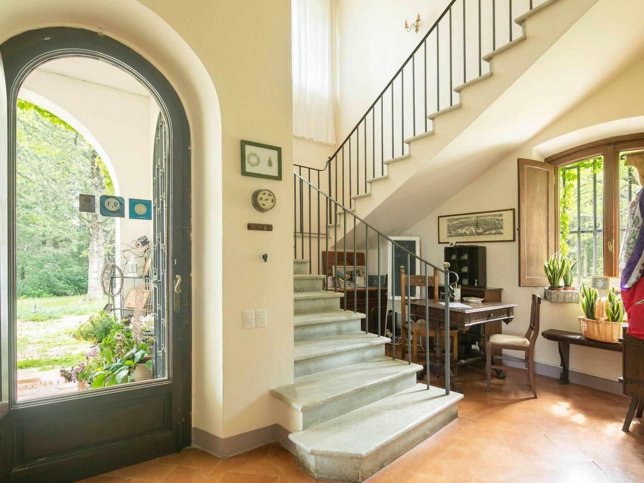 Im ersten Stock (nur über eine Treppe erreichbar) befinden sich vier geräumige Schlafzimmer (ein Doppelzimmer, zwei Dreibettzimmer mit Einzelbetten und ein großes Zimmer mit einem Doppelbett und zwei Einzelbetten). Alle Zimmer sind klimatisiert und verfügen über einen privaten Balkon mit Blick auf den großen Garten der Villa, der mit Zypressen, dem Symbol der Toskana, geschmückt ist.