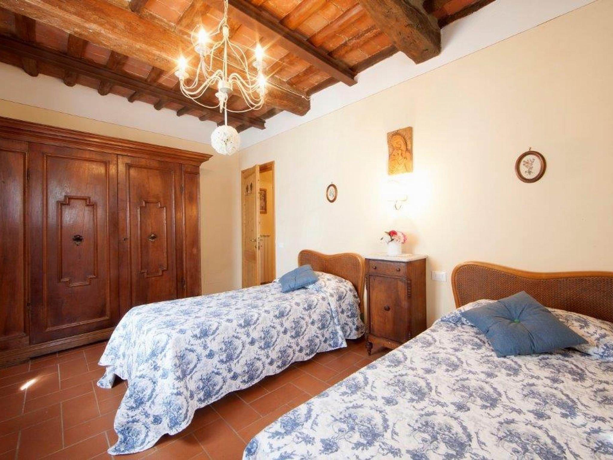 Der Bauernhof aus dem 15. Jahrhundert erstreckt sich über 500 Hektar und produziert 6 verschiedene Weinsorten und Olivenöl. Aus diesem Grund bietet dieses Anwesen alle Merkmale der toskanischen Landschaft und ist ein idealer Ort für einen völlig entspannten Urlaub.
