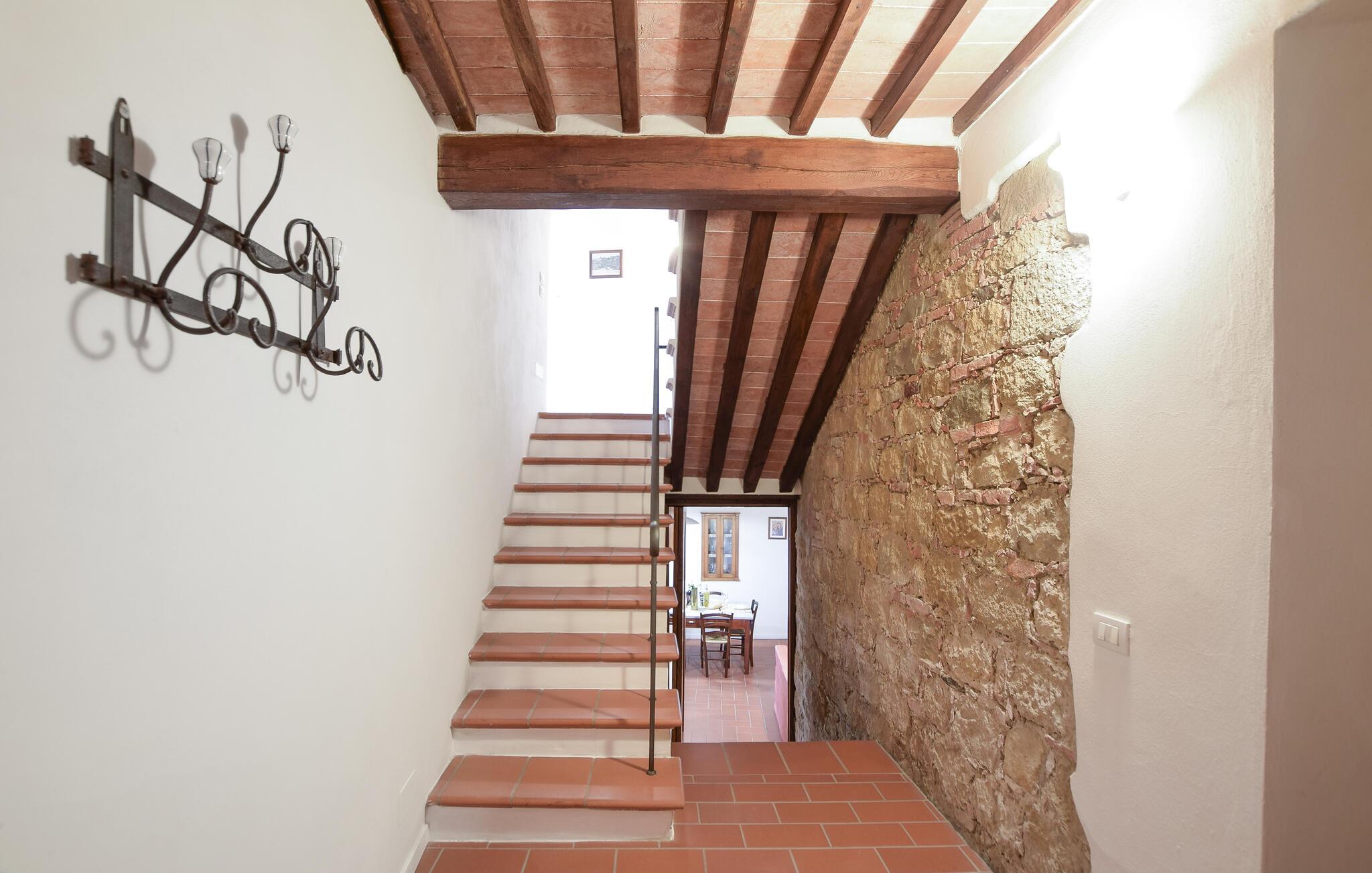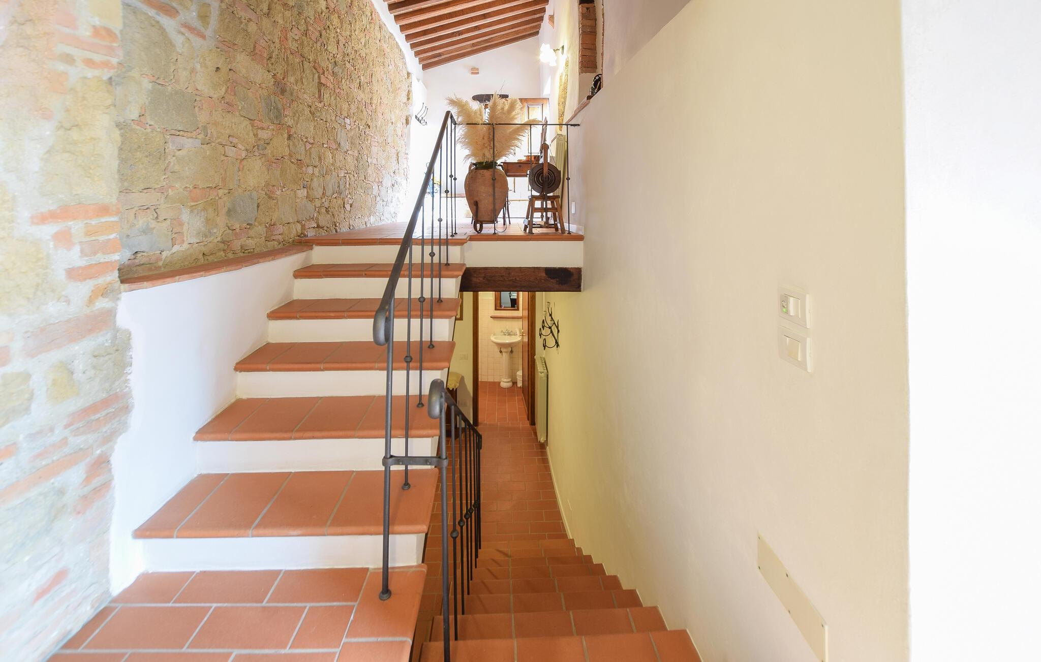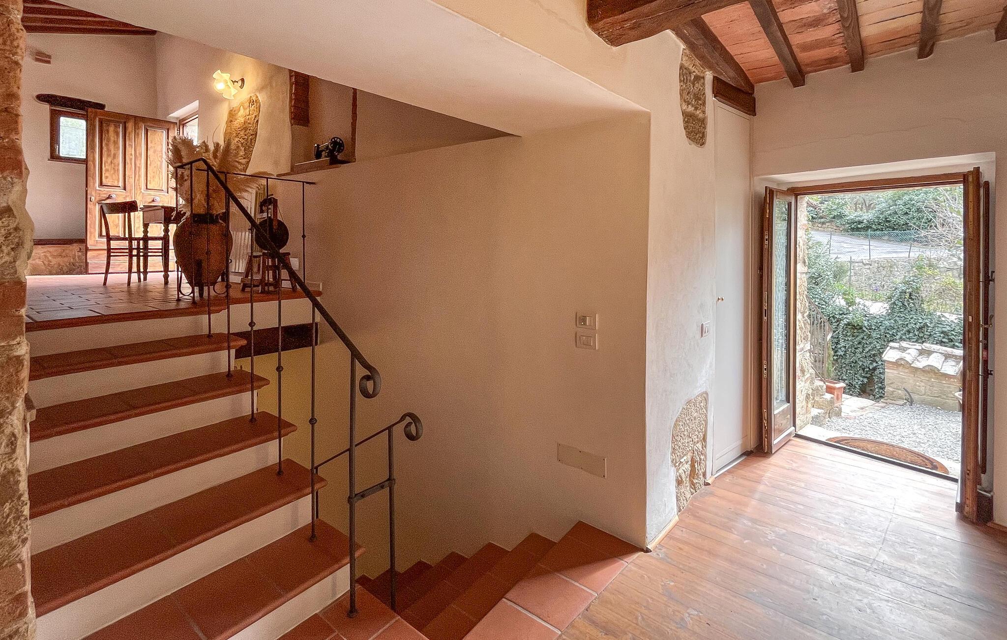 Das Steinhaus empfängt Sie mit Charakter und Charme und bildet einen Wohlfühlort, wo Sie mit Ihrer Familie eine gesellige und vielfältige Zeit verbringen. Die Unterkunft ist authentisch, rustikal und gemütlich und versprüht eine warme Atmosphäre. Machen Sie es sich an kühlen Abenden am Kamin gemütlich und genießen Sie lange, laue Sommerabende auf der Terrasse. Der Balkon ist der perfekte Ort für den ersten Kaffee des Tages.