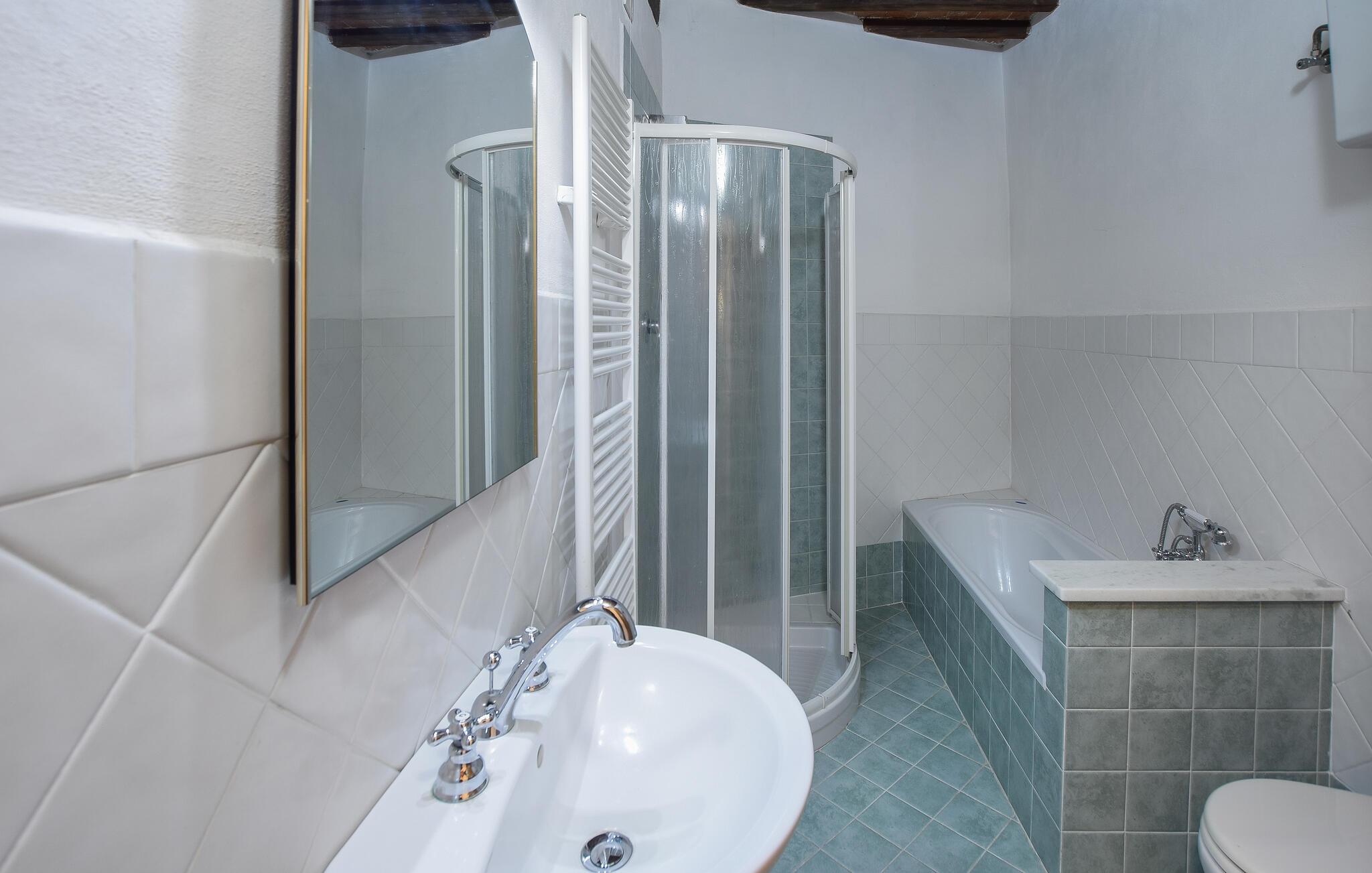 - WC mit warmem und kaltem Wasser, Dusche und Badewanne