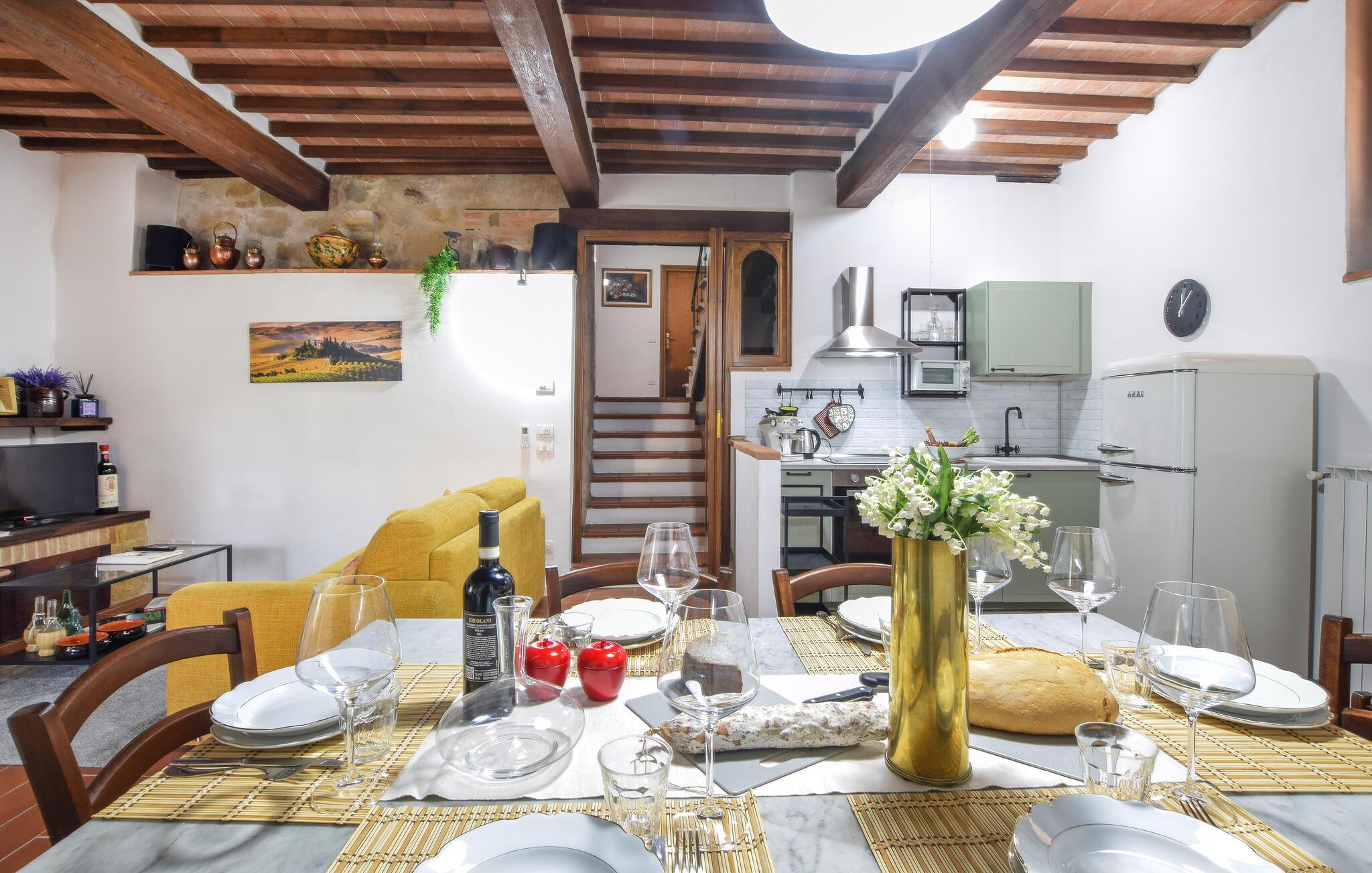 Im abgelegenen, mittelalterlichen Dorf Monticchiello im Val d'Orcia empfängt Sie diese geräumige Ferienwohnung mit Ambiente.